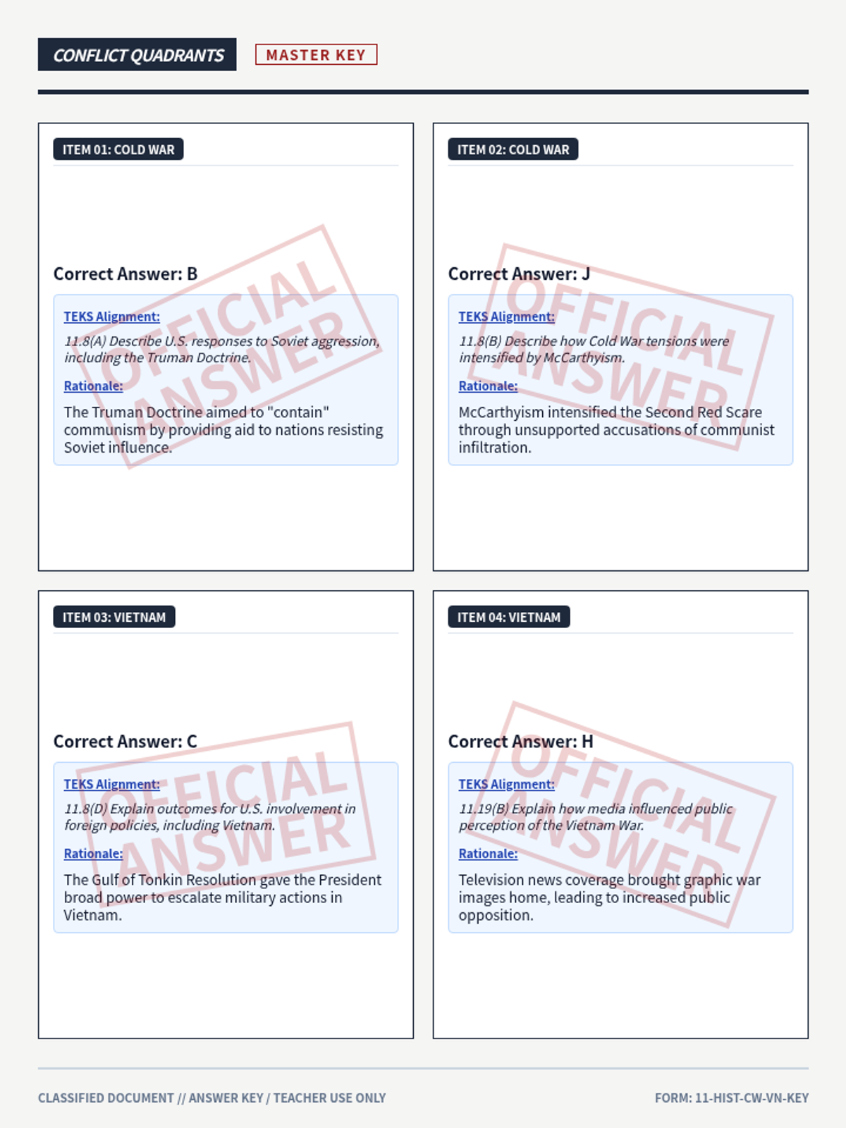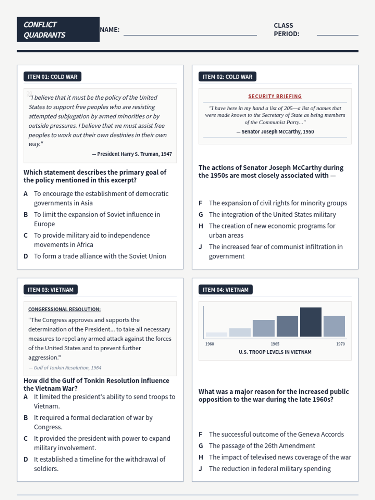 A focused warm-up session covering pivotal moments of the Cold War and the Vietnam War through STAAR-aligned stimulus-based questions.
