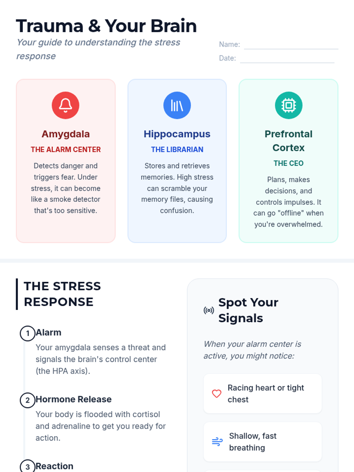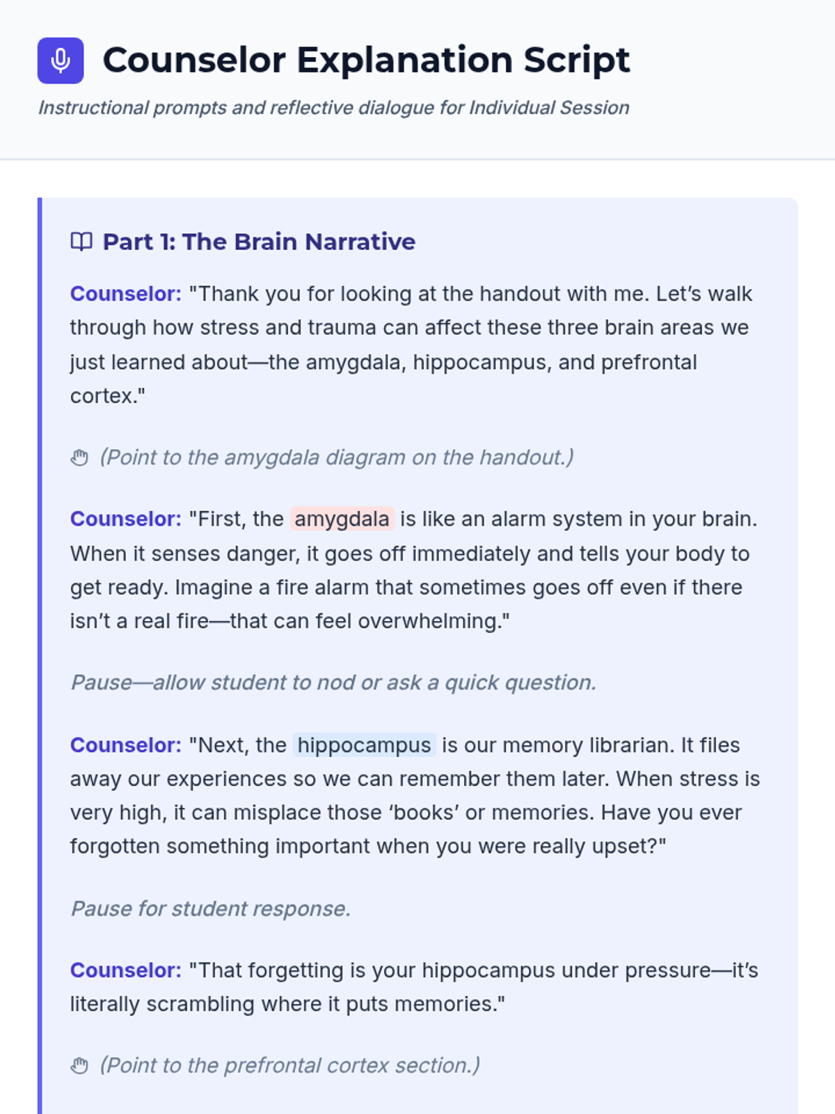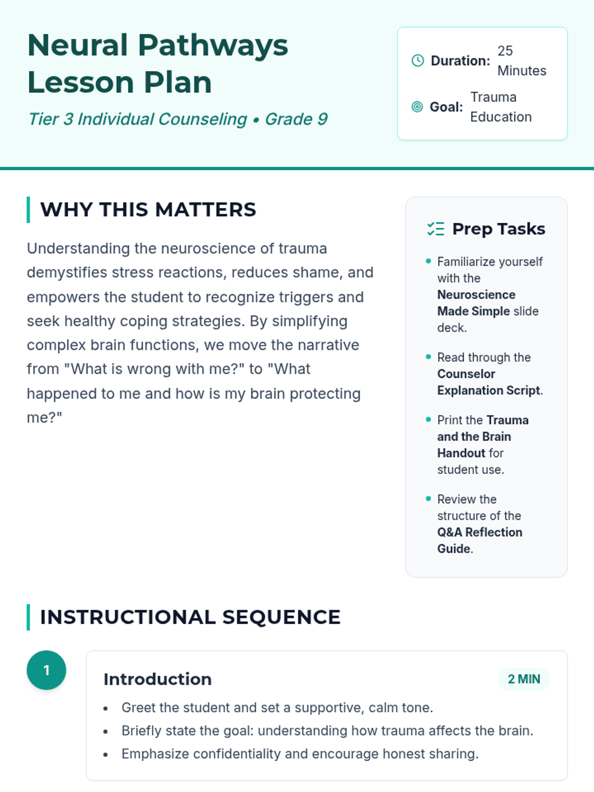 A single-session Tier 3 counseling lesson for 9th graders exploring the neuroscience of trauma, brain structure, and stress responses to build self-awareness and coping skills.