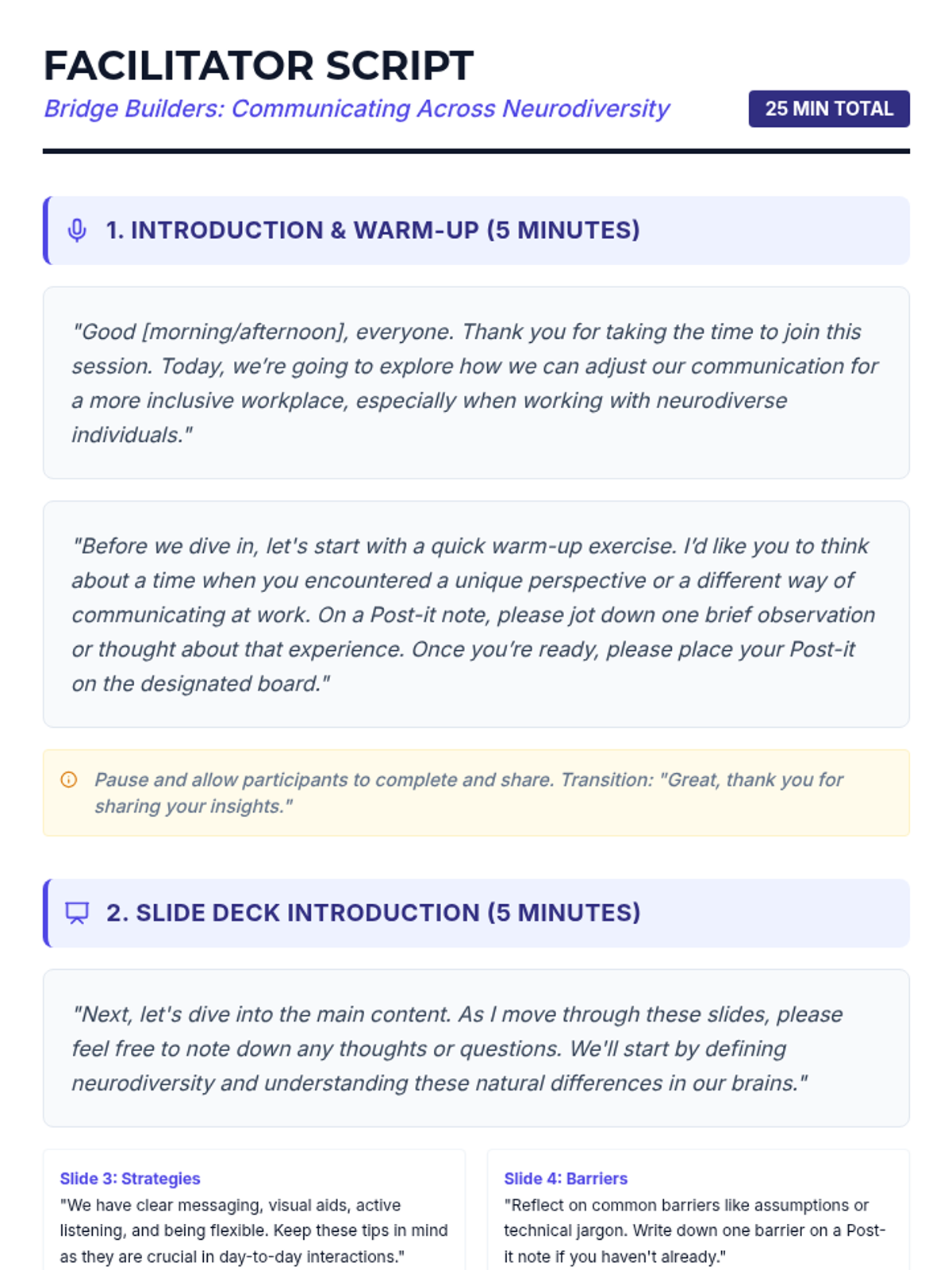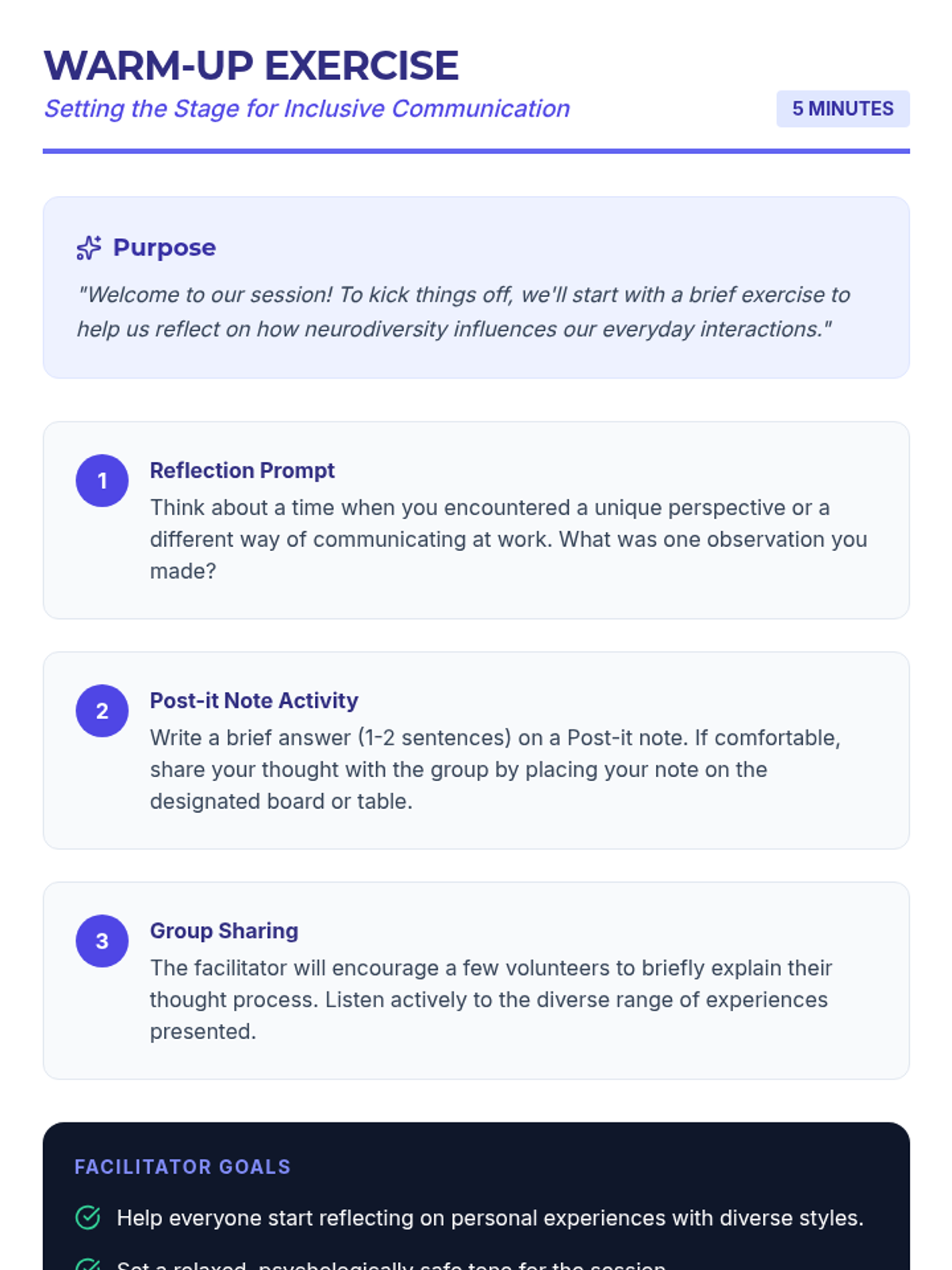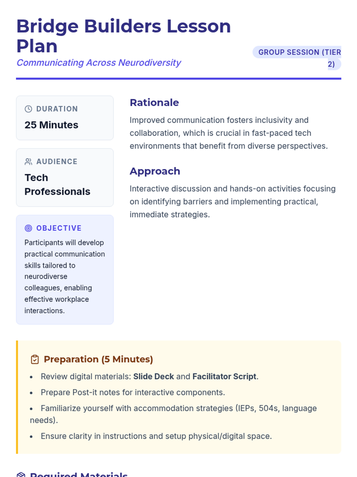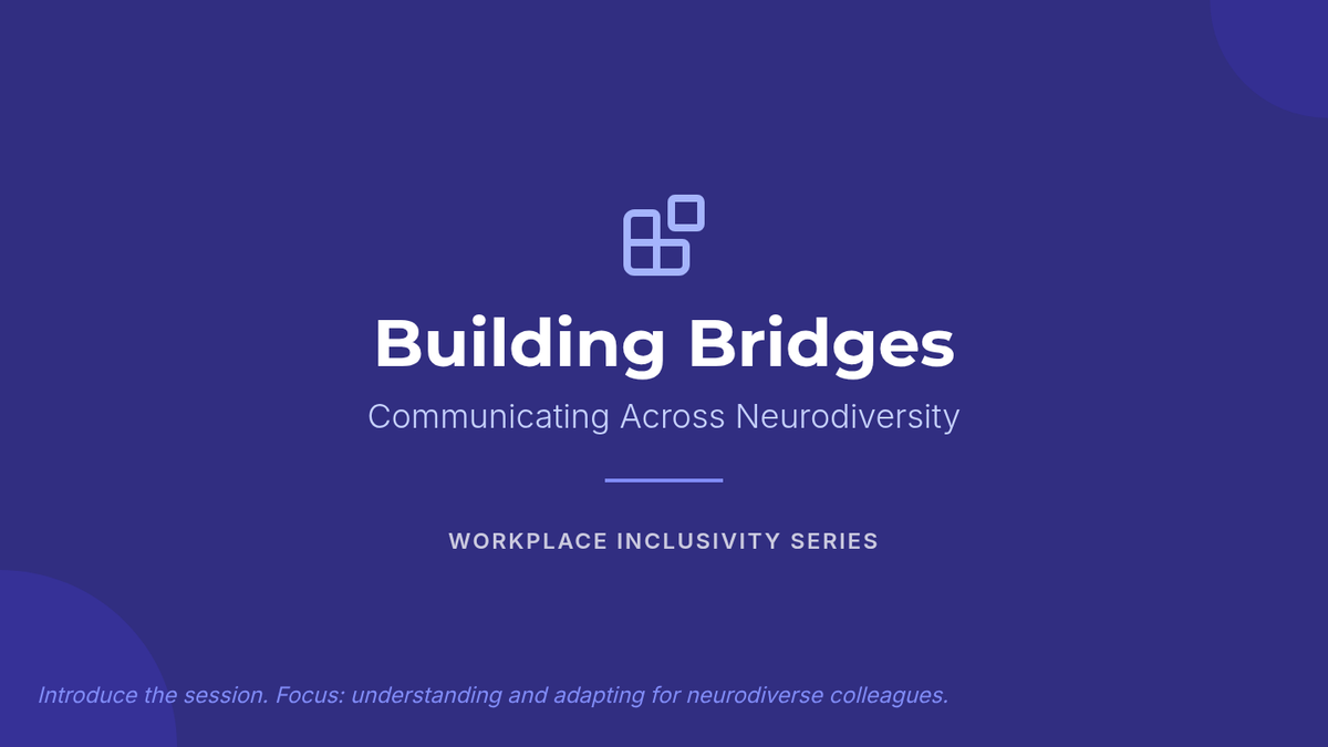 This lesson is designed for tech professionals to enhance their communication skills with neurodiverse colleagues. In a 25-minute session, participants will gain insights into effective communication strategies that foster inclusivity and understanding in the workplace.