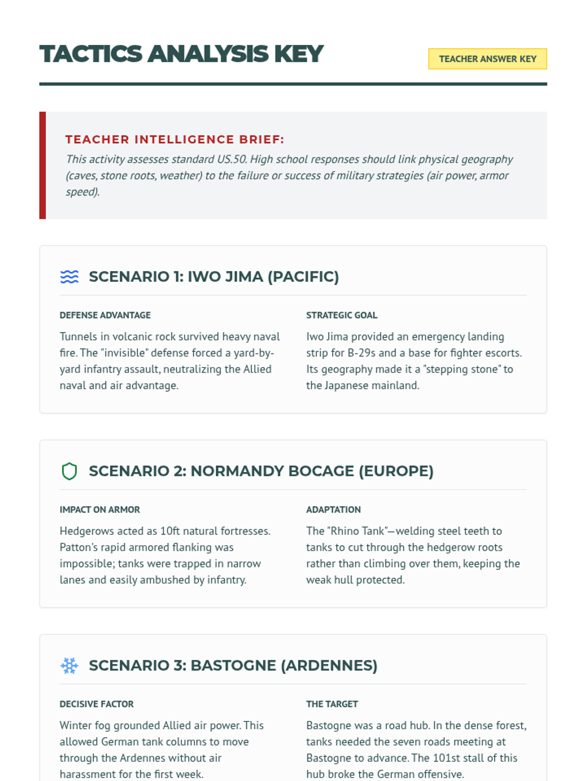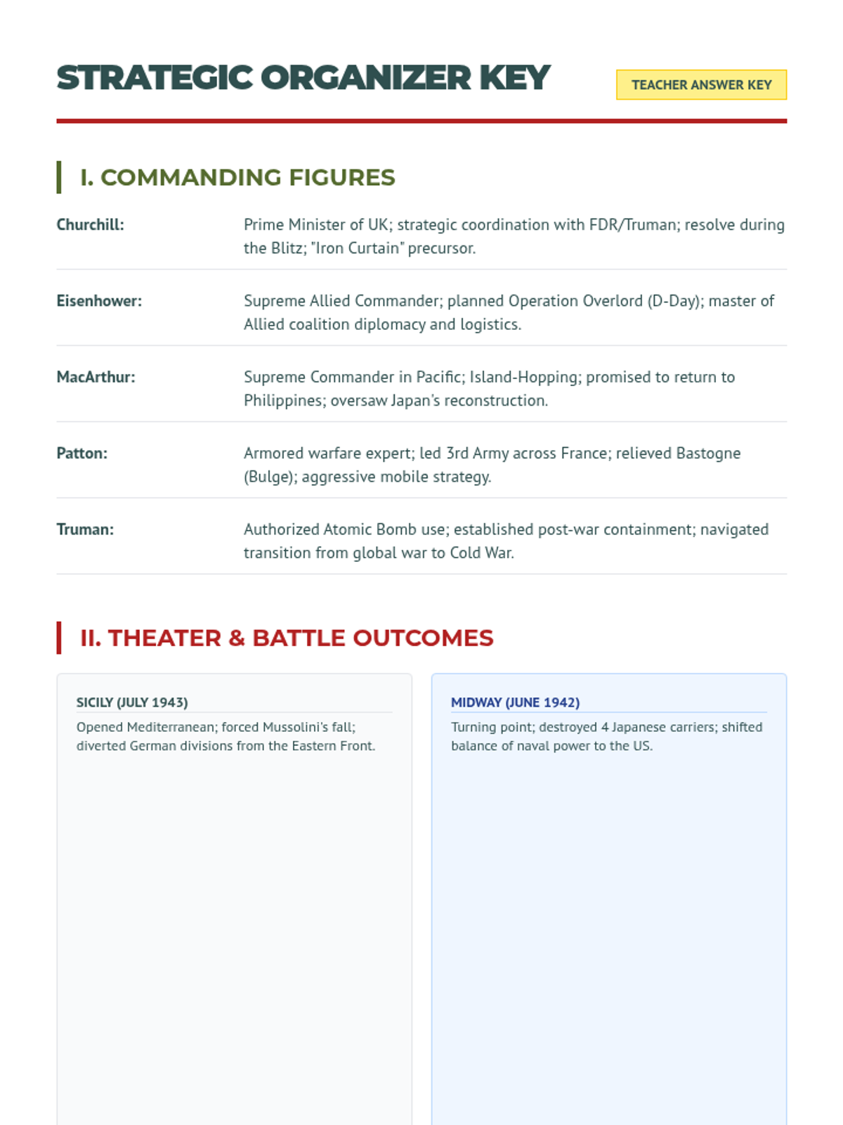 A comprehensive 60-minute lesson on the key figures, geography, and military factors of World War II's global theaters, aligned with TN standard US.50.