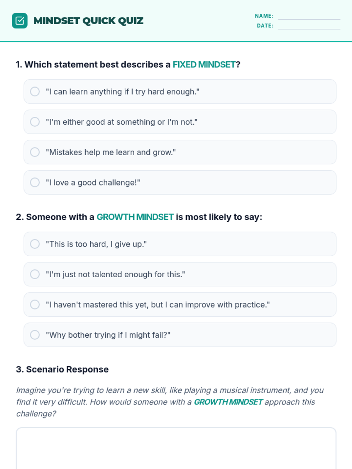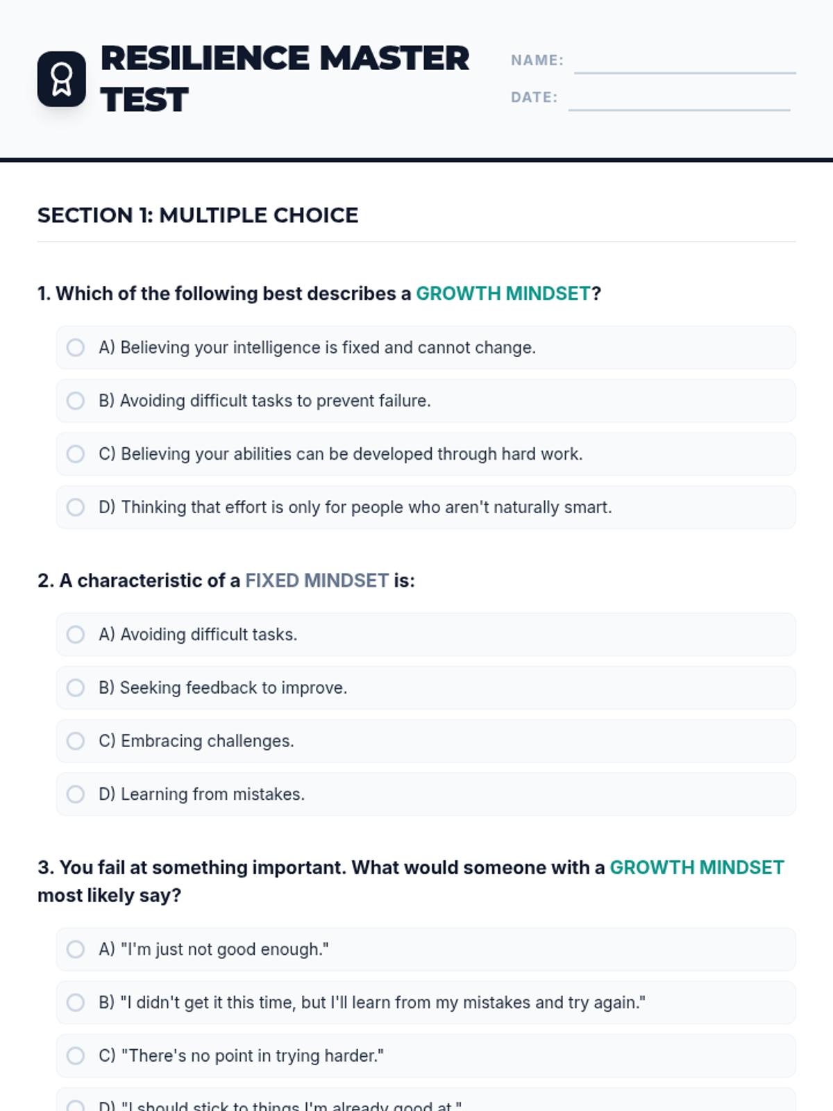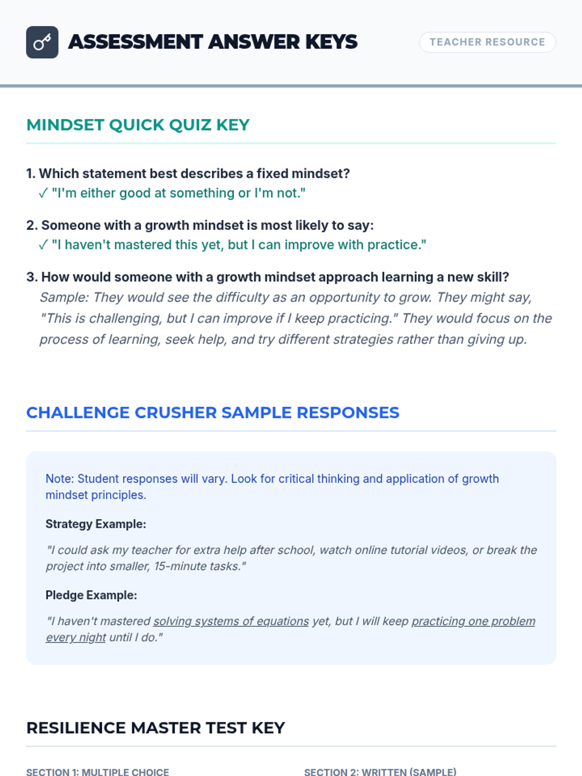 A middle school intervention lesson focused on developing resilience and a growth mindset. Students will explore the difference between fixed and growth mindsets through interactive slides, reading, and personal reflection.