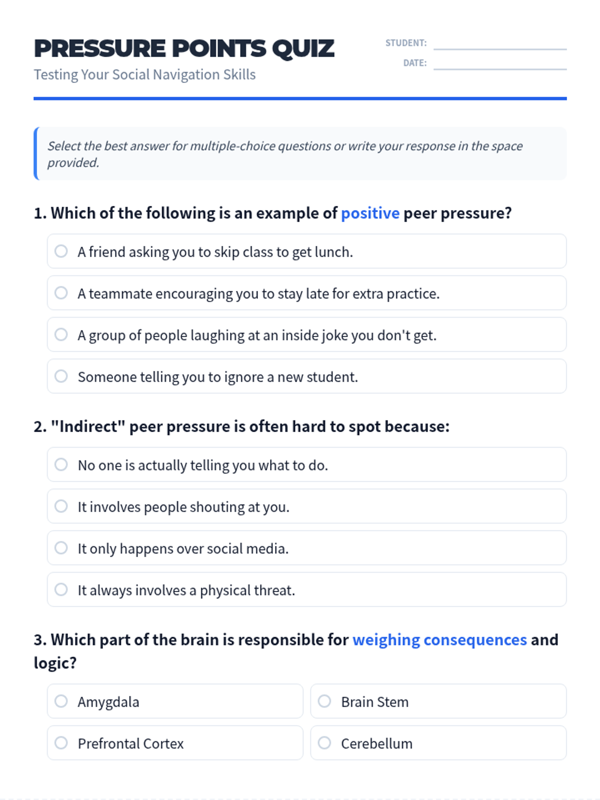 A comprehensive lesson on identifying and managing peer pressure, focusing on direct vs. indirect influence and developing effective refusal strategies.