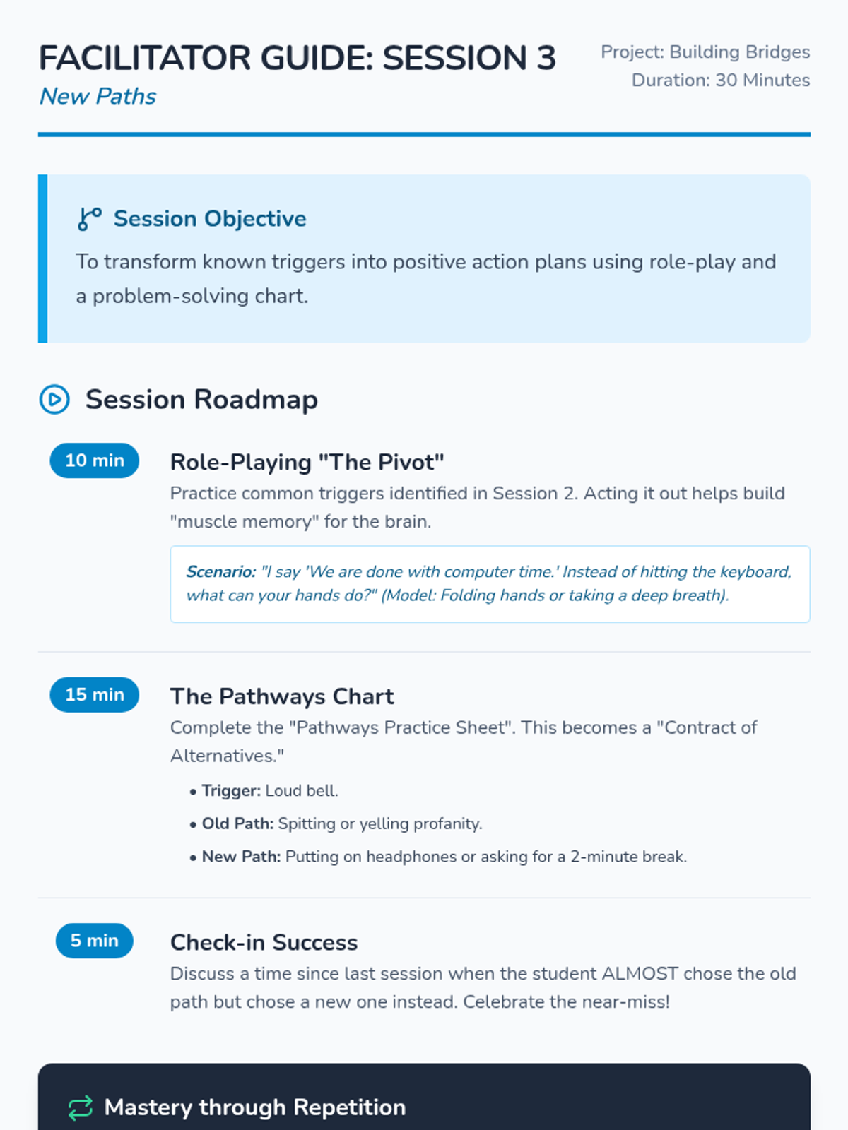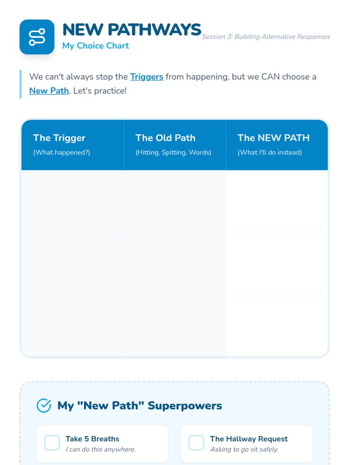 Developing and practicing alternative responses to triggers using role-playing and problem-solving tools.