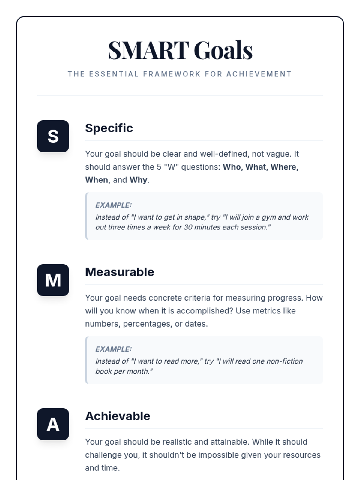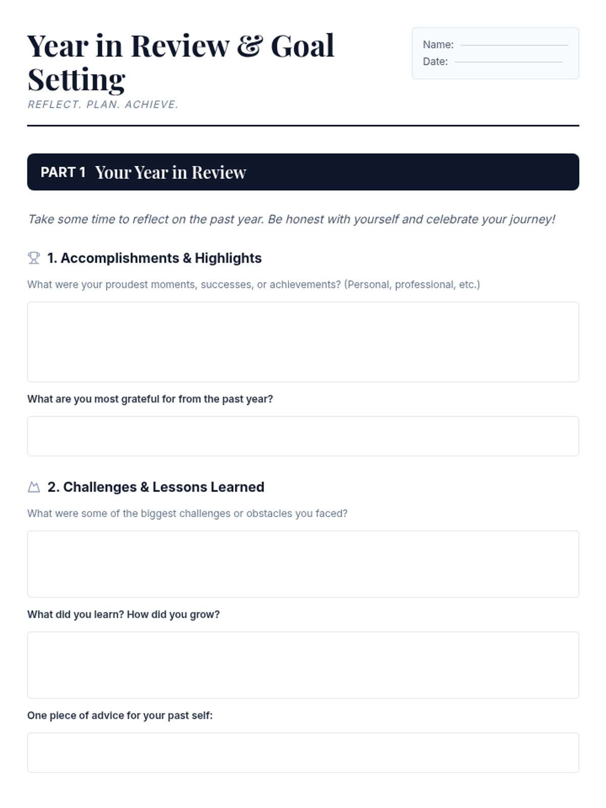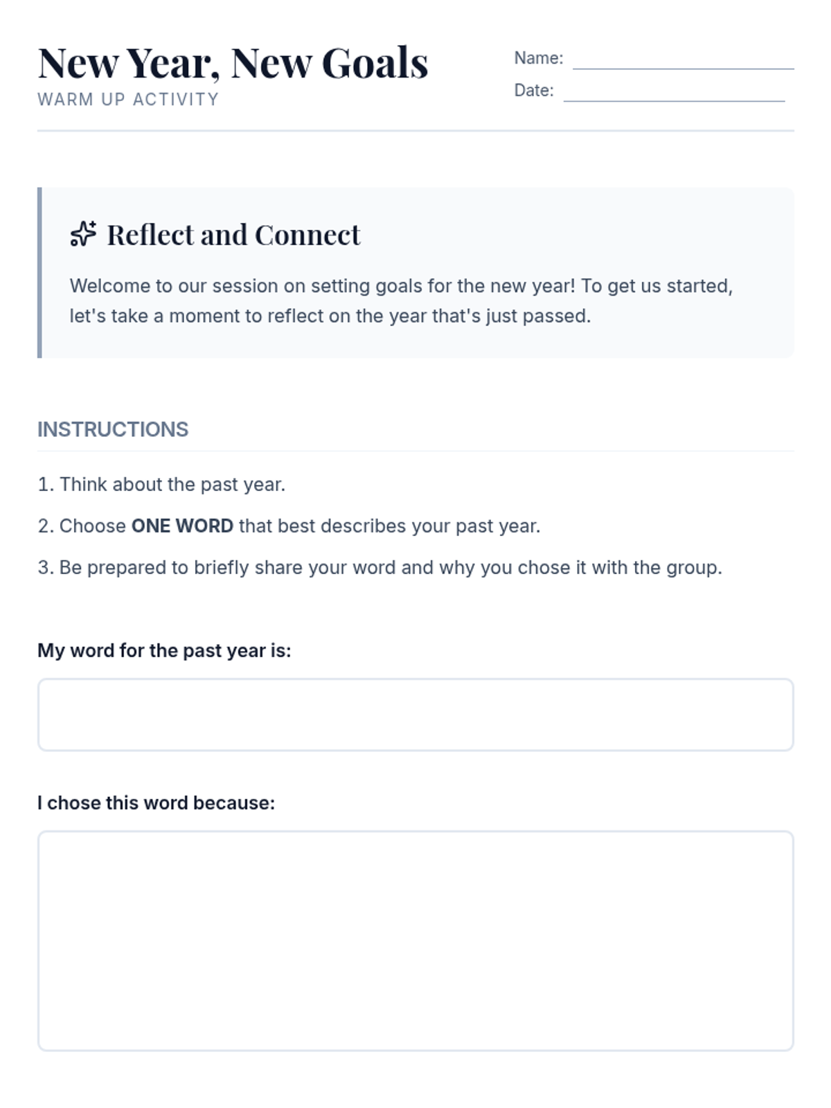 A 90-minute workshop for adult learners focused on reflecting on the past year and setting actionable SMART goals for the new year.