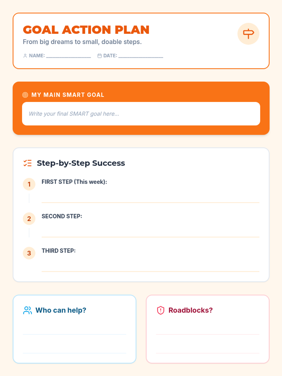 Finalizes skills with conflict resolution strategies (Stop-Drop-Solve) and long-term goal planning.
