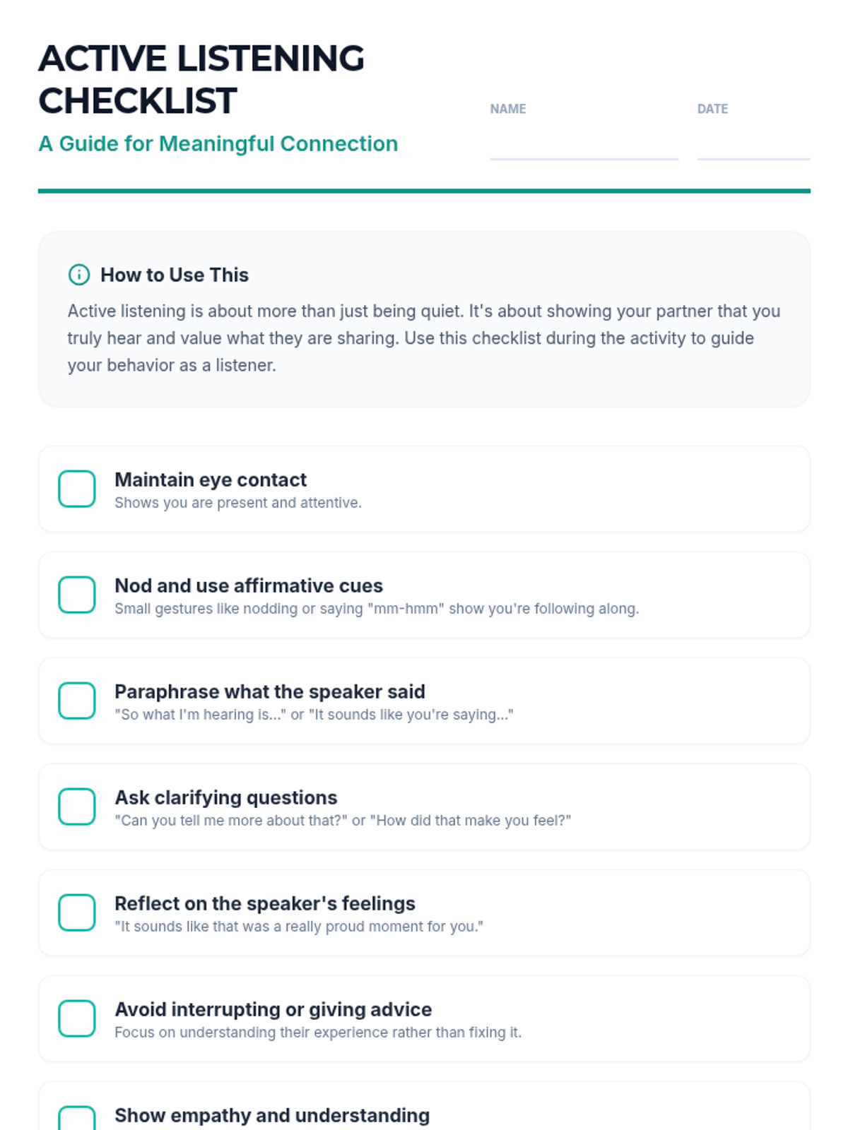 Developing advanced listening skills, including paraphrasing and validating others' perspectives in English.