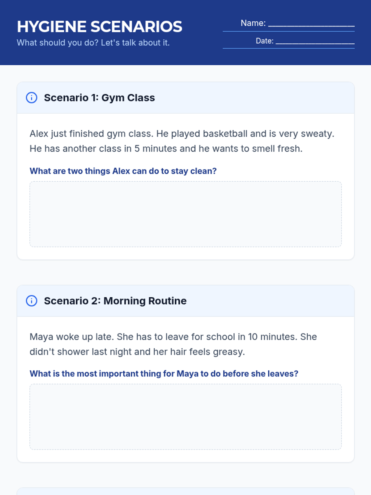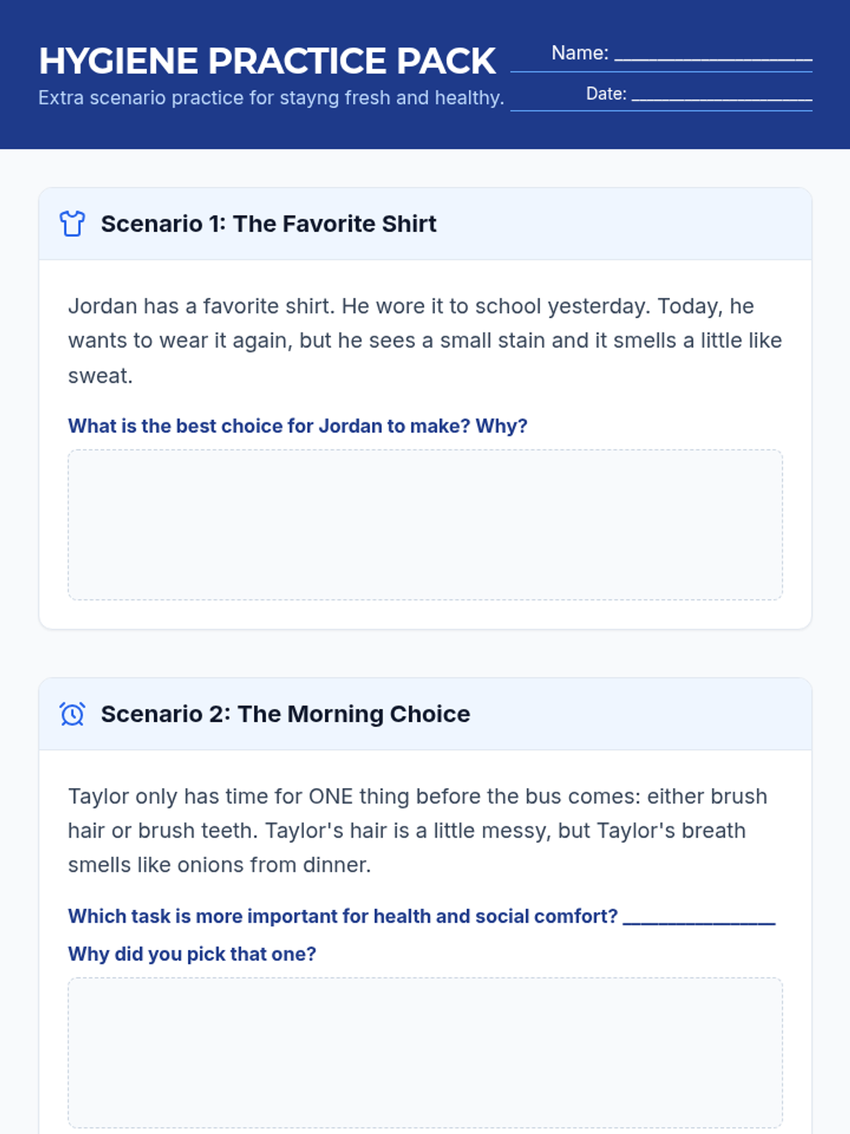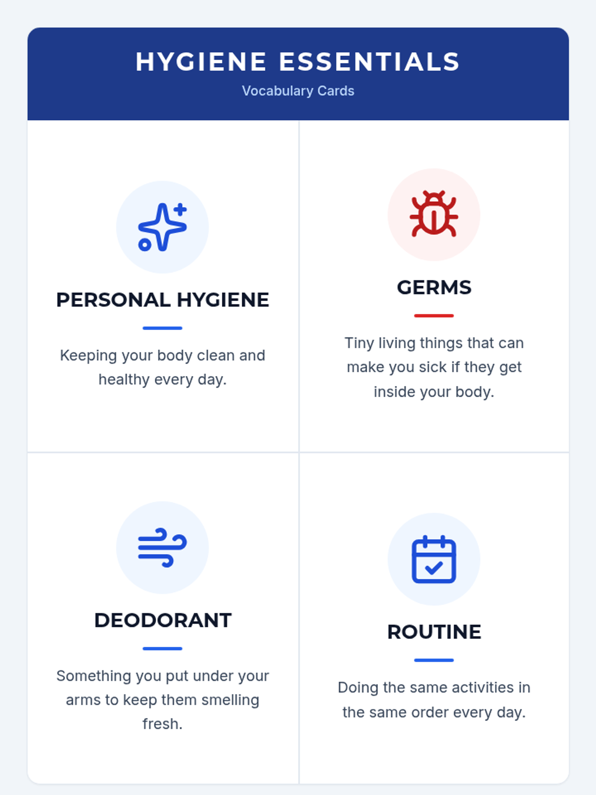 Focuses on the importance of personal hygiene and daily self-care routines for health and social confidence.