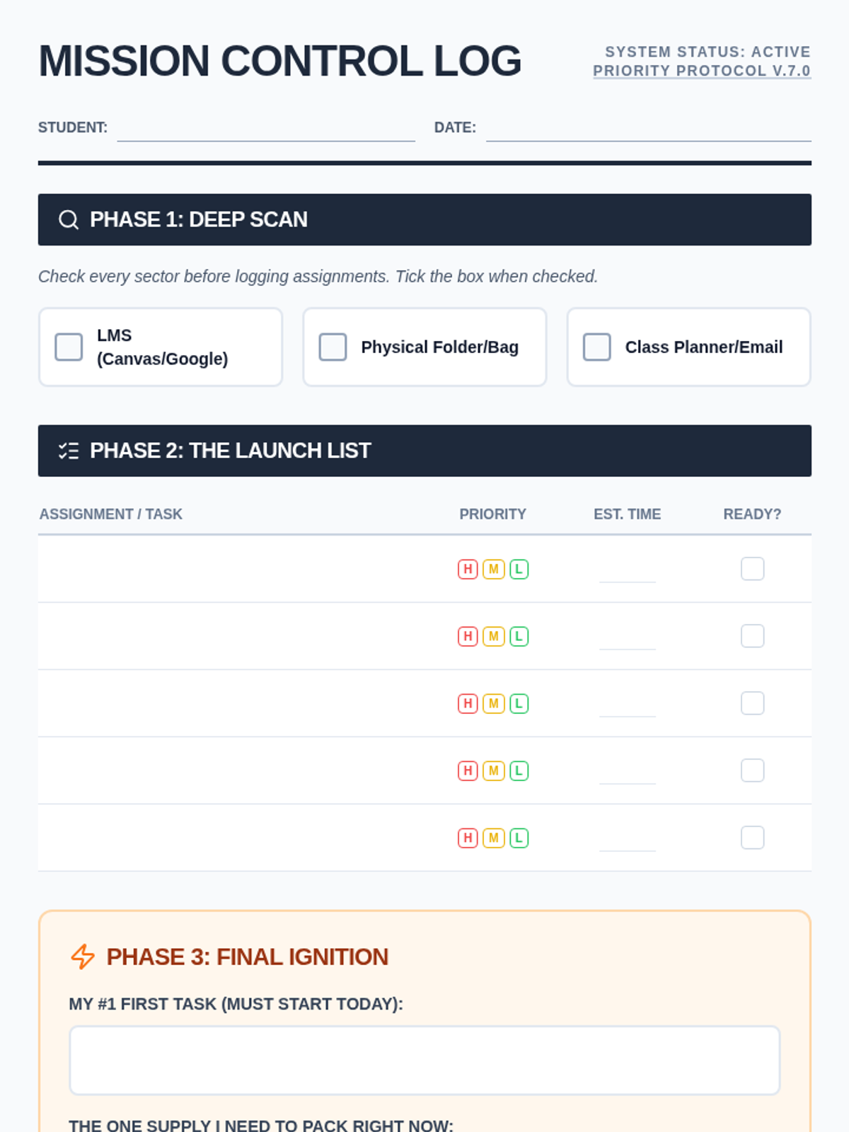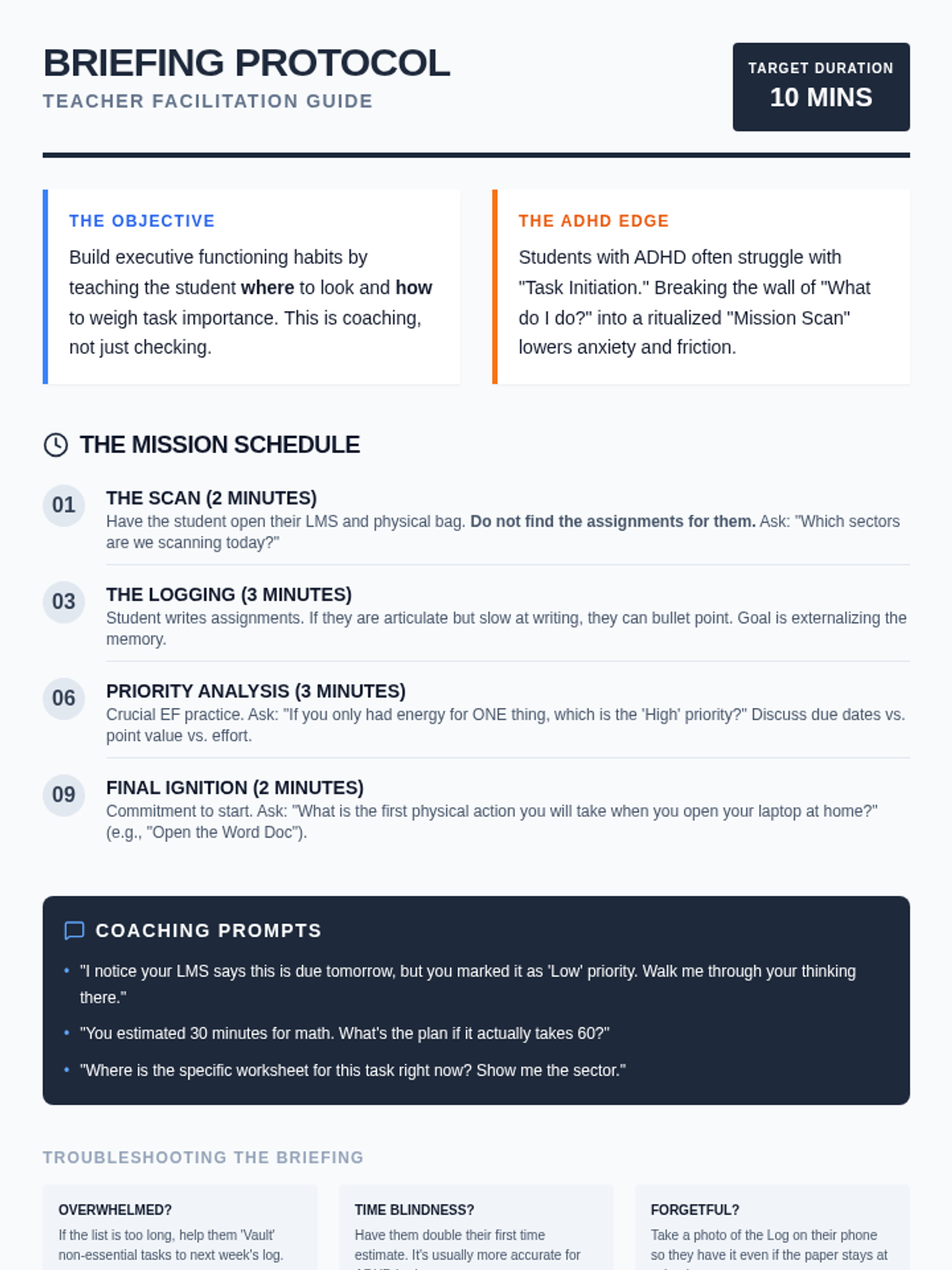 A high-impact, 10-minute organizational routine designed for 1-on-1 sessions with students who need executive functioning support to prioritize and track homework assignments.