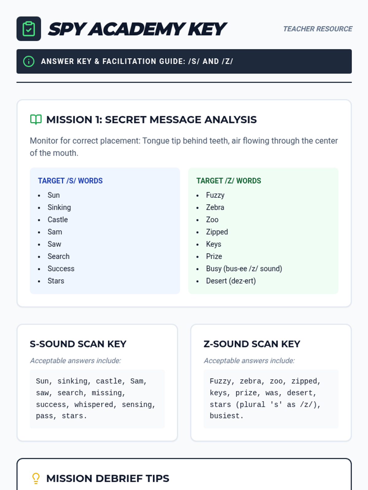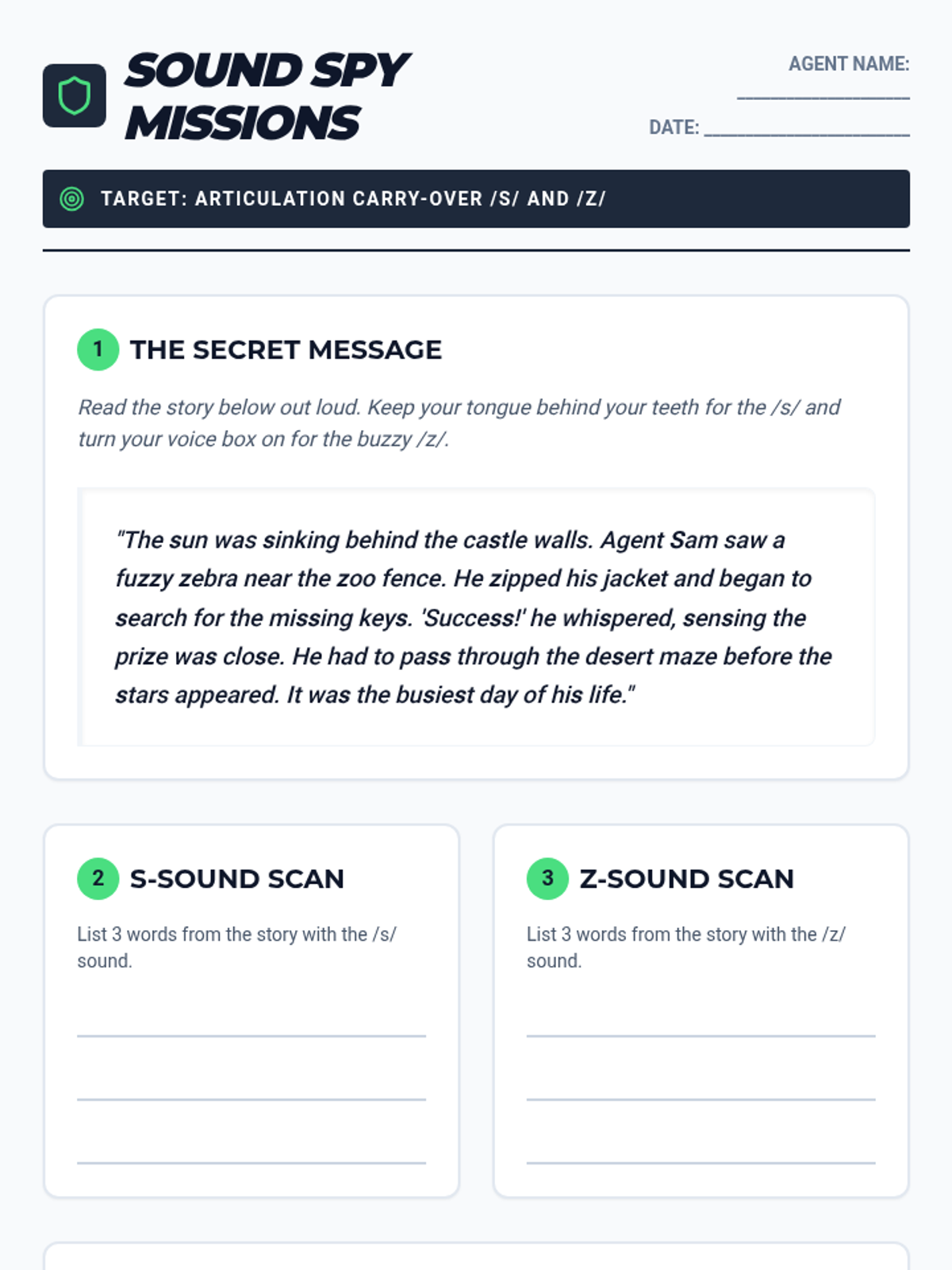 A collection of secret agent themed activities designed to help students master the /s/ and /z/ sounds in connected speech and conversation.