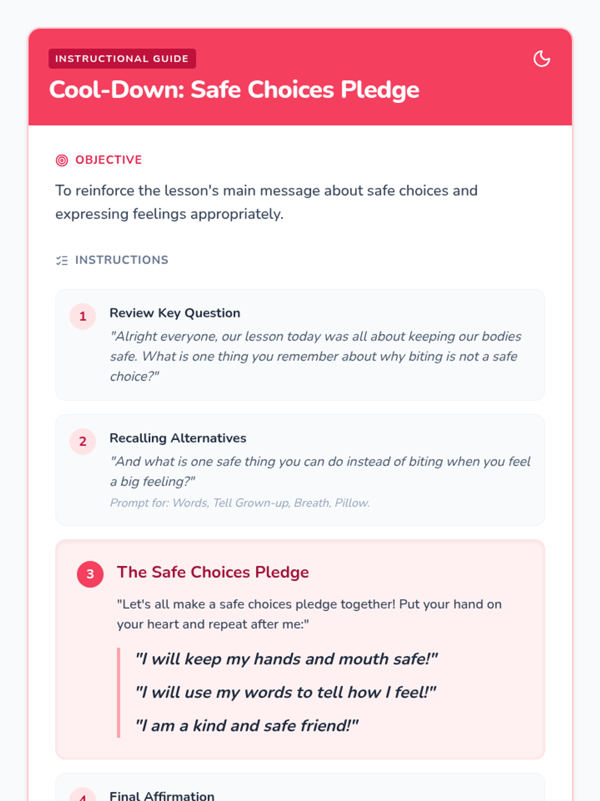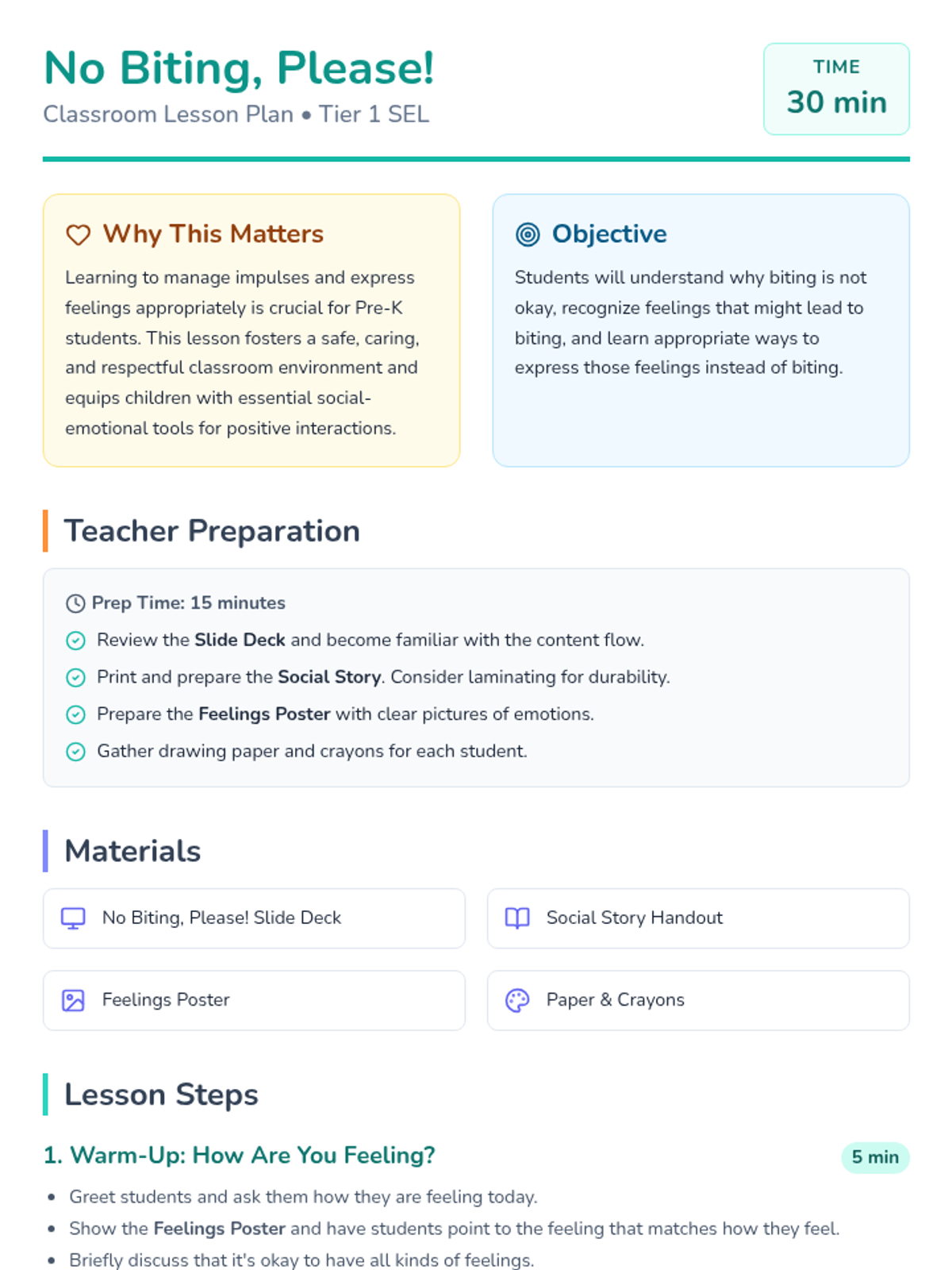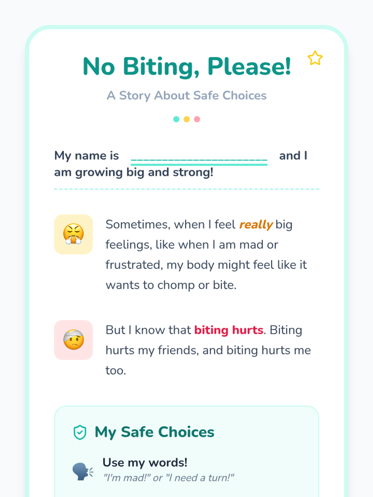 A social-emotional learning lesson for Pre-K students to understand why biting is not okay and learn safe ways to express big feelings.