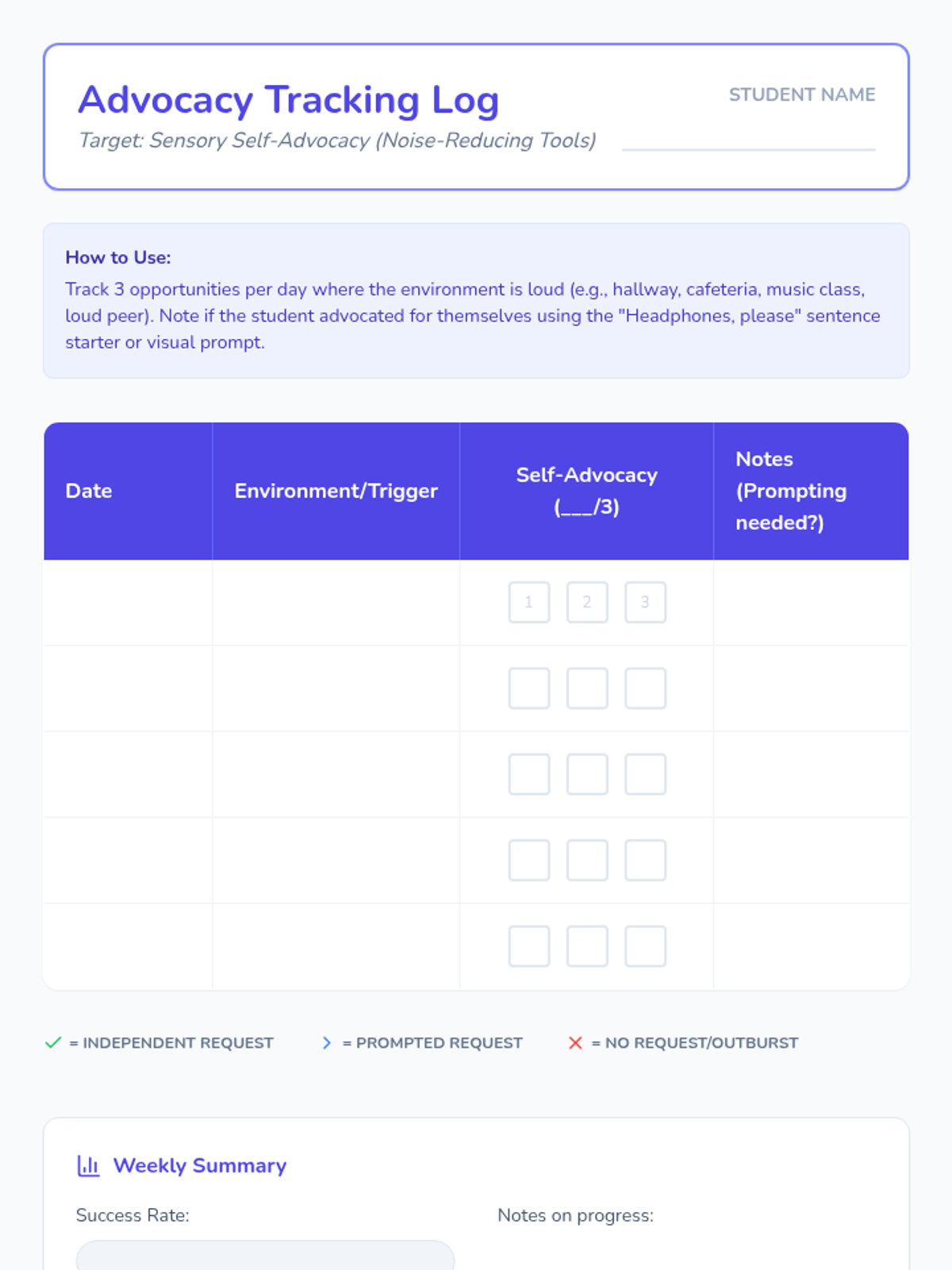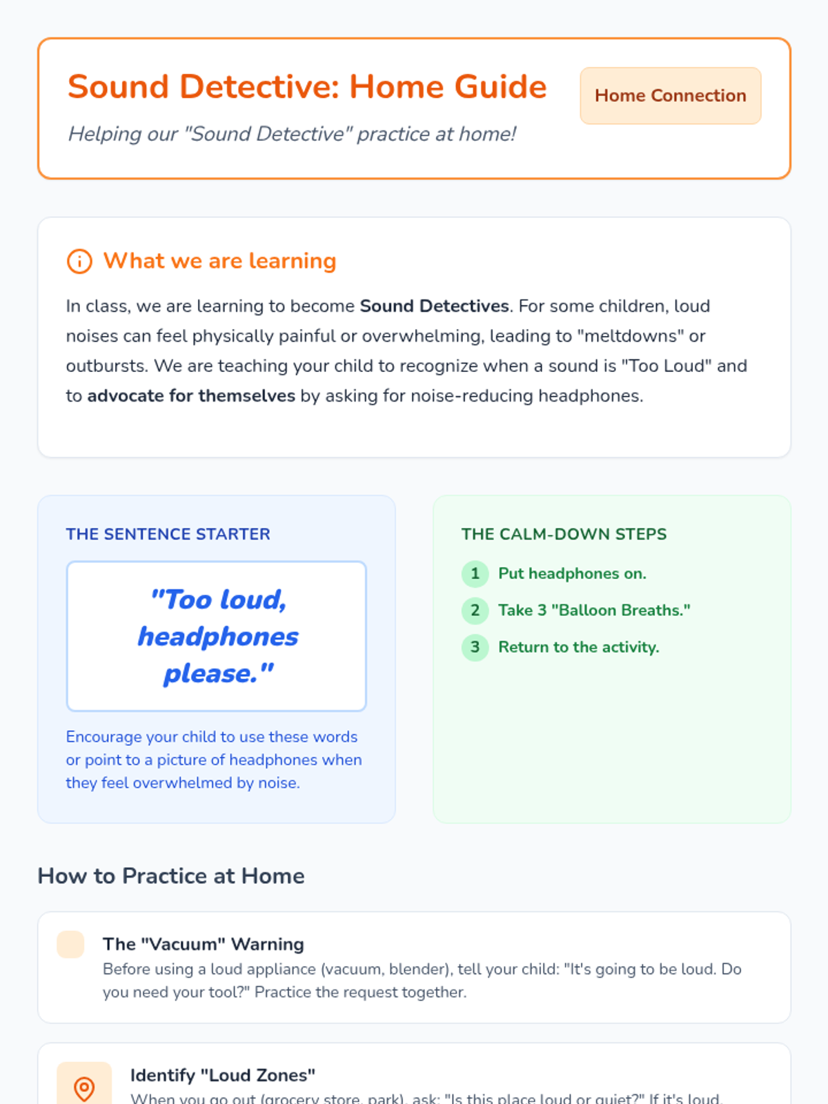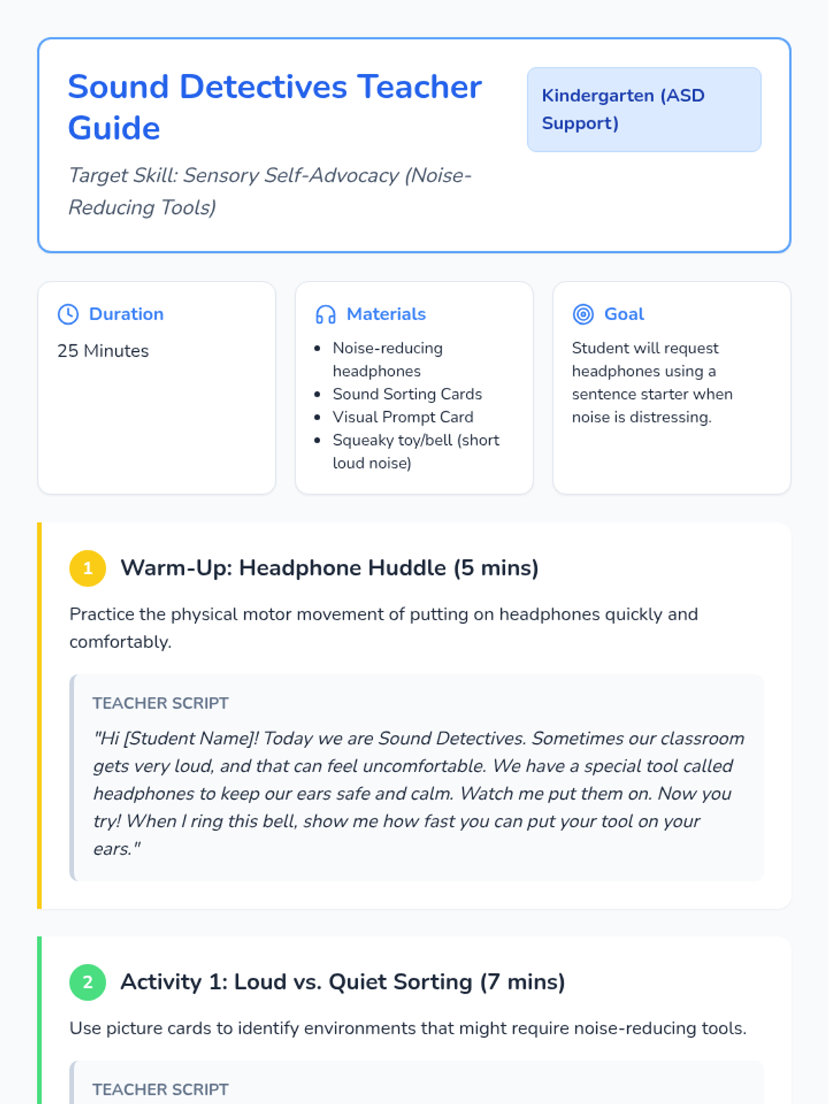 A specialized lesson for kindergarten students with ASD to learn sensory self-advocacy skills, focusing on using noise-reducing headphones and requesting them appropriately in loud environments.