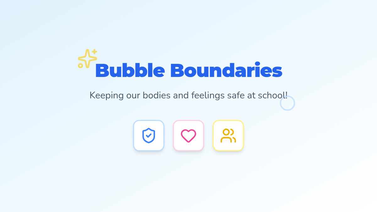 An interactive lesson teaching 1st-3rd graders about personal space using the 'Invisible Bubble' analogy. Students learn to recognize their own boundaries and respect others' space through visual slides, hands-on activities, and scenario-based practice.