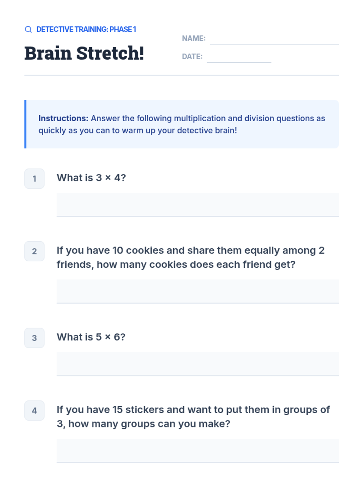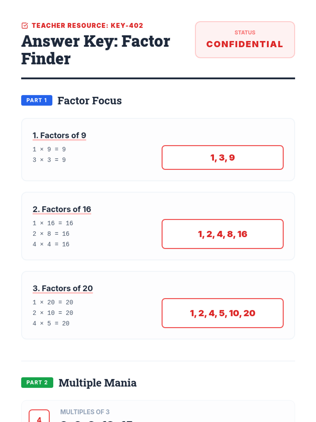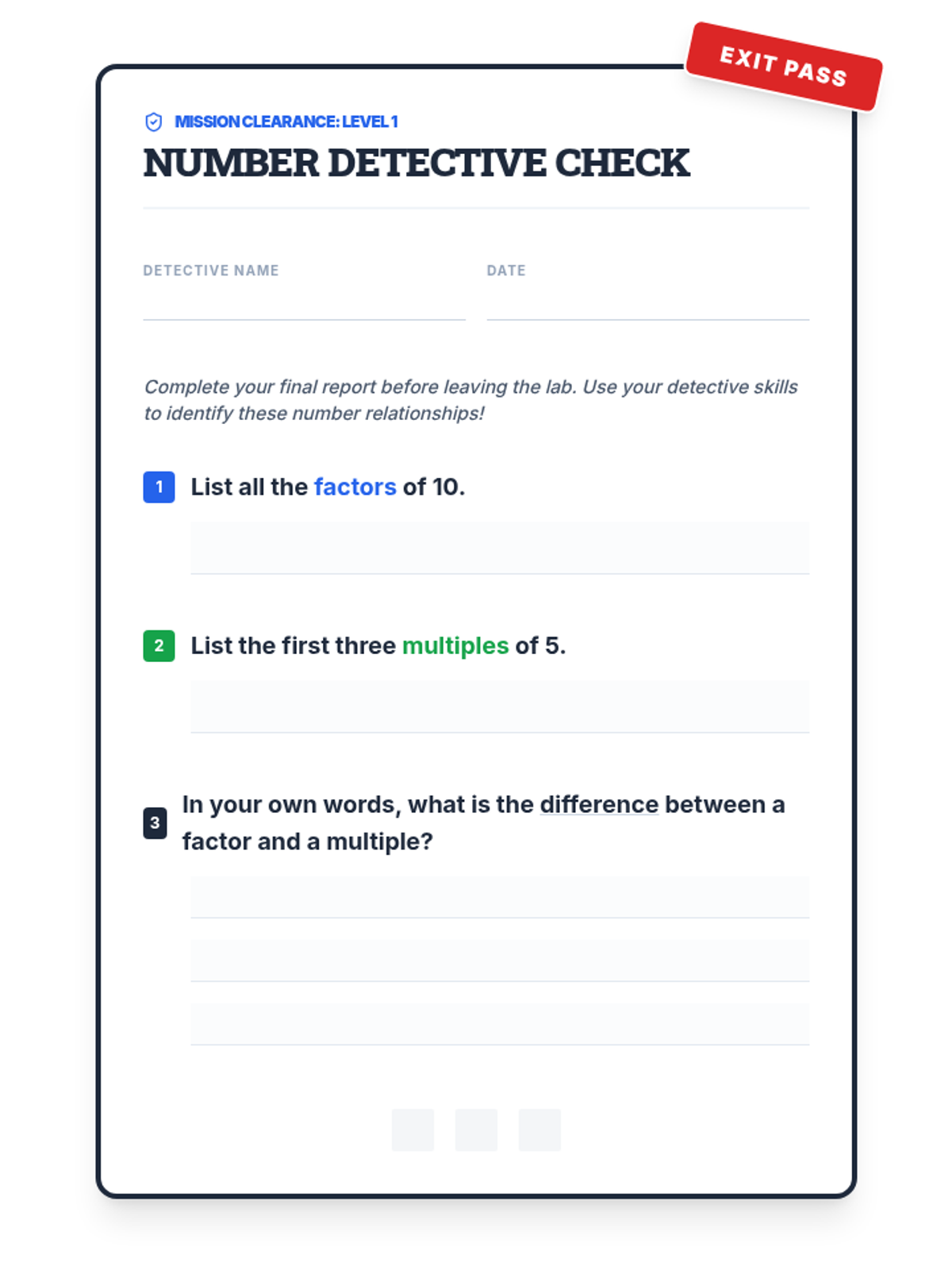 A foundational 4th-grade math lesson that introduces factors and multiples using a 'Building Blocks' and 'Number Detective' theme. Students will learn to identify factor pairs and generate skip-counting multiples through interactive slides and hands-on practice.