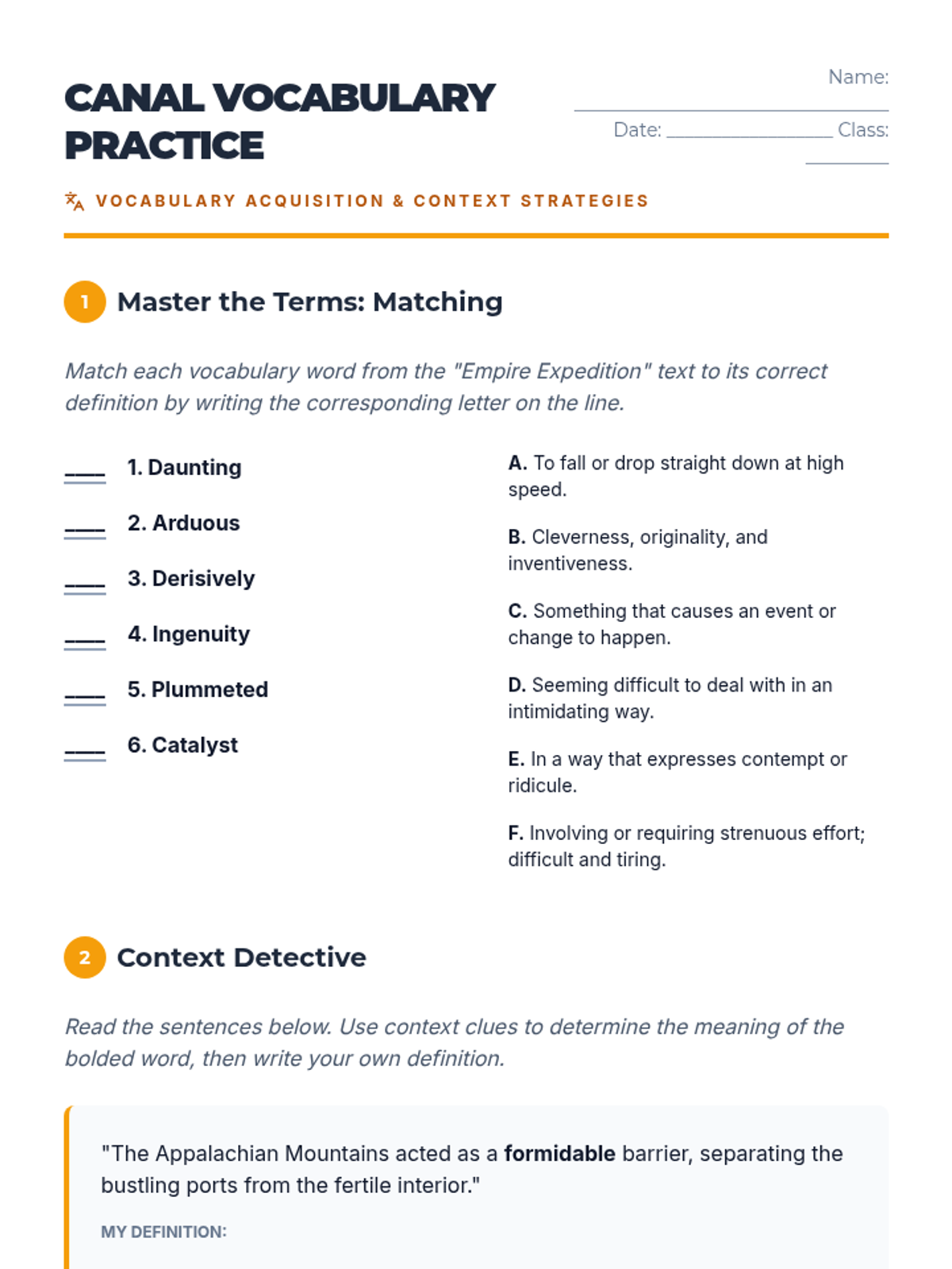 A lesson focused on mastering academic vocabulary used in reading comprehension questions. Students will learn to distinguish between common analytical verbs and concepts through a hands-on matching game and reference guides.