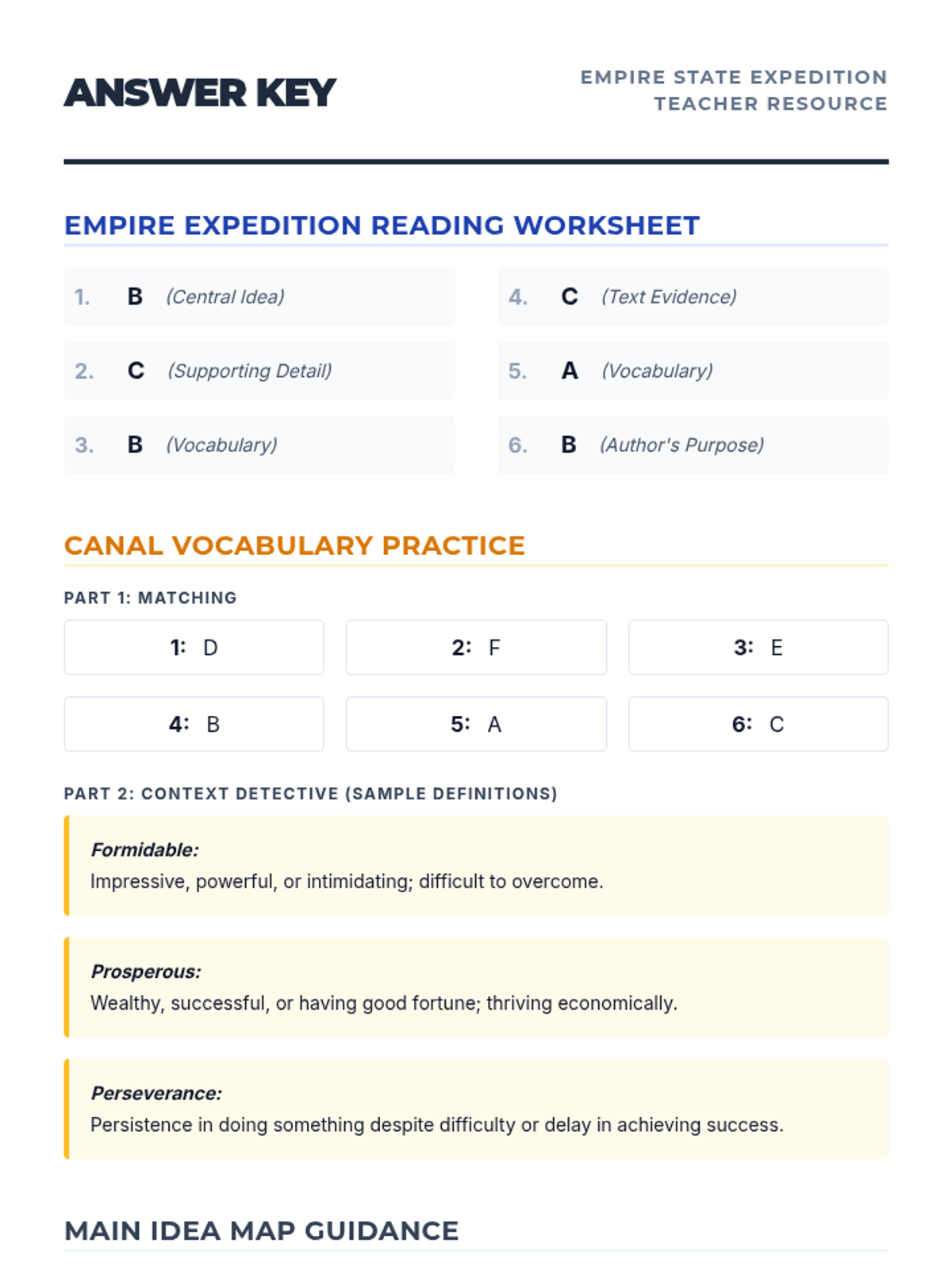 A comprehensive 7th-grade NYS ELA test prep kit focusing on informational text analysis, identifying main ideas, and vocabulary strategies through authentic practice and structured organizers.