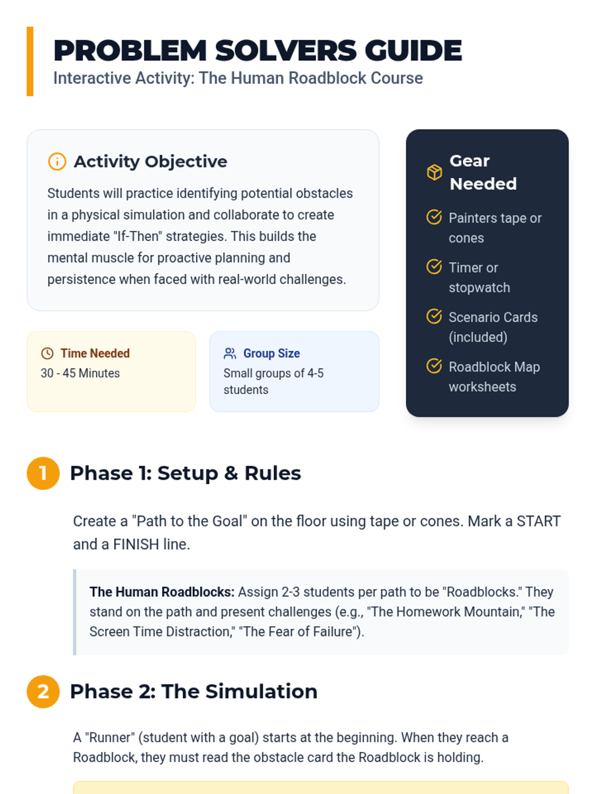 A lesson focused on identifying potential challenges and developing proactive 'If-Then' strategies to overcome obstacles in pursuit of personal goals.