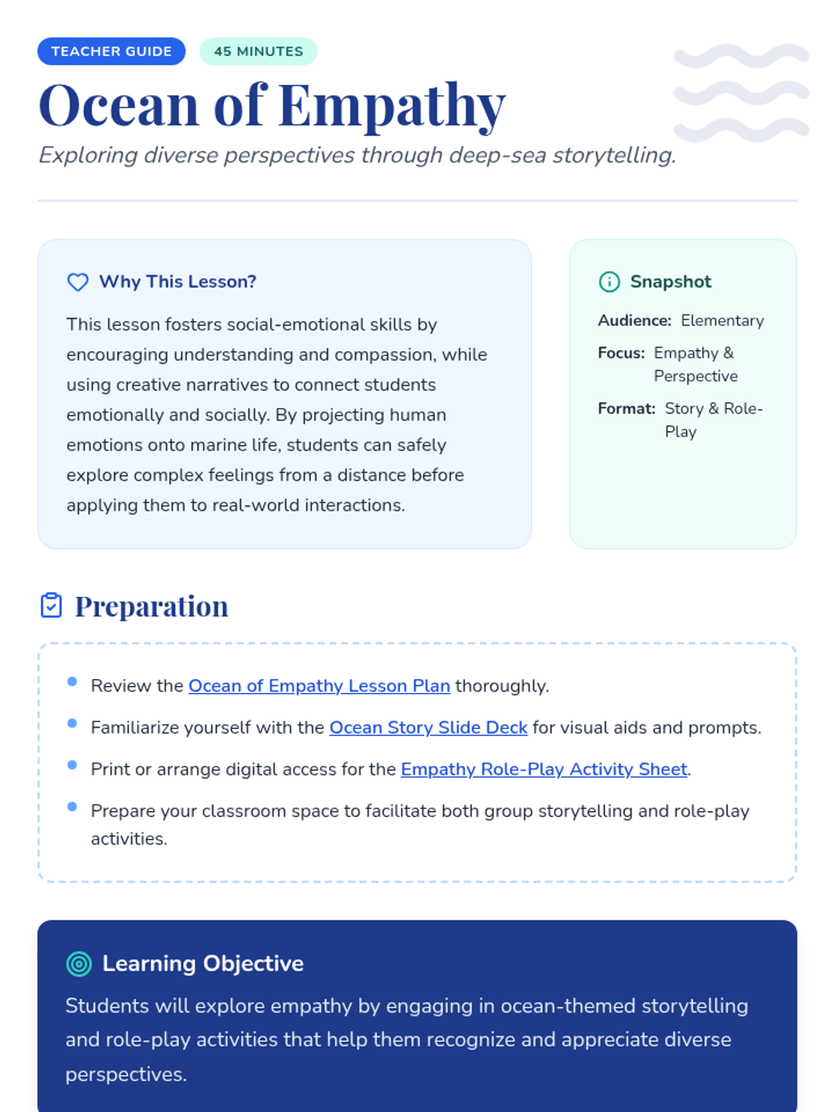 A social-emotional learning lesson that uses ocean metaphors and role-play to teach students about empathy and diverse perspectives.