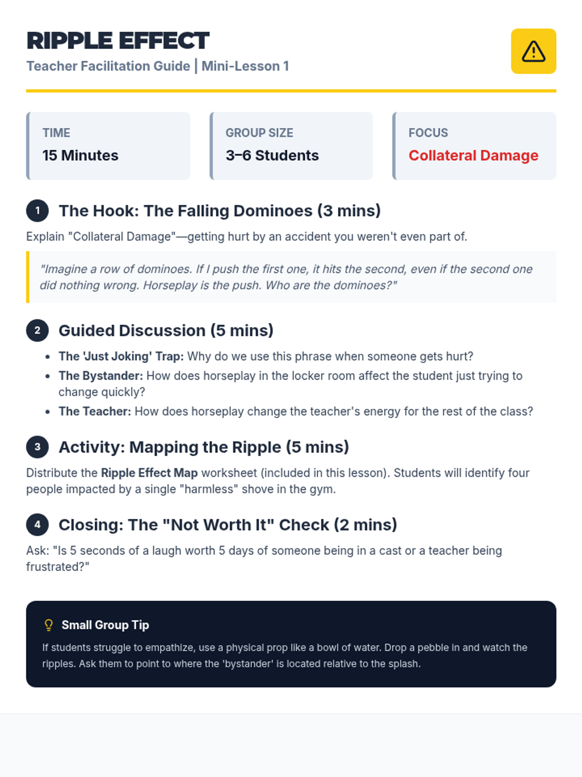 Examines how horseplay disrupts the flow of games and learning, leading to lost privileges and broken trust within a group.