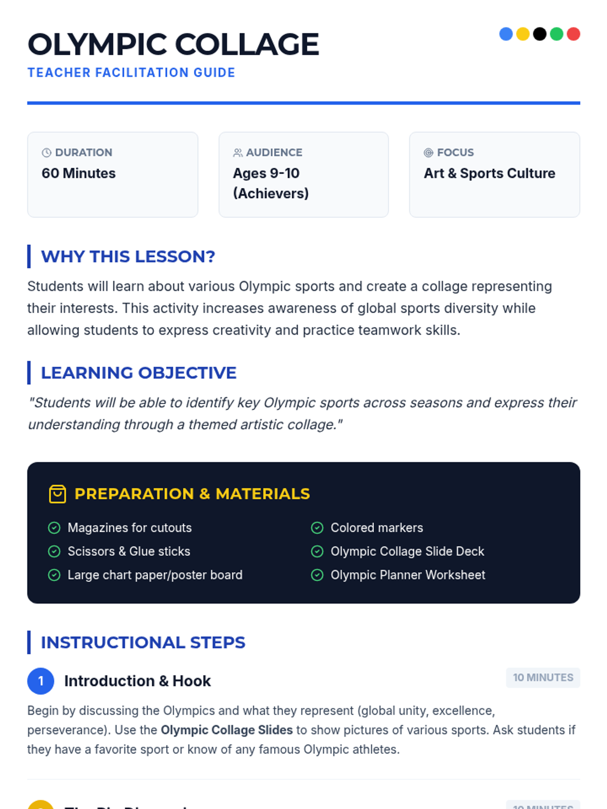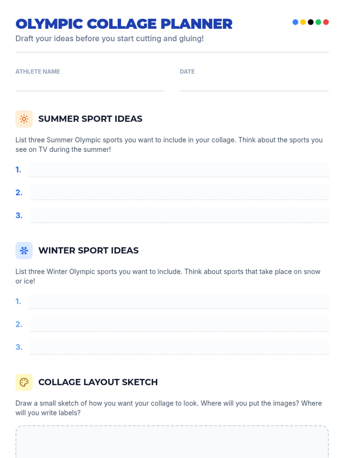 Students explore the diversity of Olympic sports through discussion and creative art. They categorize sports by season and express their understanding by creating a visual collage.