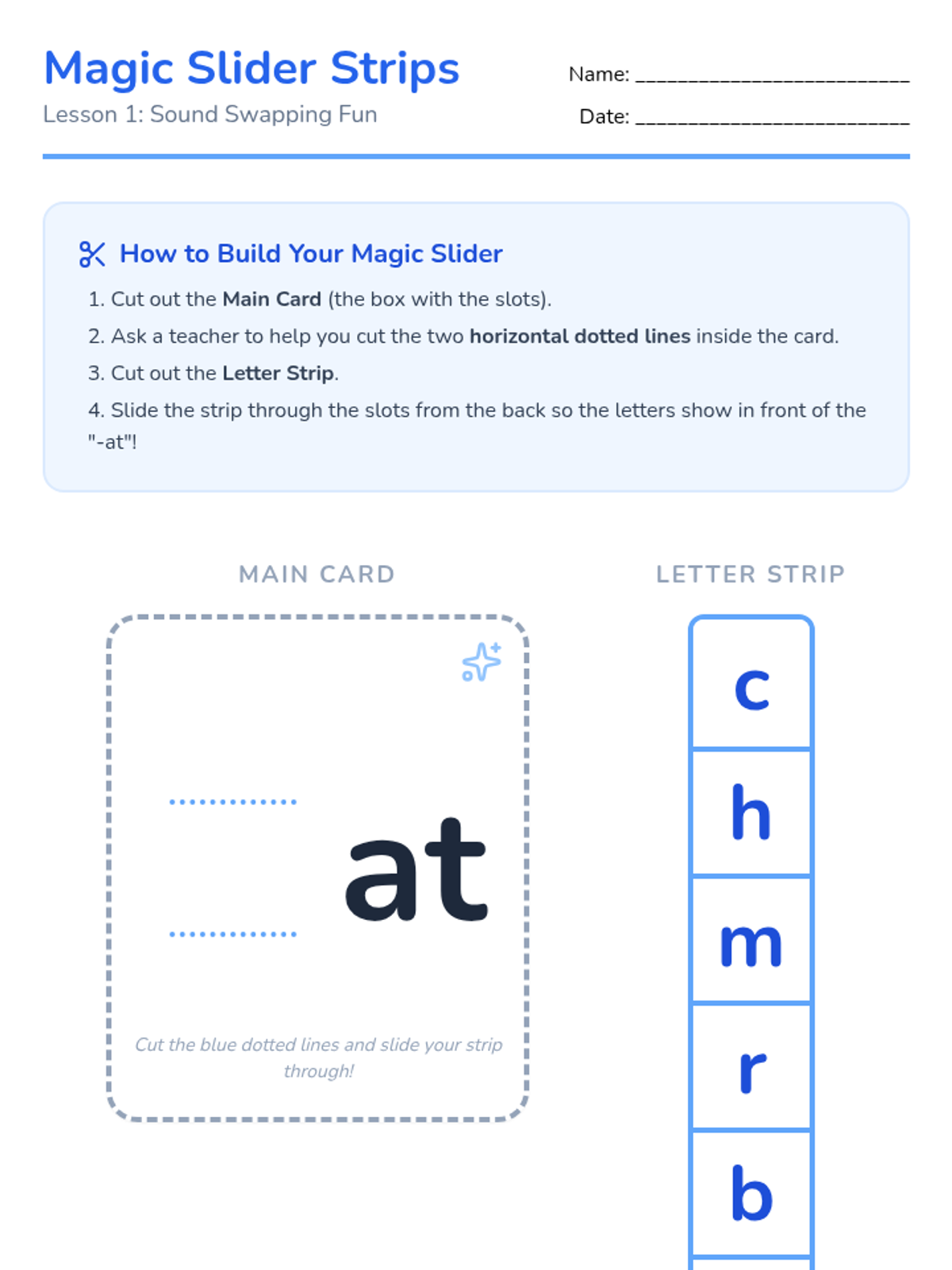Students learn how to 'swap' the first sound of a word to make a new one using physical manipulatives, focusing on the concept of onset and rime.