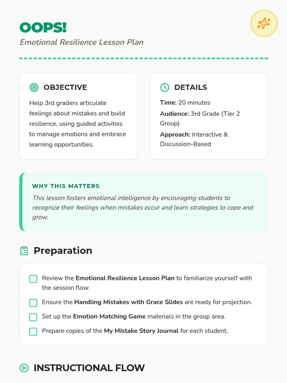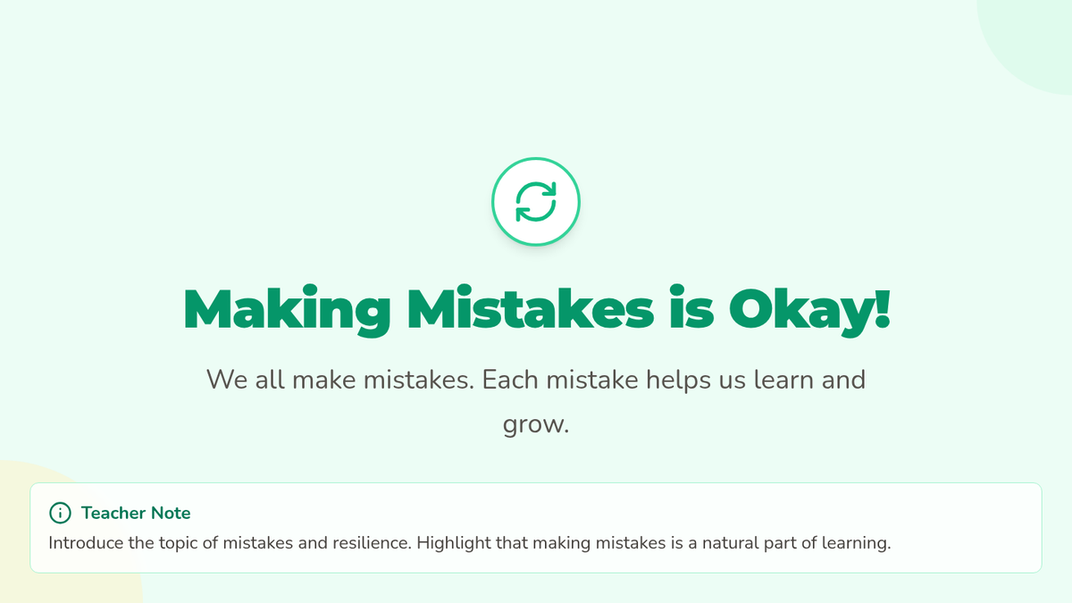 A small group session focusing on the emotional aspect of making mistakes, helping students to articulate their feelings and develop resilience.