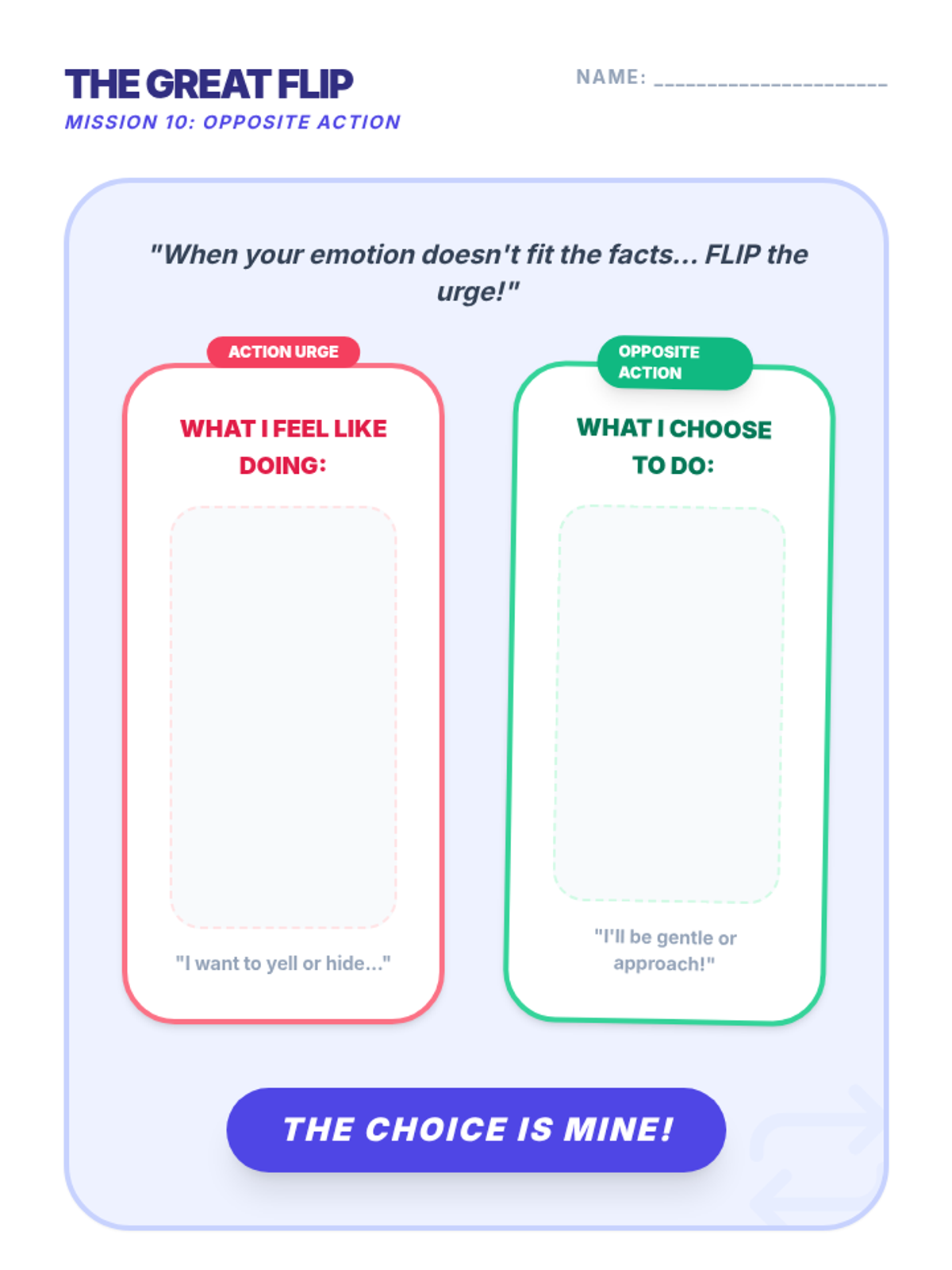 Learning to act opposite to an emotional urge when that emotion does not fit the facts.