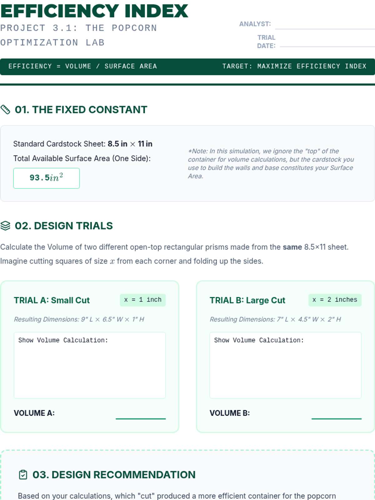 An investigation into the relationship between surface area and volume to understand material efficiency in manufacturing.