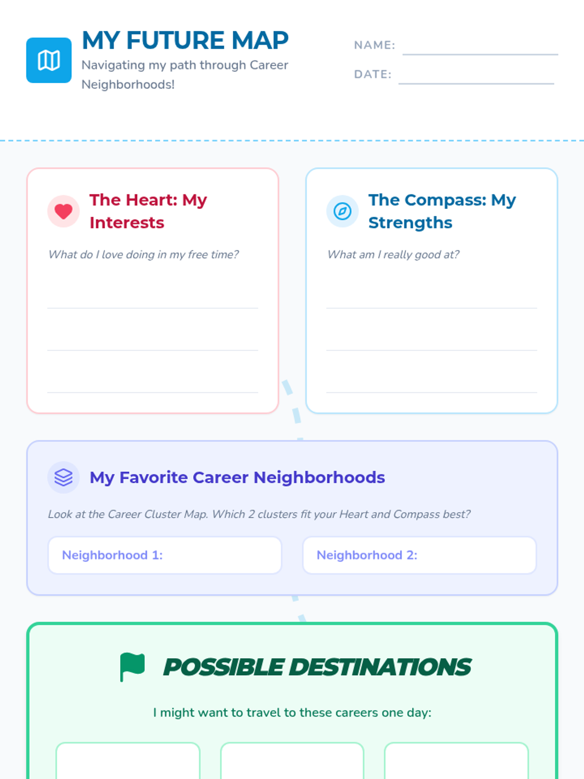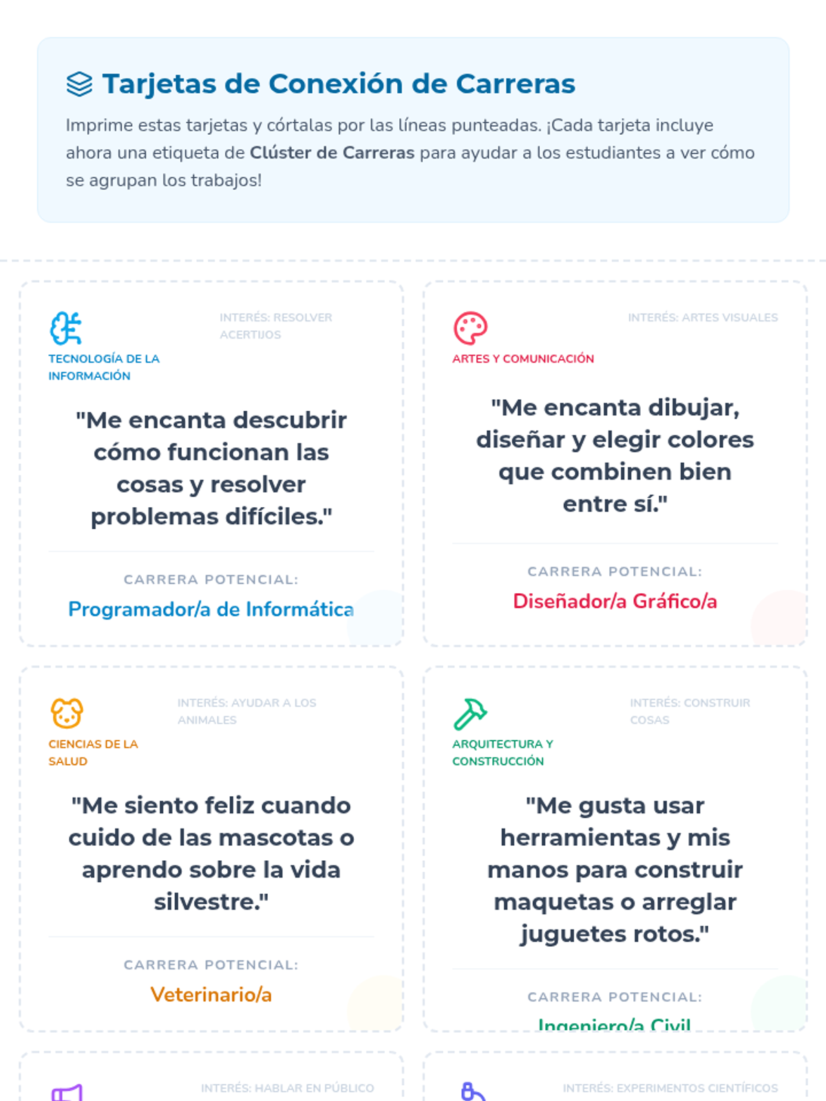 A 45-minute small group session designed for 4th graders to explore their interests and connect them to potential career paths through discussion and brainstorming.