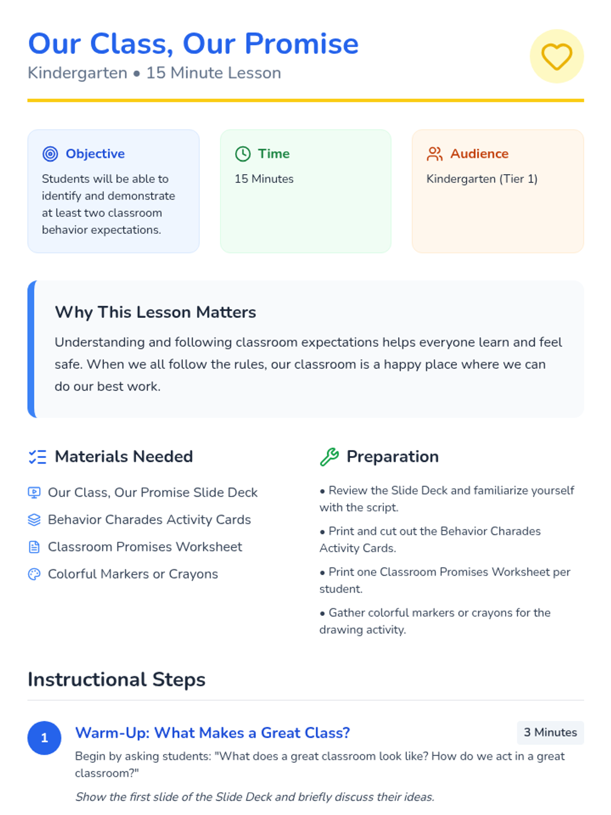 This 15-minute lesson for Kindergarten students introduces and reinforces essential classroom behavior expectations, fostering a positive and productive learning environment. It helps students understand how their actions contribute to a respectful classroom where everyone can learn and feel safe.