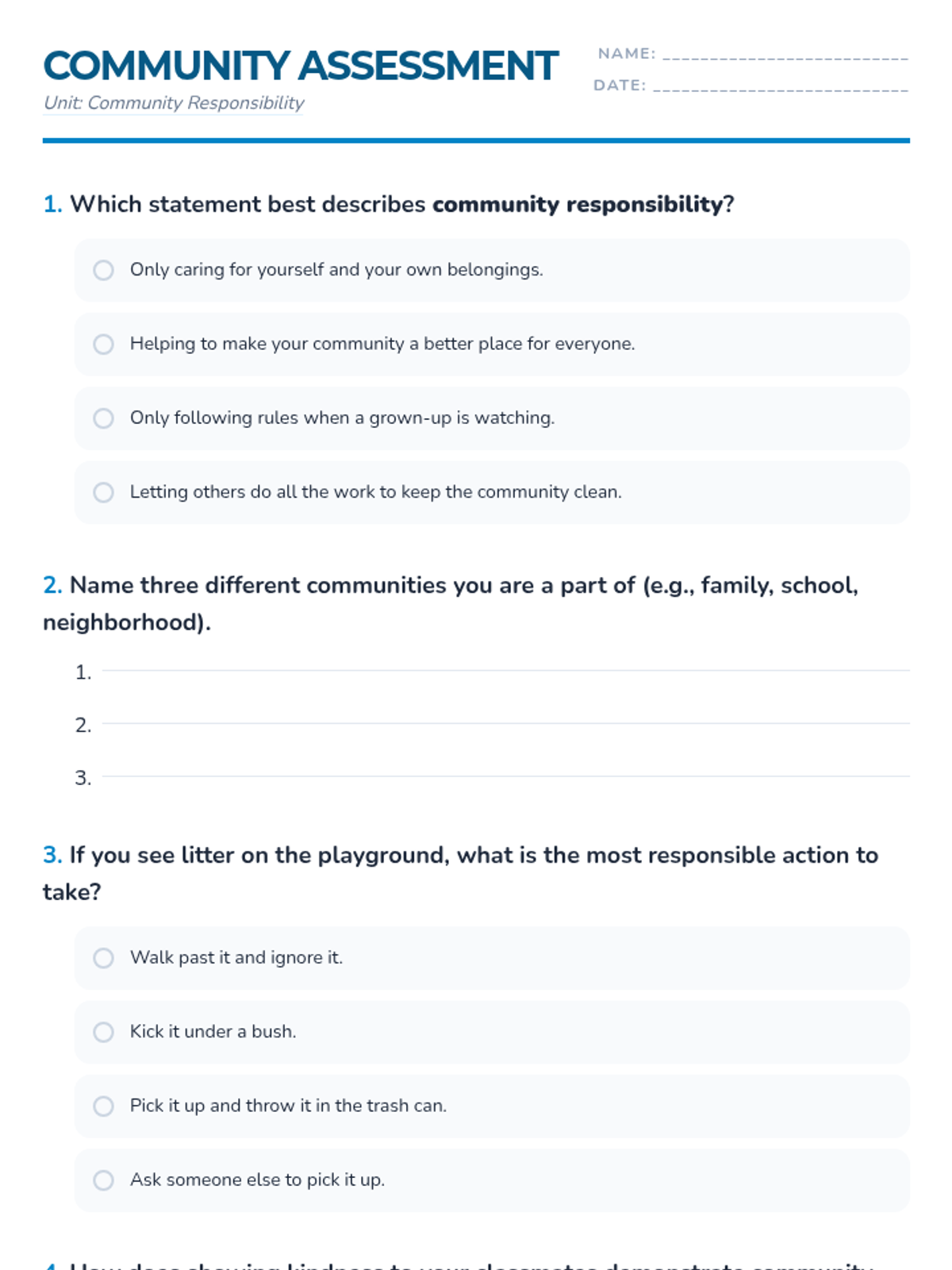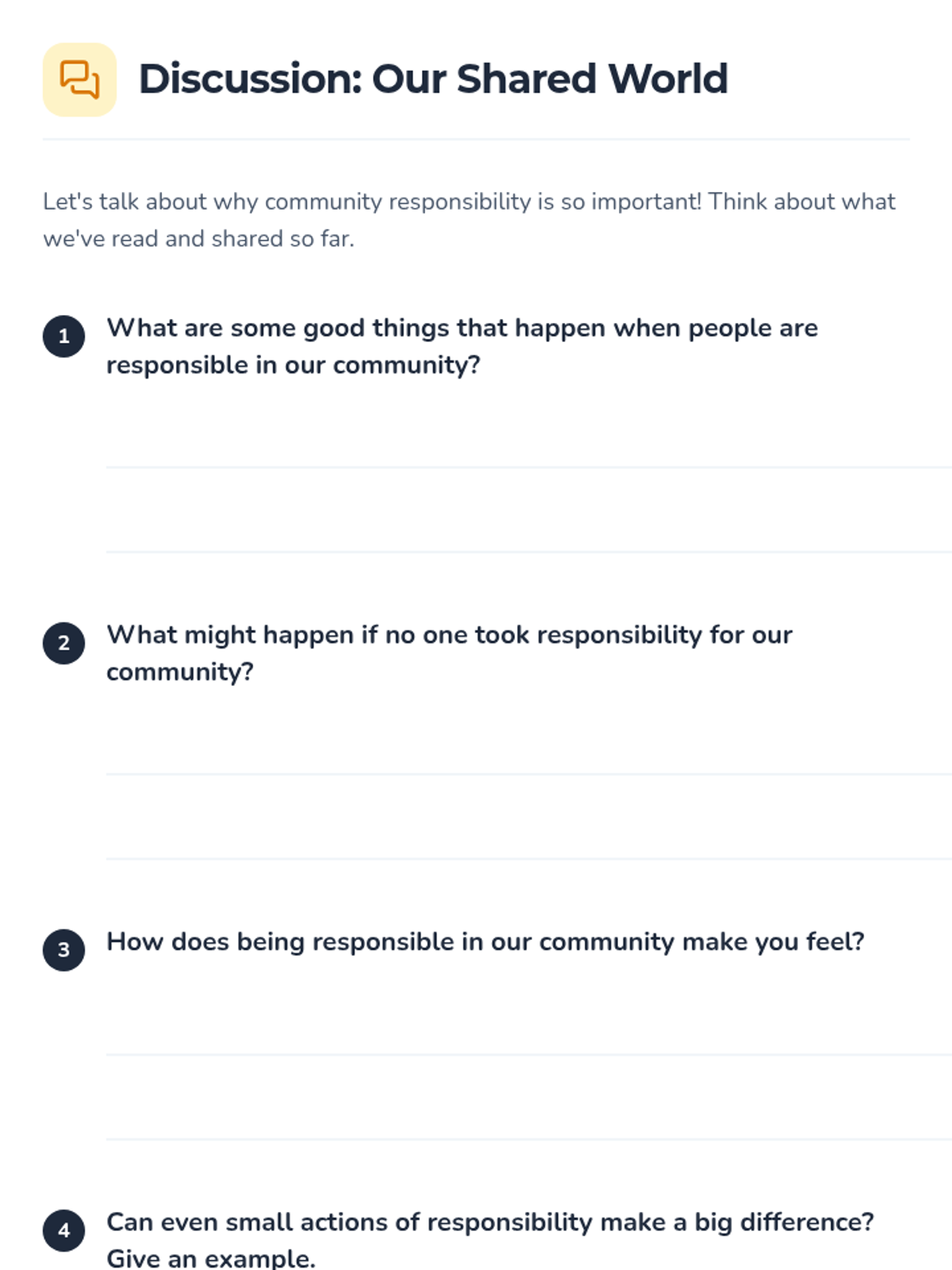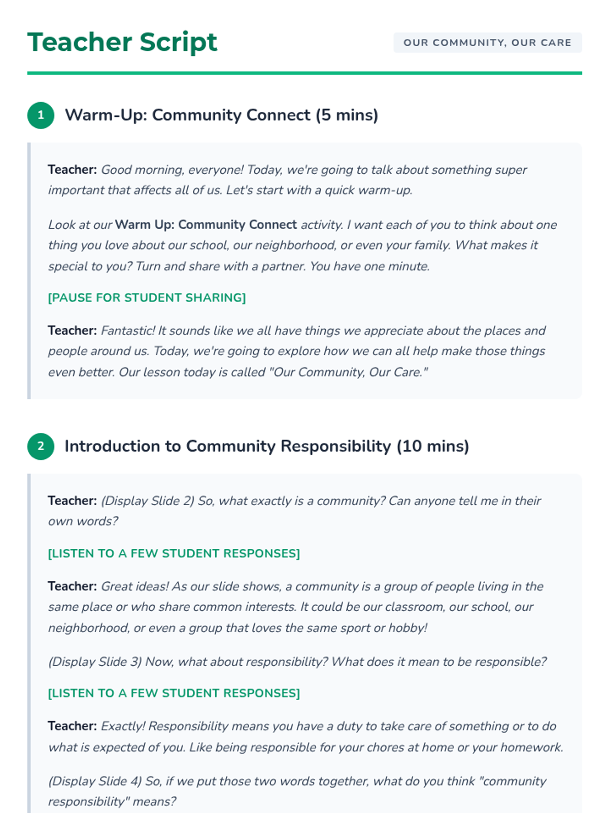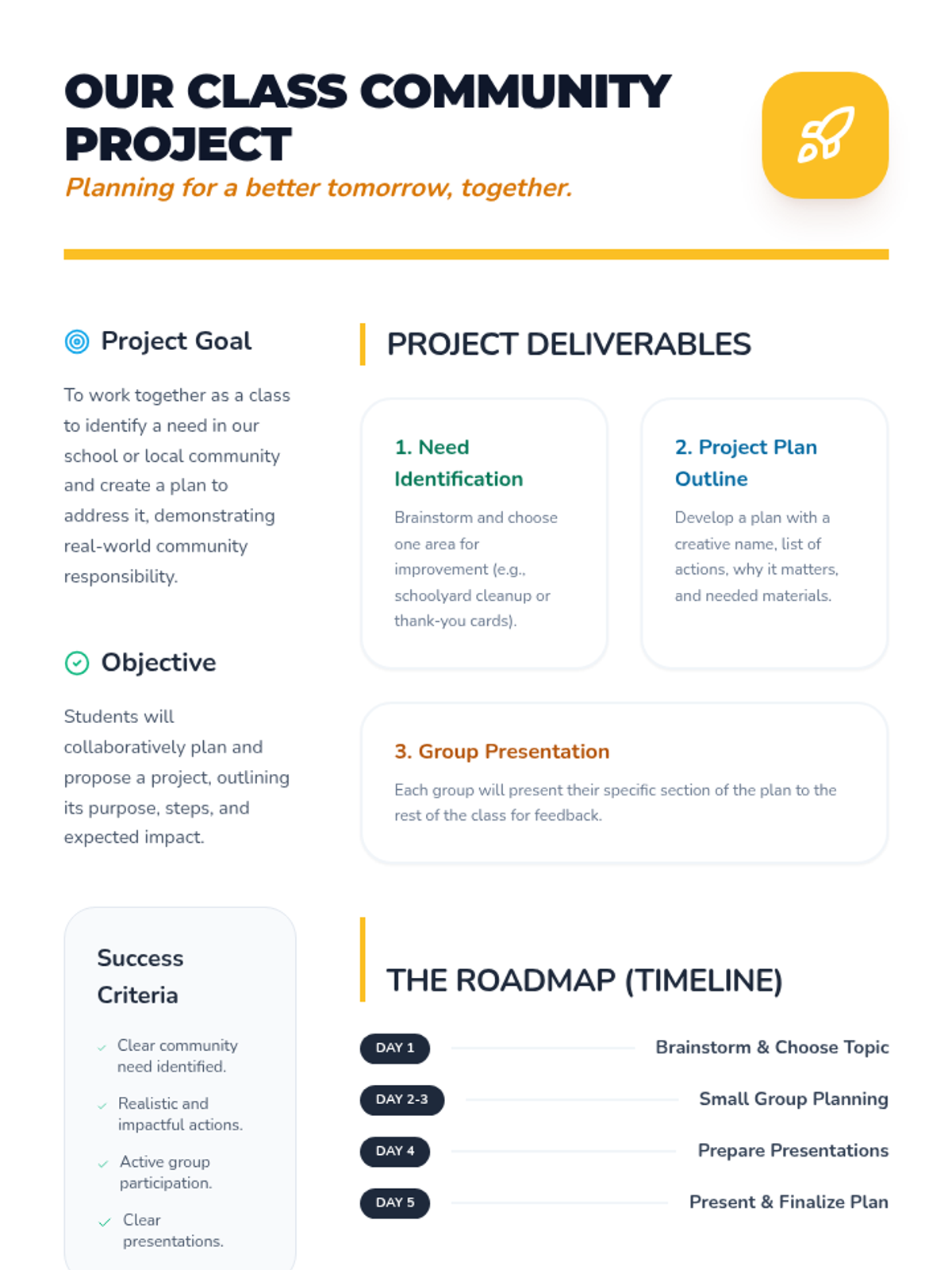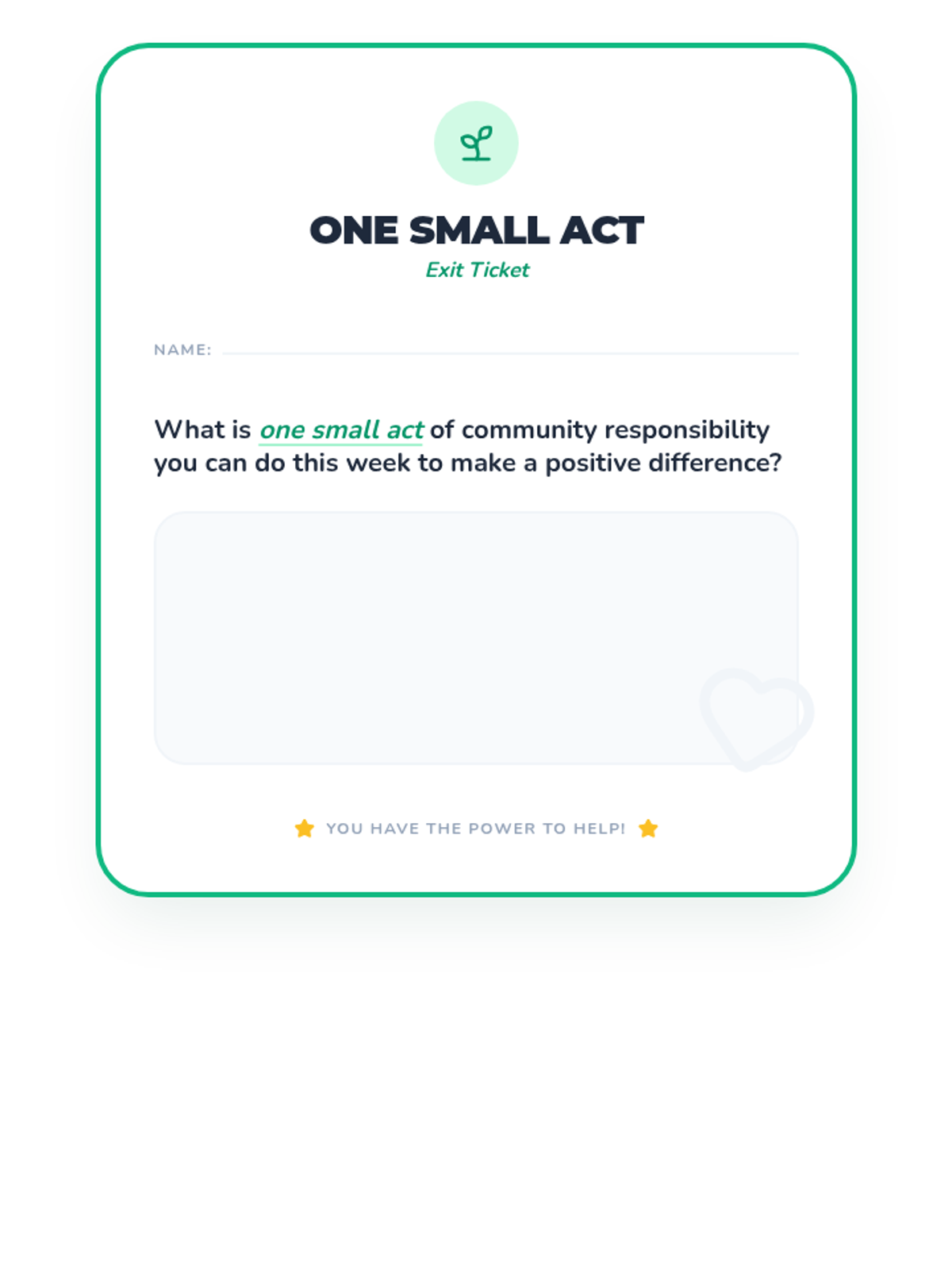 A 60-minute lesson for Primary 3 and 4 students exploring community responsibility, empathy, and positive contributions to their local environment. Students will engage in interactive activities, group work, and personal reflection to understand their role in a wider society.
