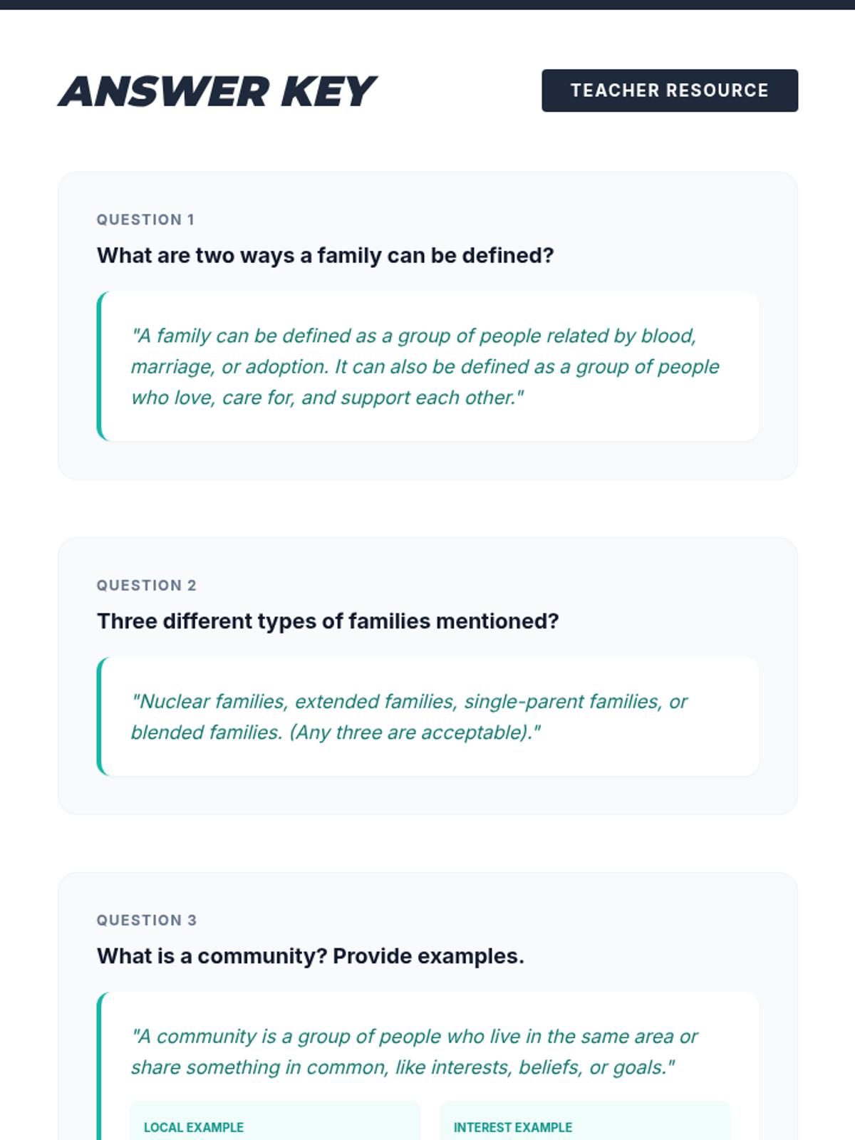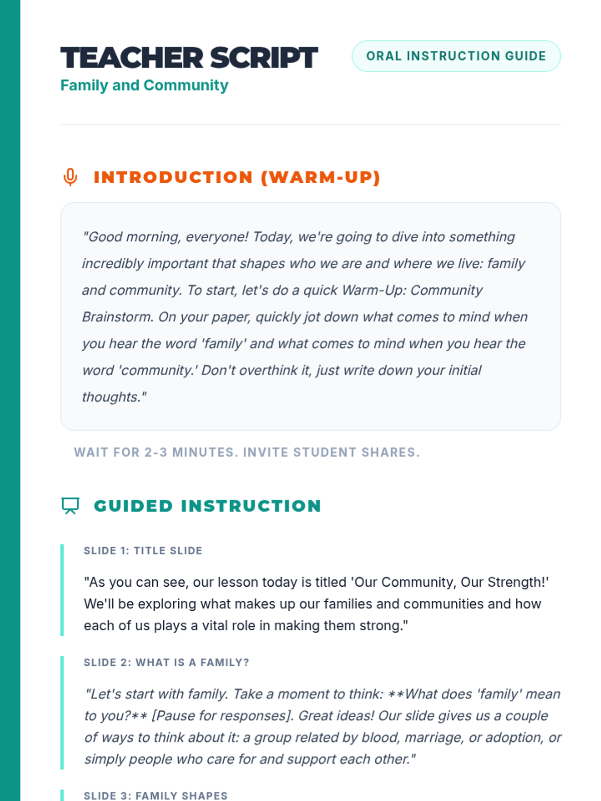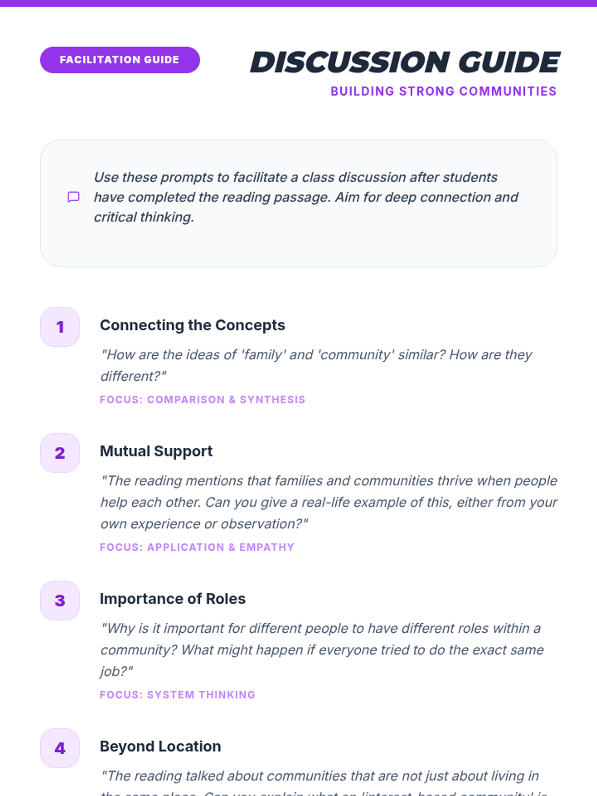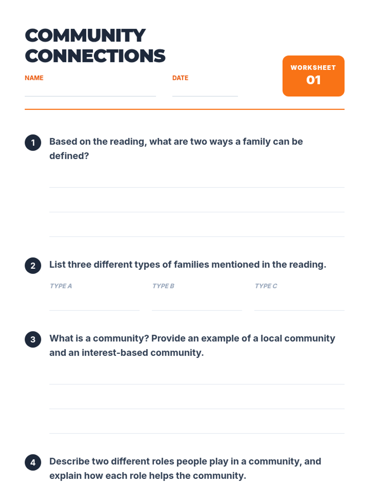 A 45-minute lesson for 6th-grade students exploring the vital roles of family and community, fostering understanding of interconnectedness and civic responsibility.