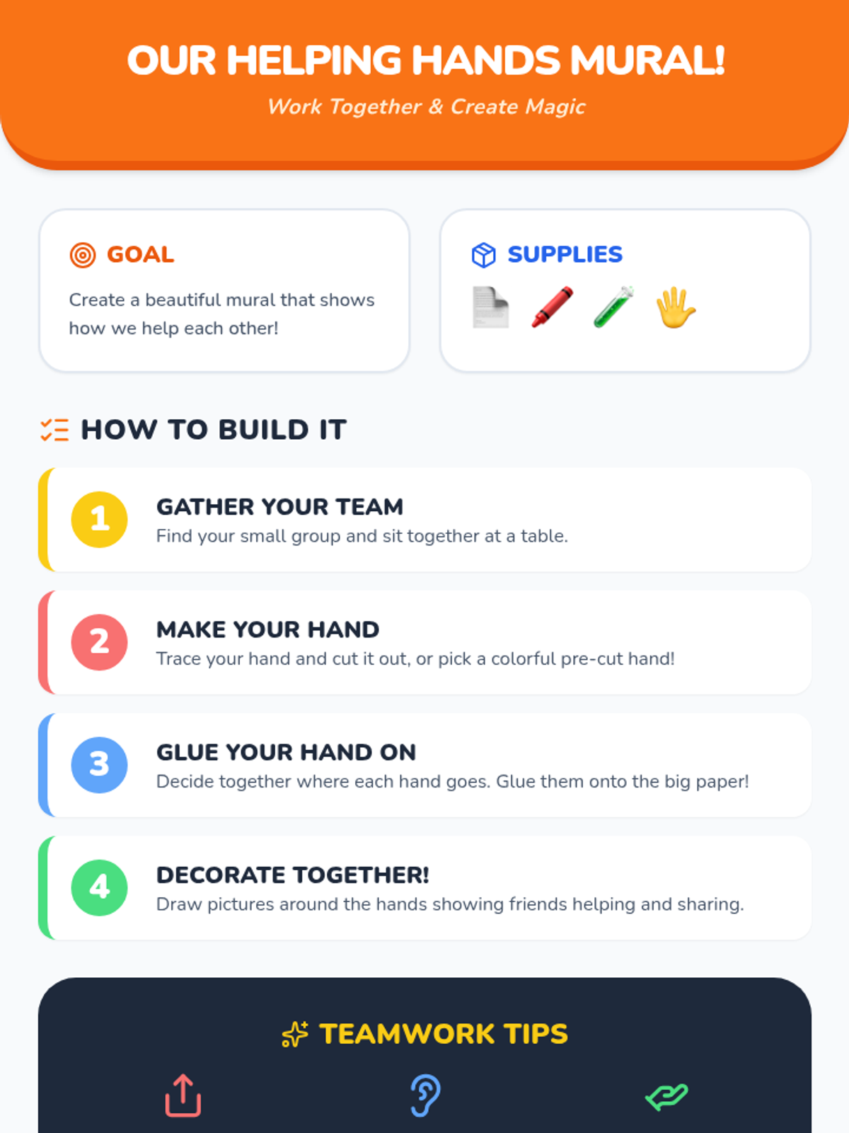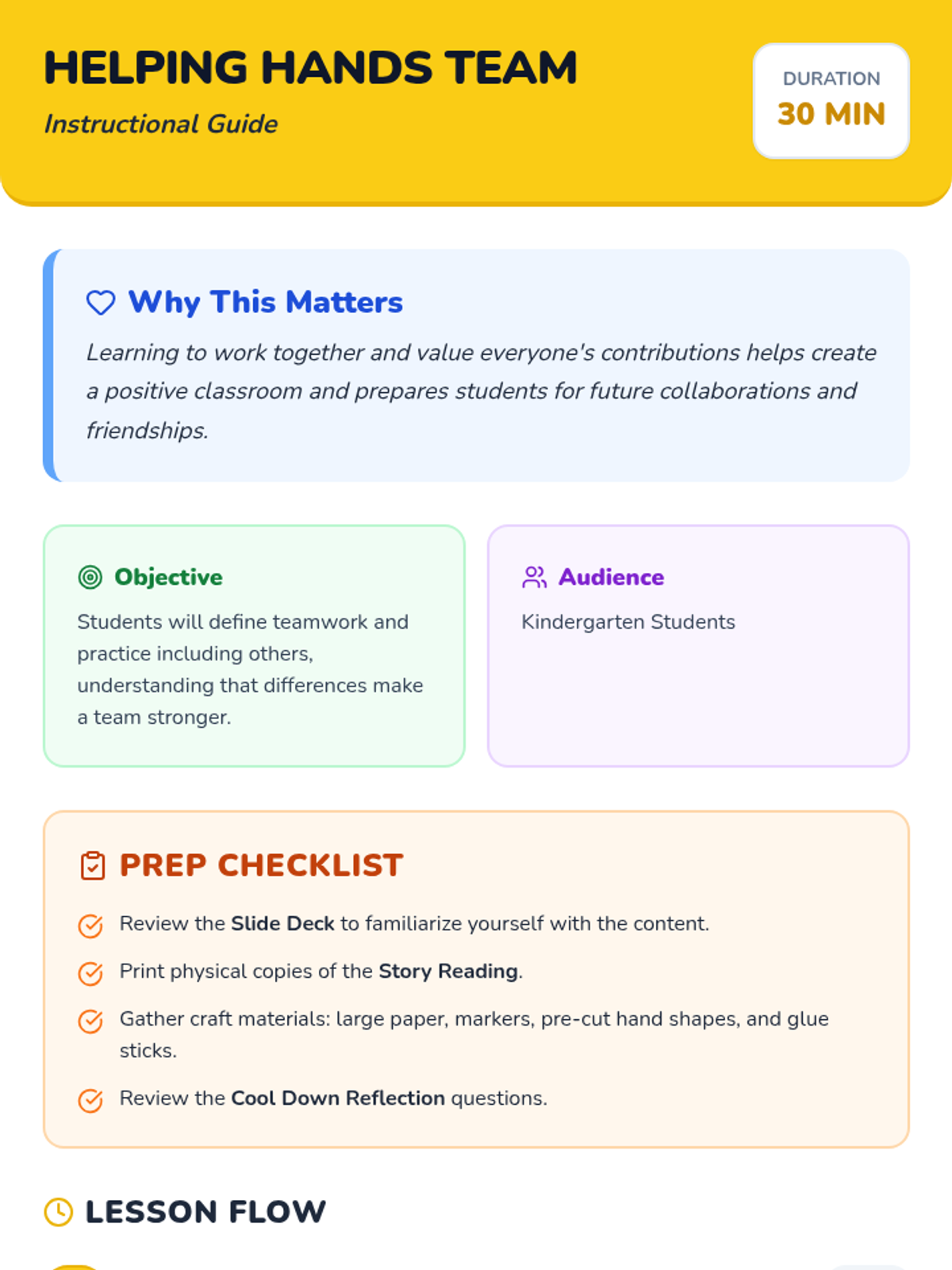 A 30-minute Kindergarten lesson that uses storytelling and a collaborative craft to teach students about teamwork, inclusion, and the strength found in diversity.