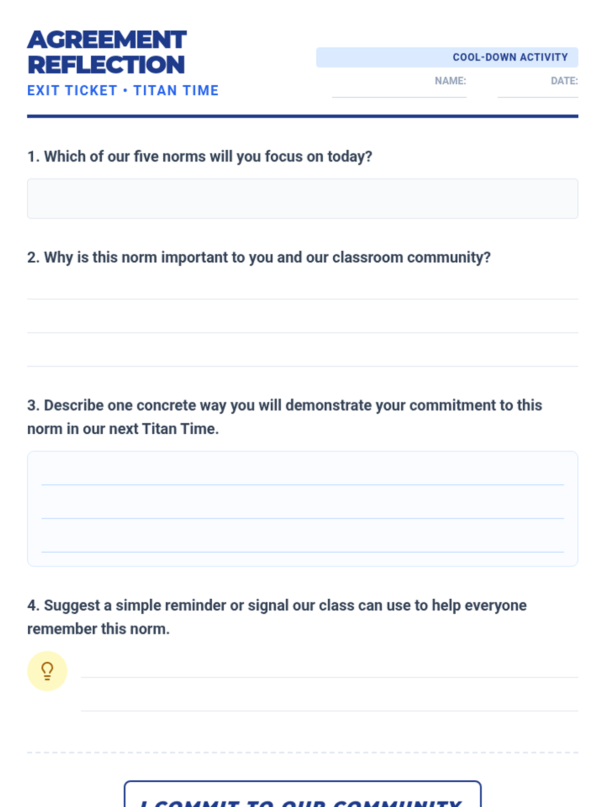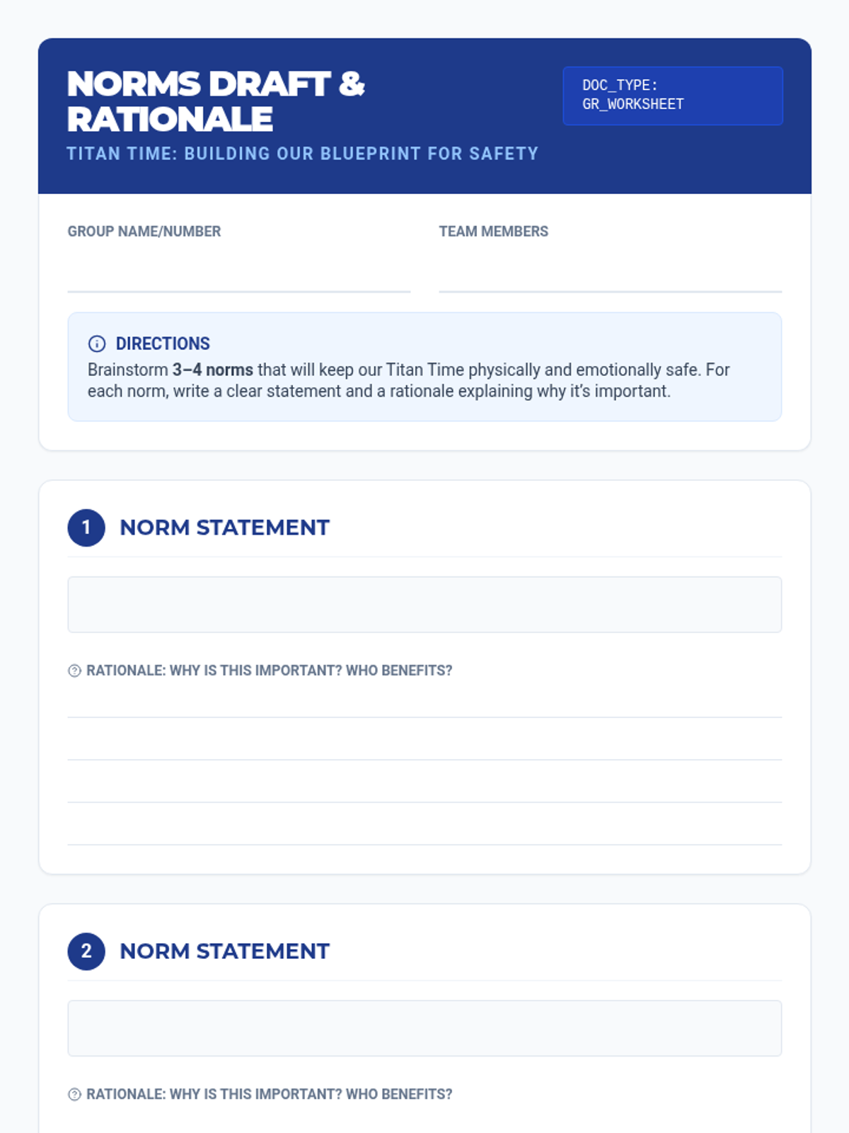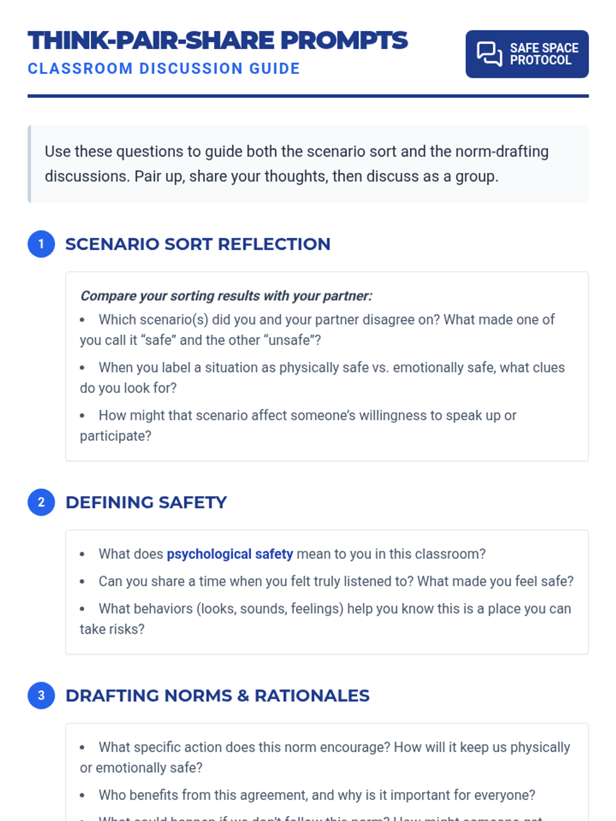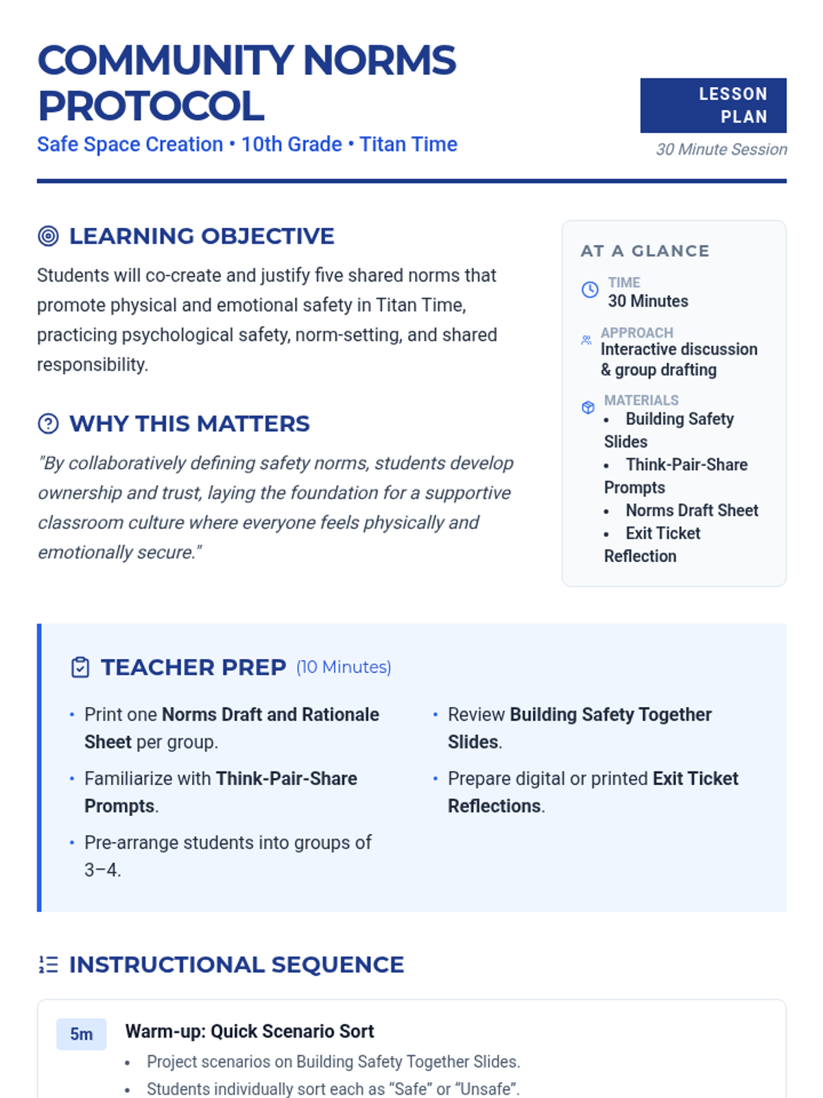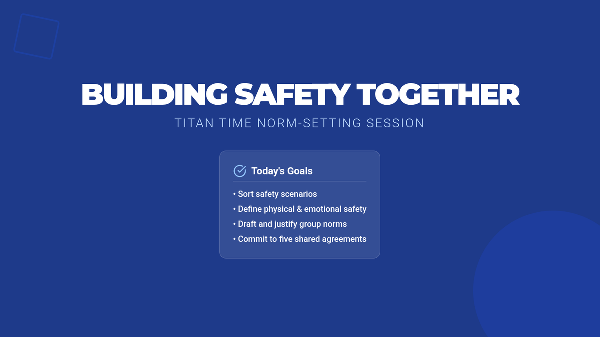 A 30-minute interactive lesson for 10th graders to co-create and justify five shared classroom norms focused on physical and emotional safety.