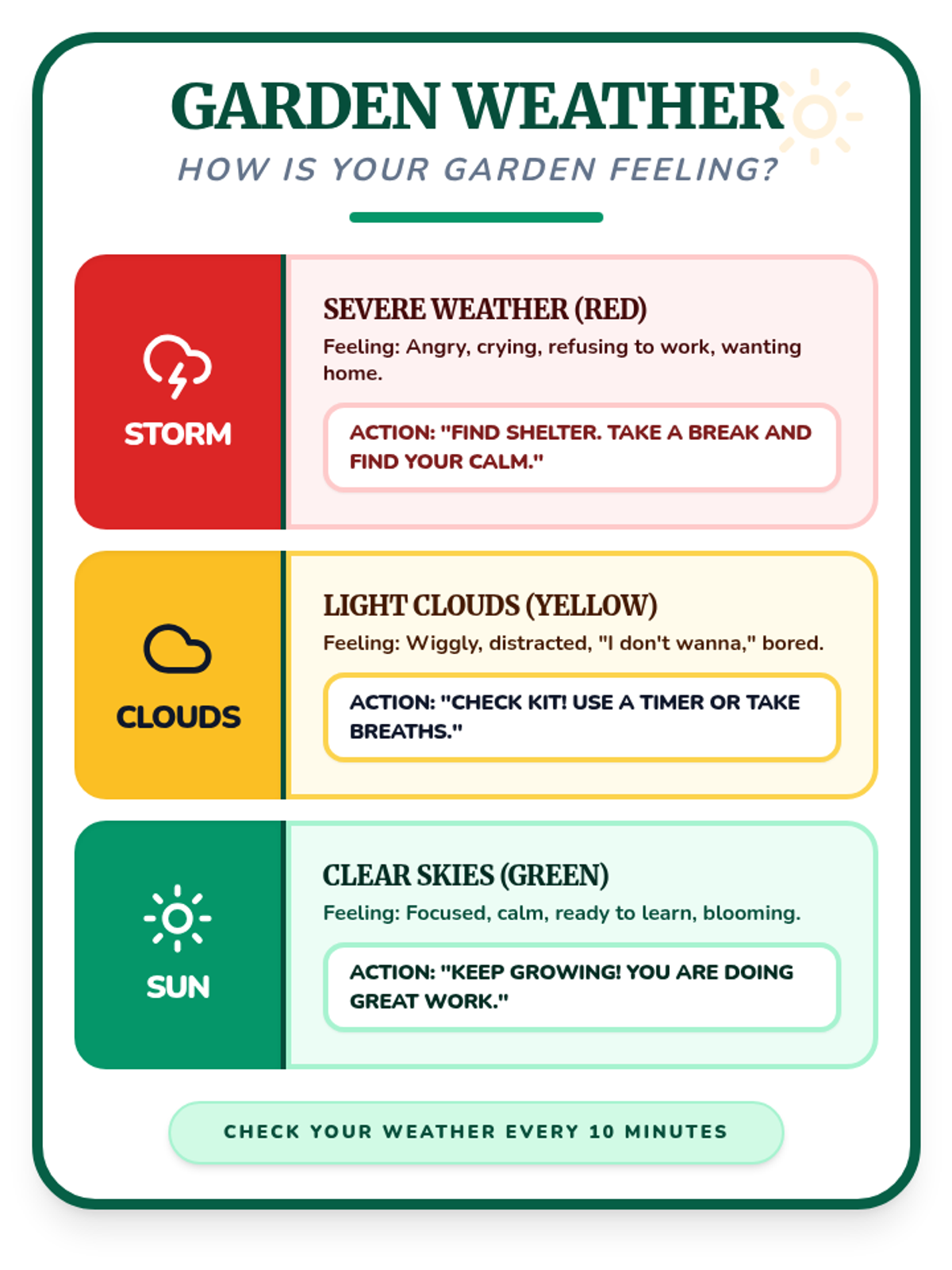 Navigating emotional regulation and frustration by understanding 'garden weather' and using tools to handle academic storms.