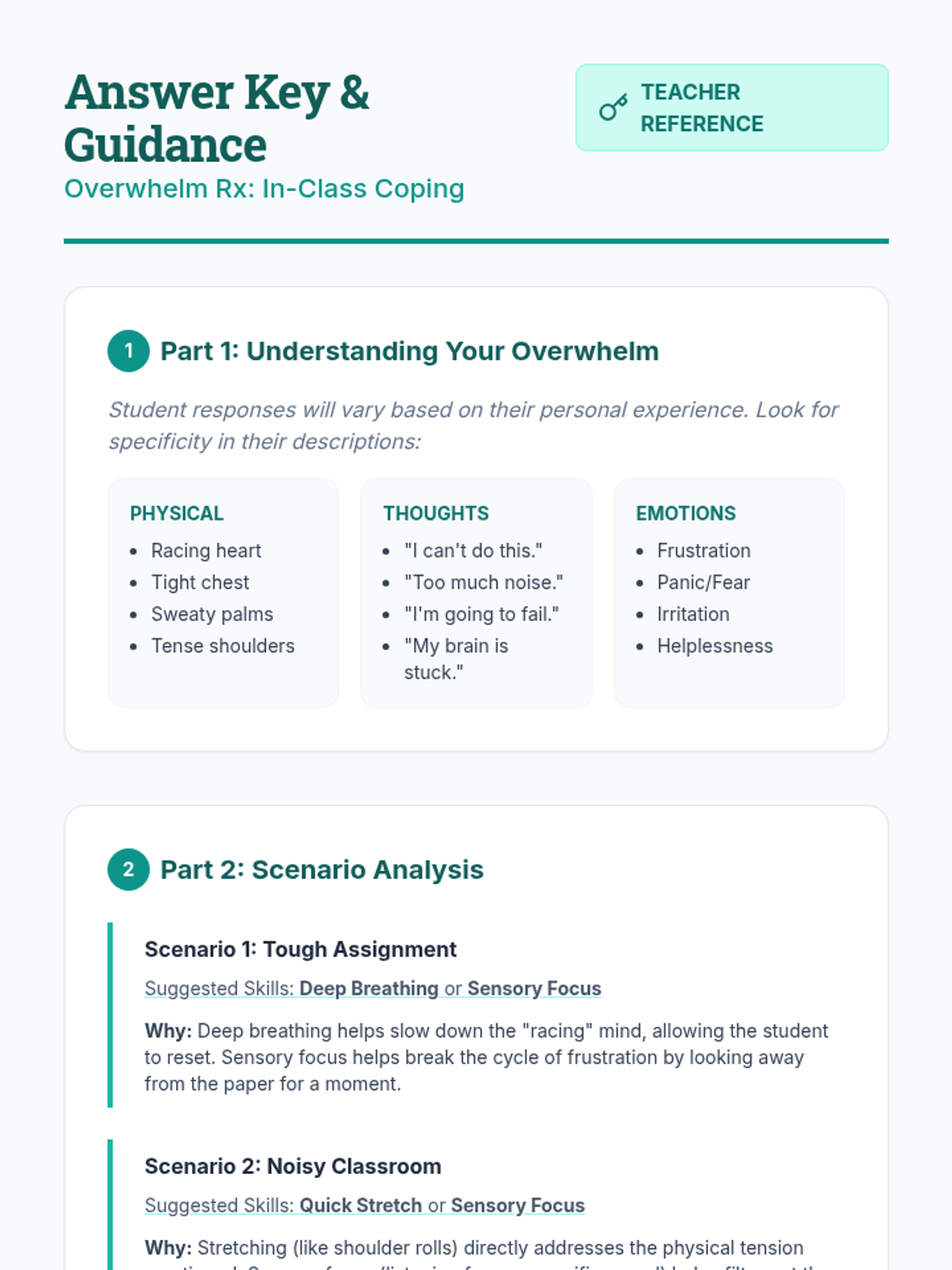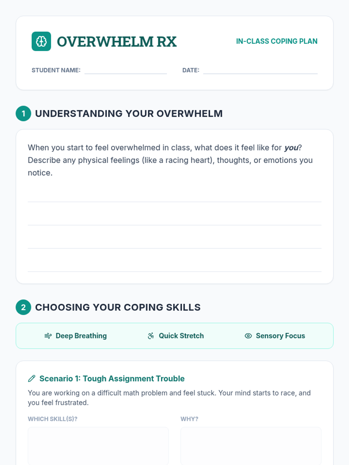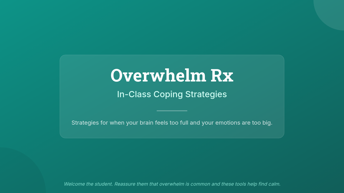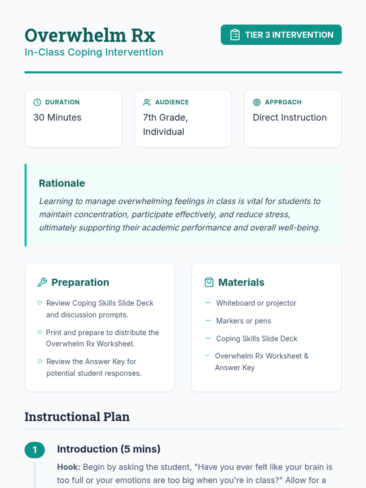 A 30-minute Tier 3 intervention for 7th graders to learn and practice discrete coping skills for managing overwhelm in the classroom.