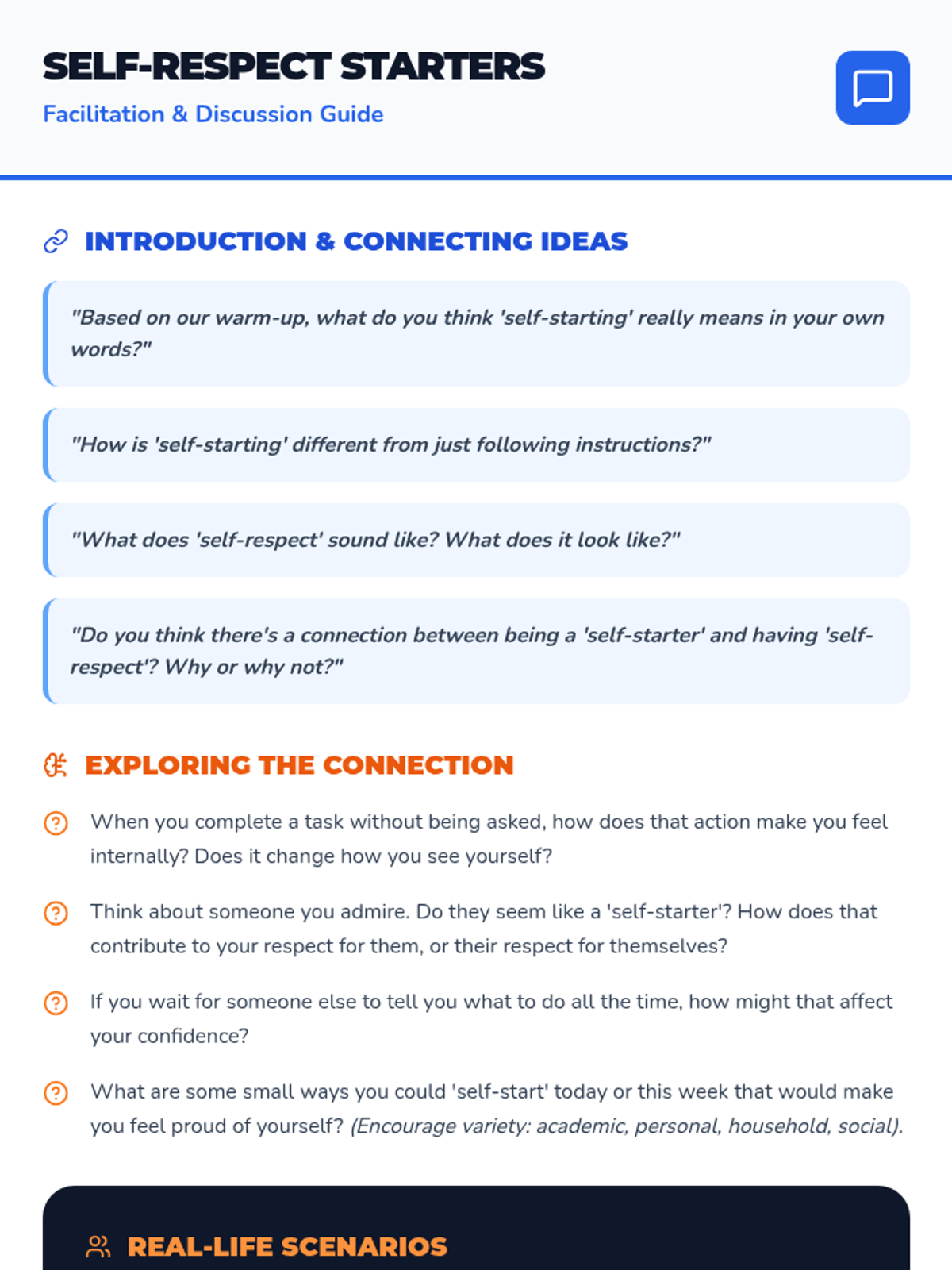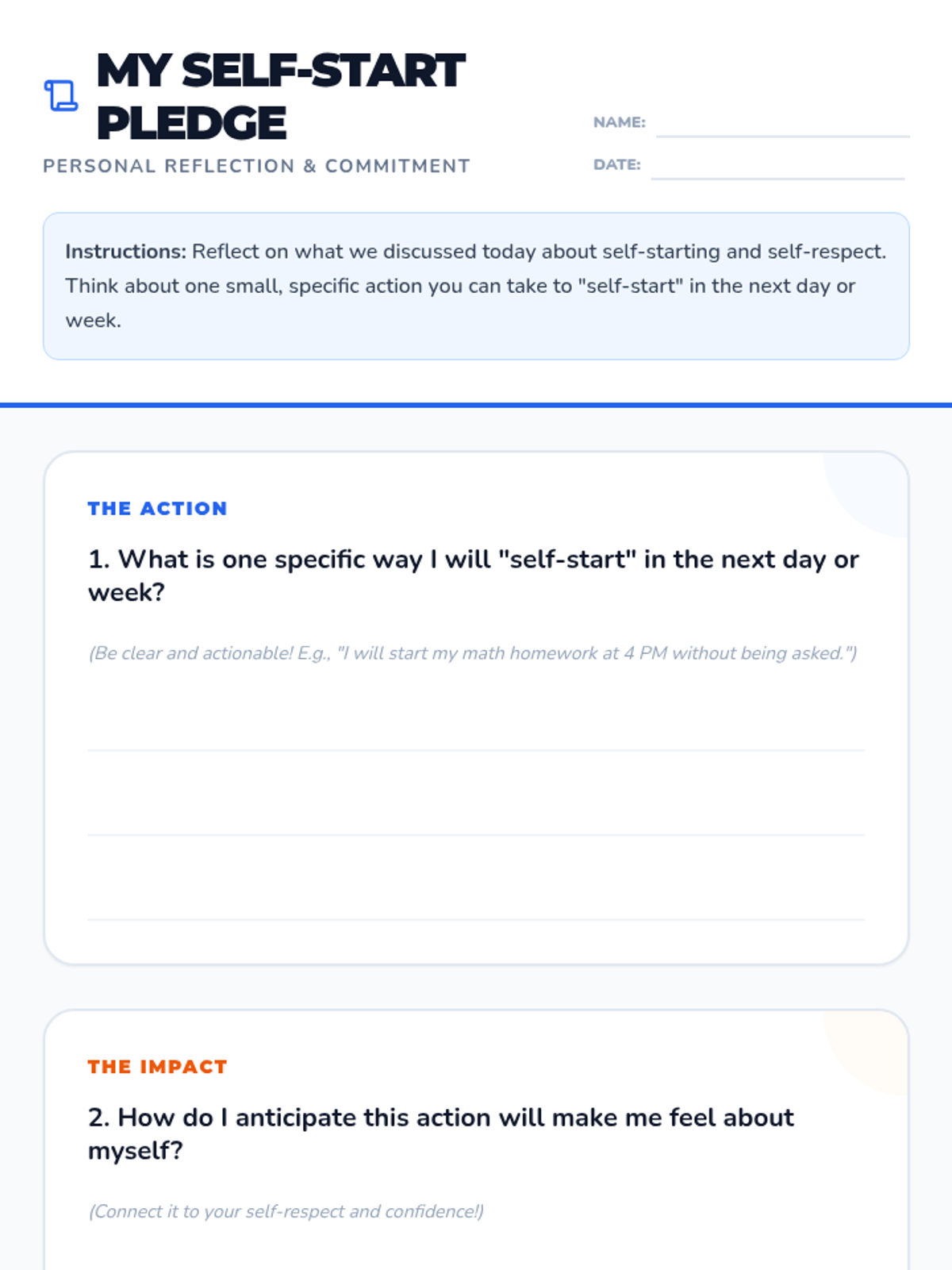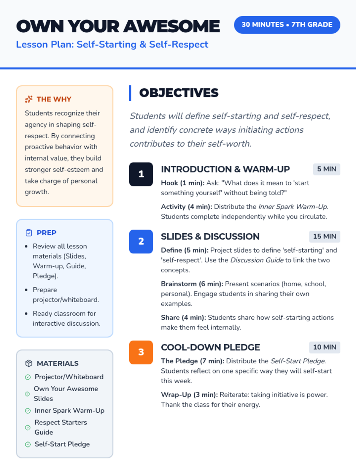 A 30-minute lesson for 7th graders that connects personal initiative with self-respect, empowering students to take charge of their own growth.