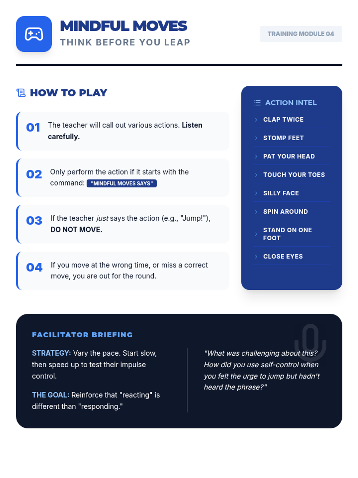 Developing the vocabulary and tools for healthy emotional expression. Students learn that expressing feelings is a form of strength, not weakness.