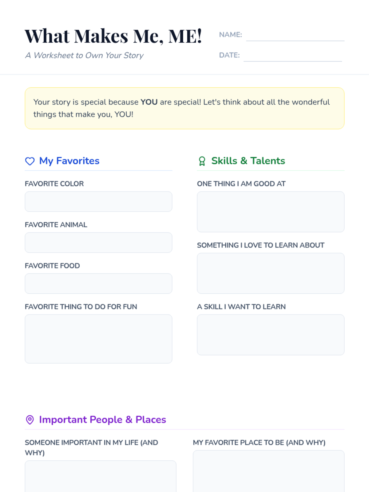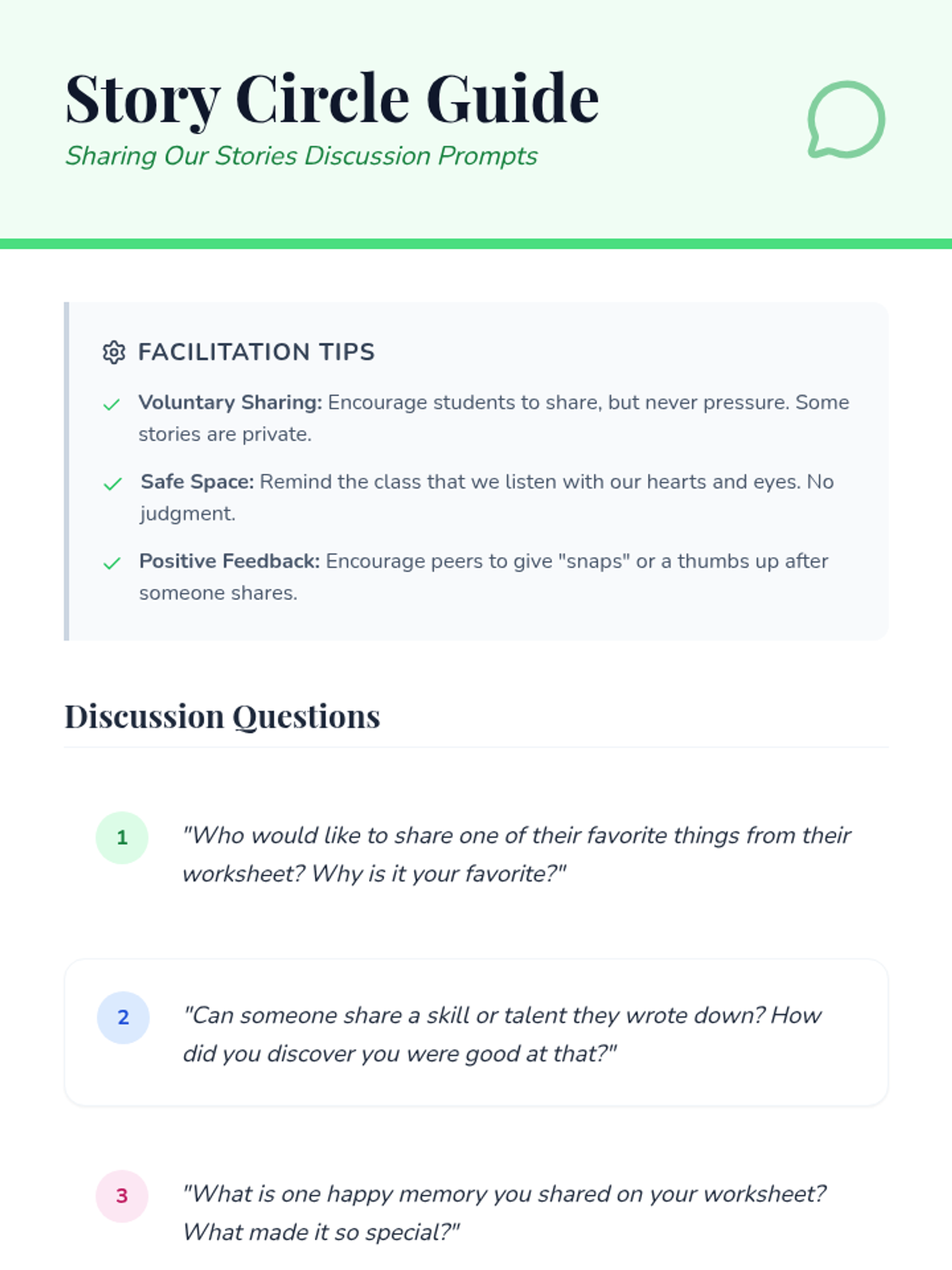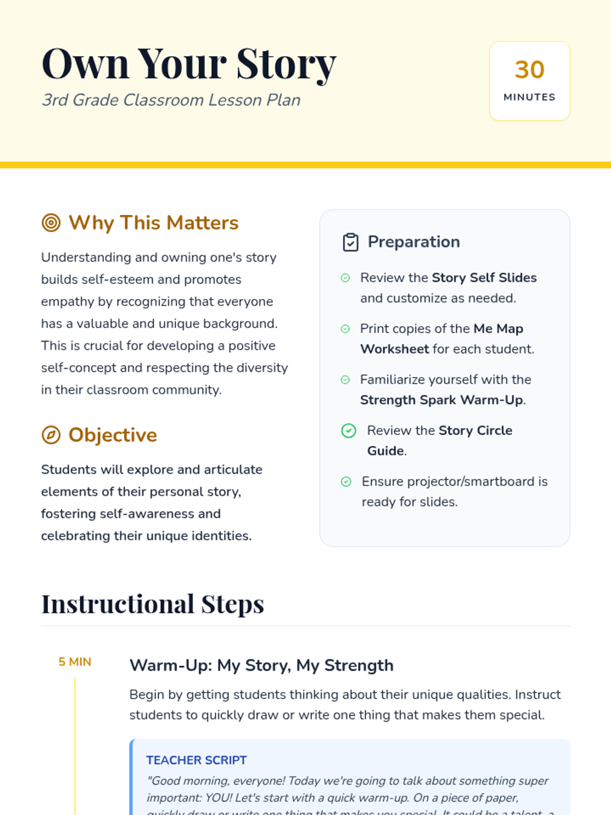 A 30-minute lesson for 3rd graders to explore their unique identities, celebrate personal experiences, and build classroom empathy through storytelling and reflection.