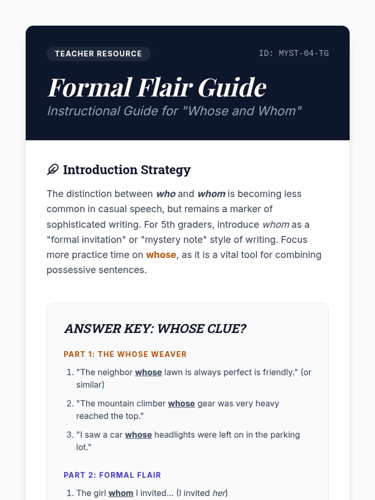 A high-stakes grammar escape room where students act as secret agents to solve mysteries using their knowledge of parts of speech and subject-verb agreement.