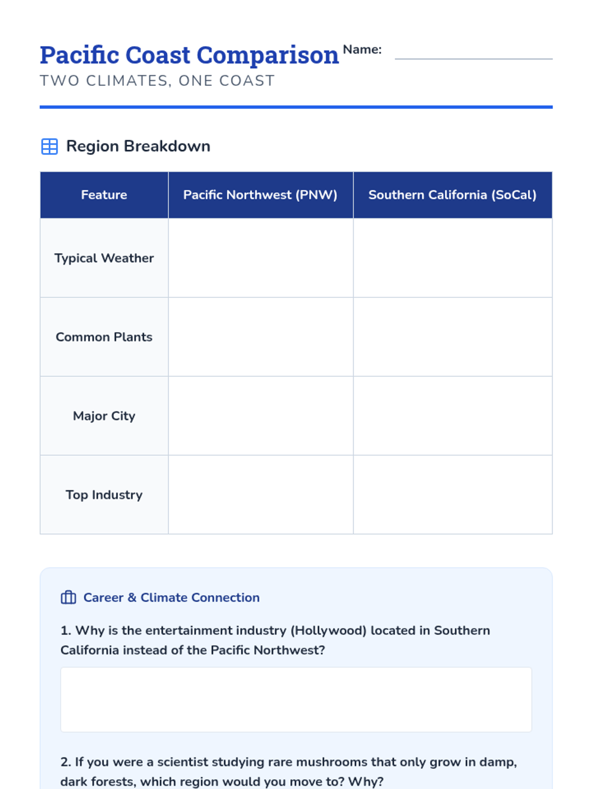 A comparison of the distinct climates of the Pacific coast, from the rainy Northwest to sunny Southern California, and their impact on local industries.