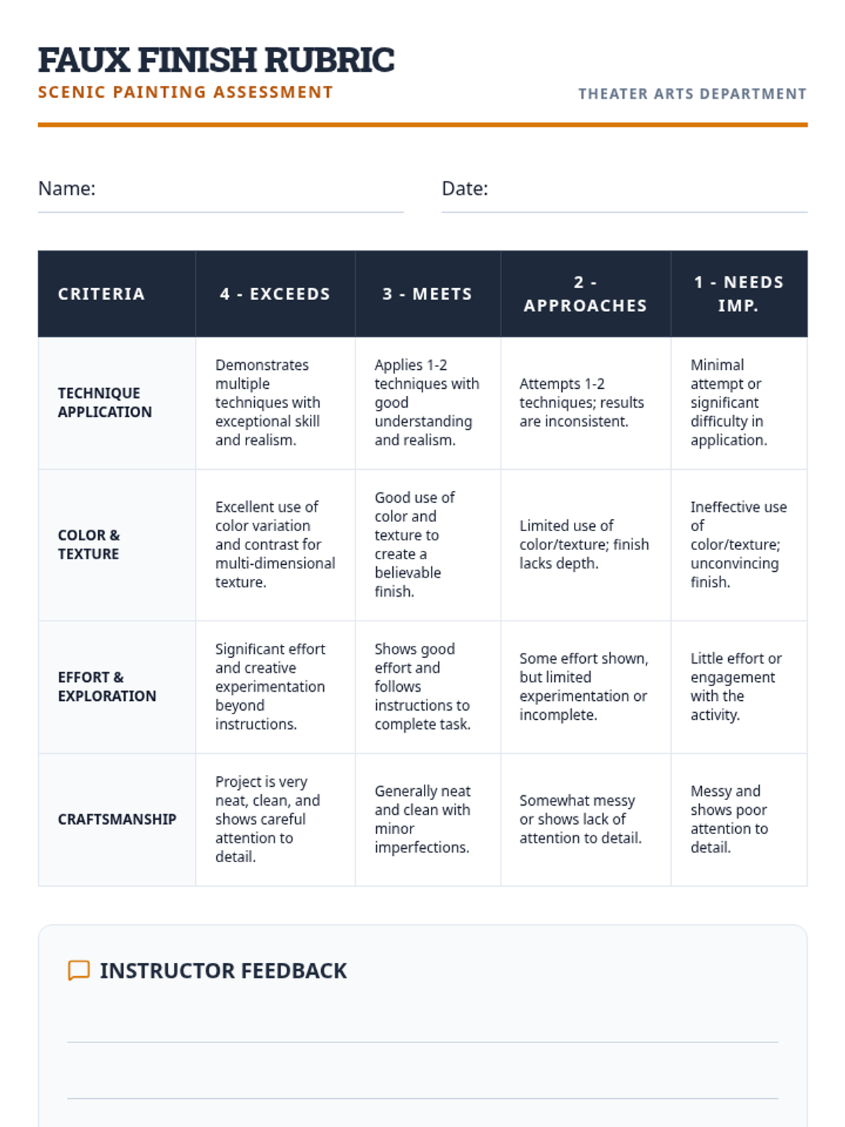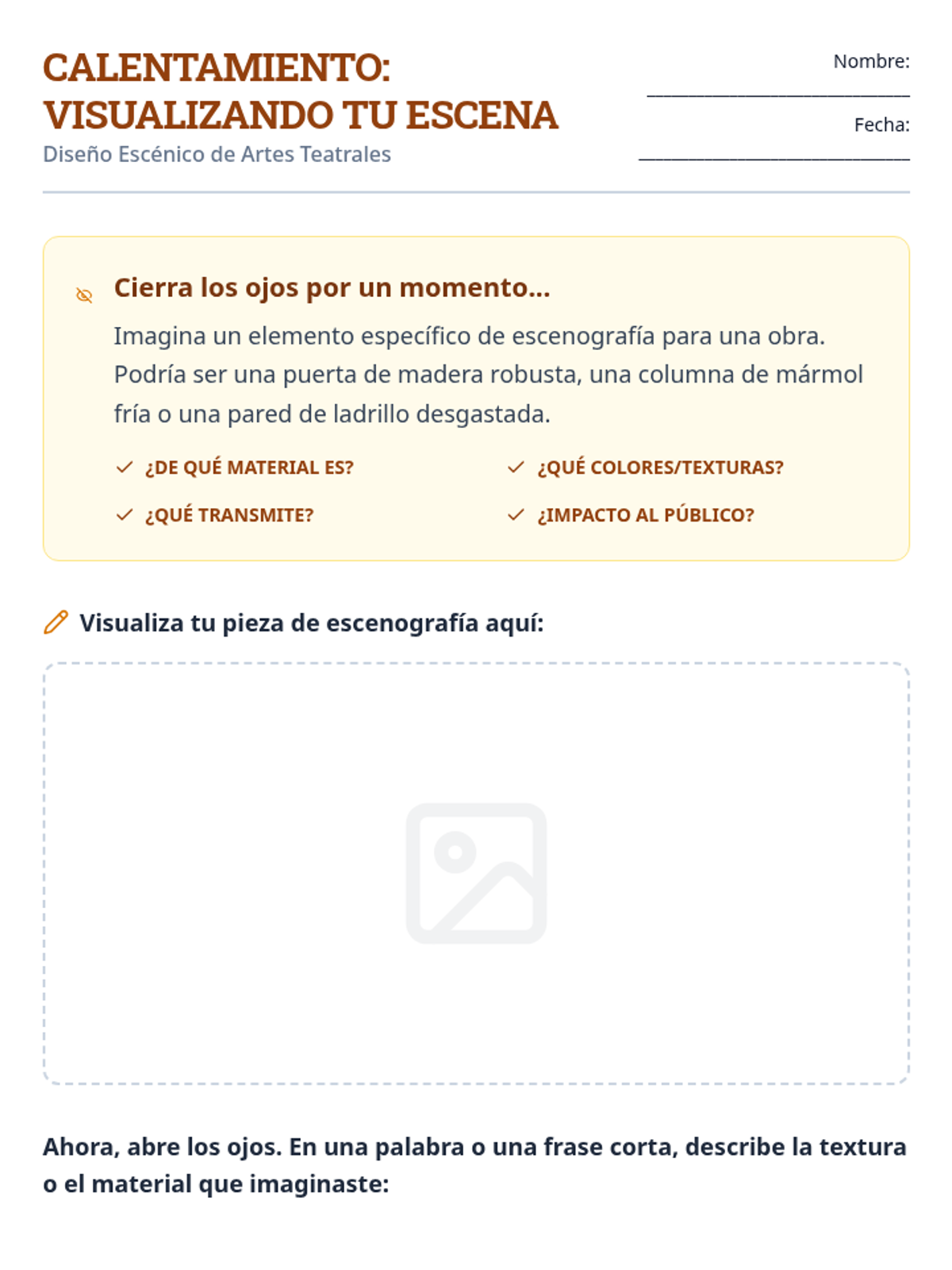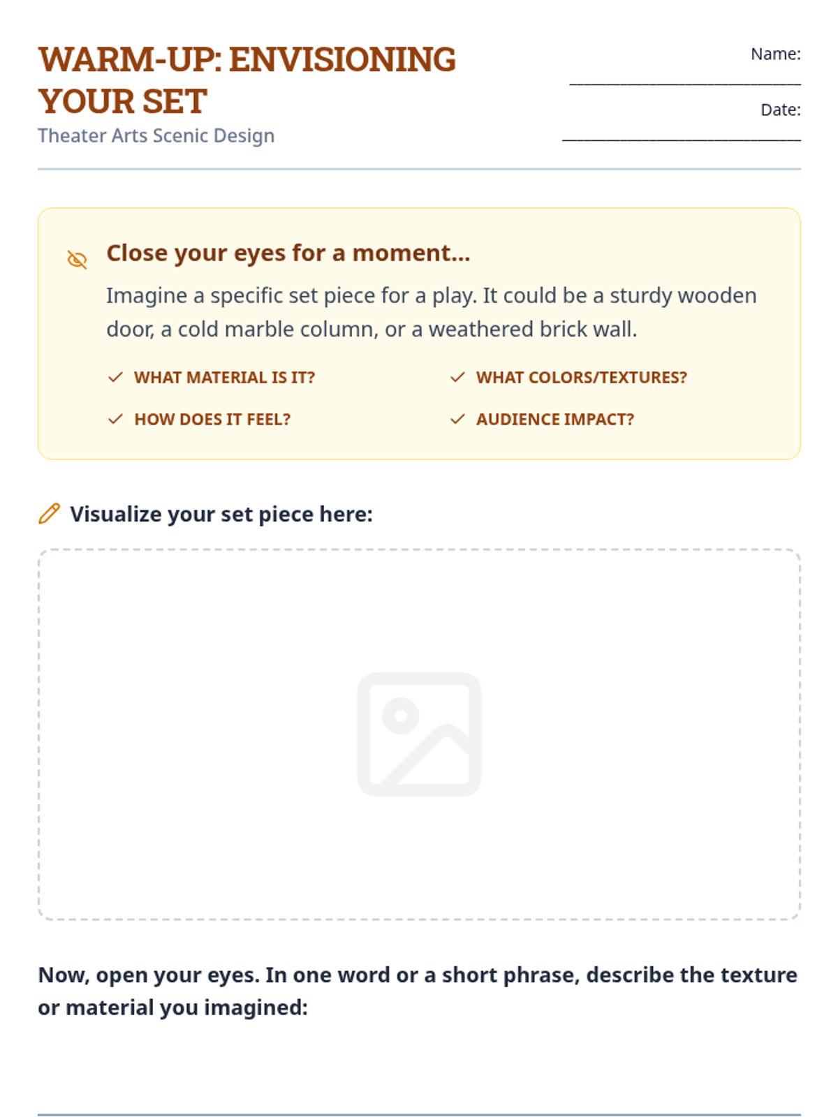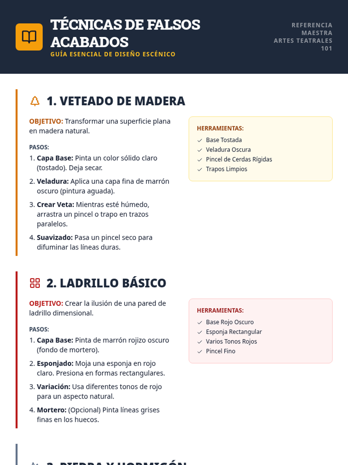 A comprehensive theater arts lesson on scenic faux finishes, teaching students how to transform ordinary materials into realistic wood, brick, and stone textures for the stage. This session includes guided practice, color mixing, and reflection activities.