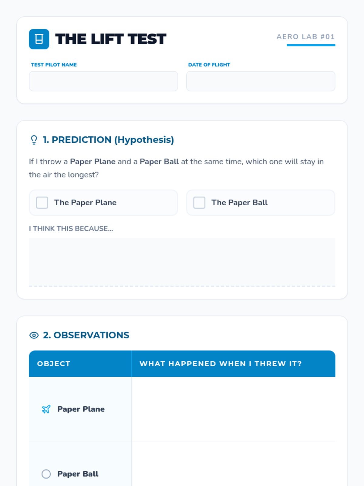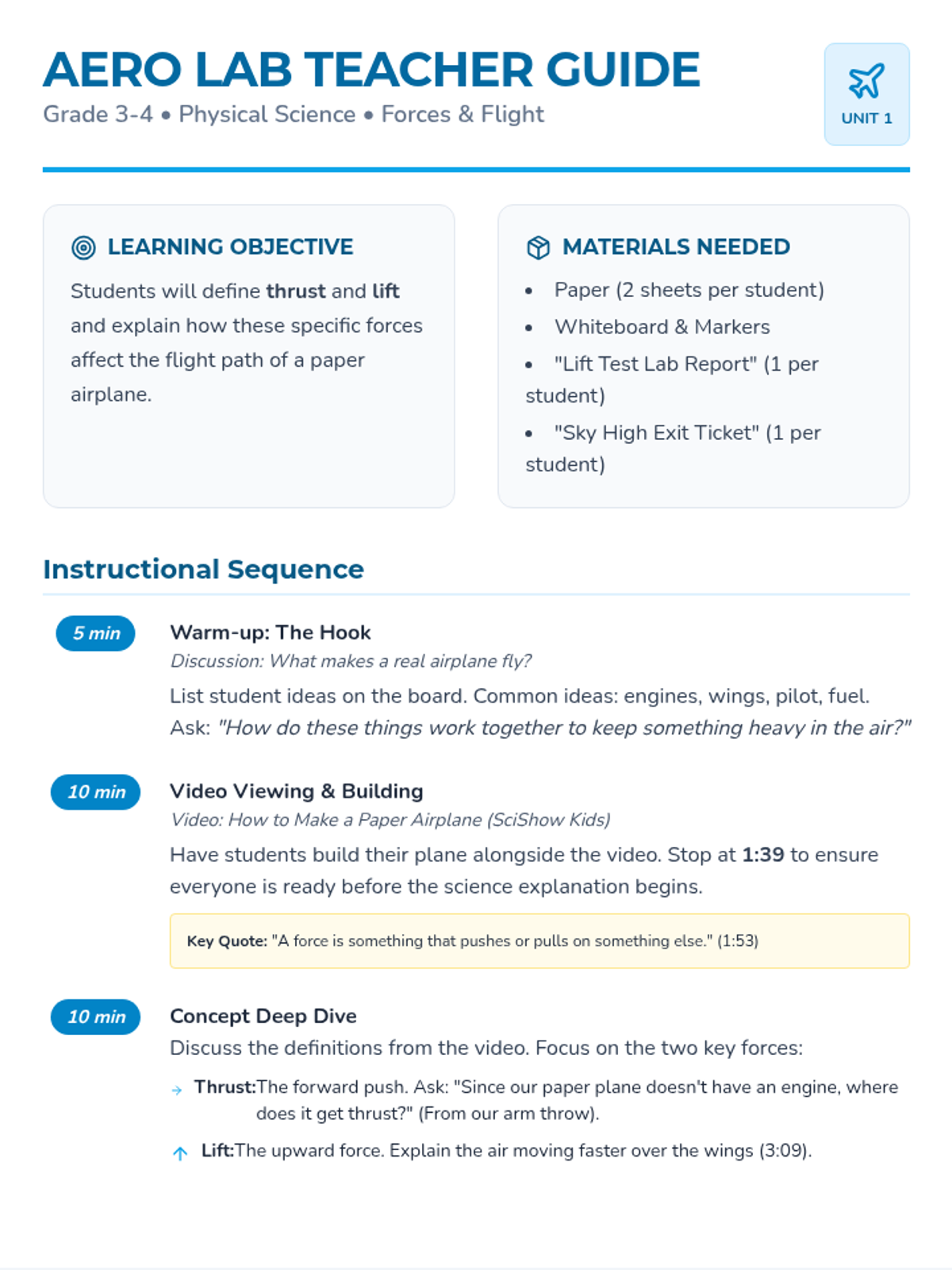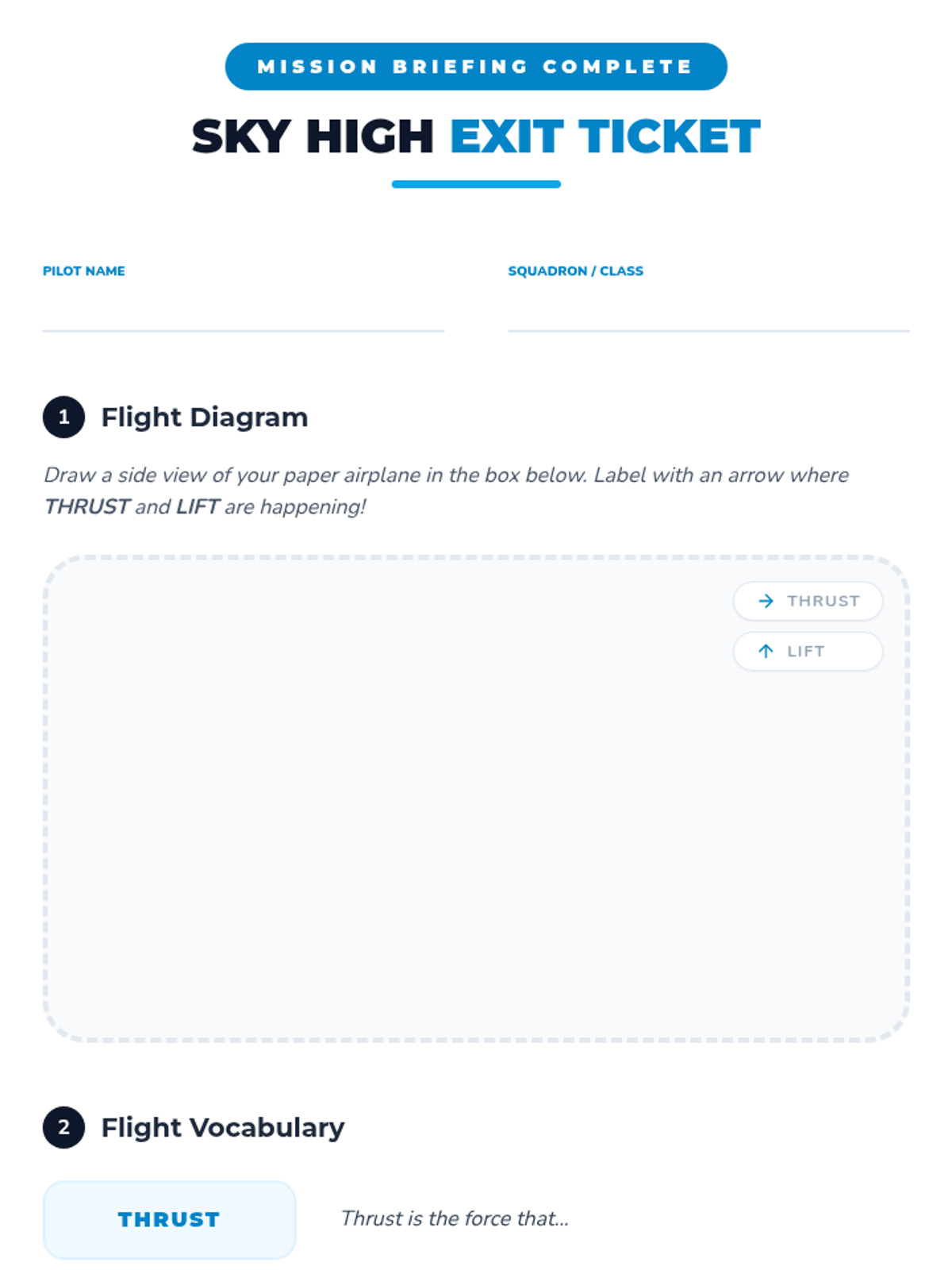 A hands-on introduction to the physics of flight where students build paper airplanes to explore the forces of thrust and lift through a comparative experiment.