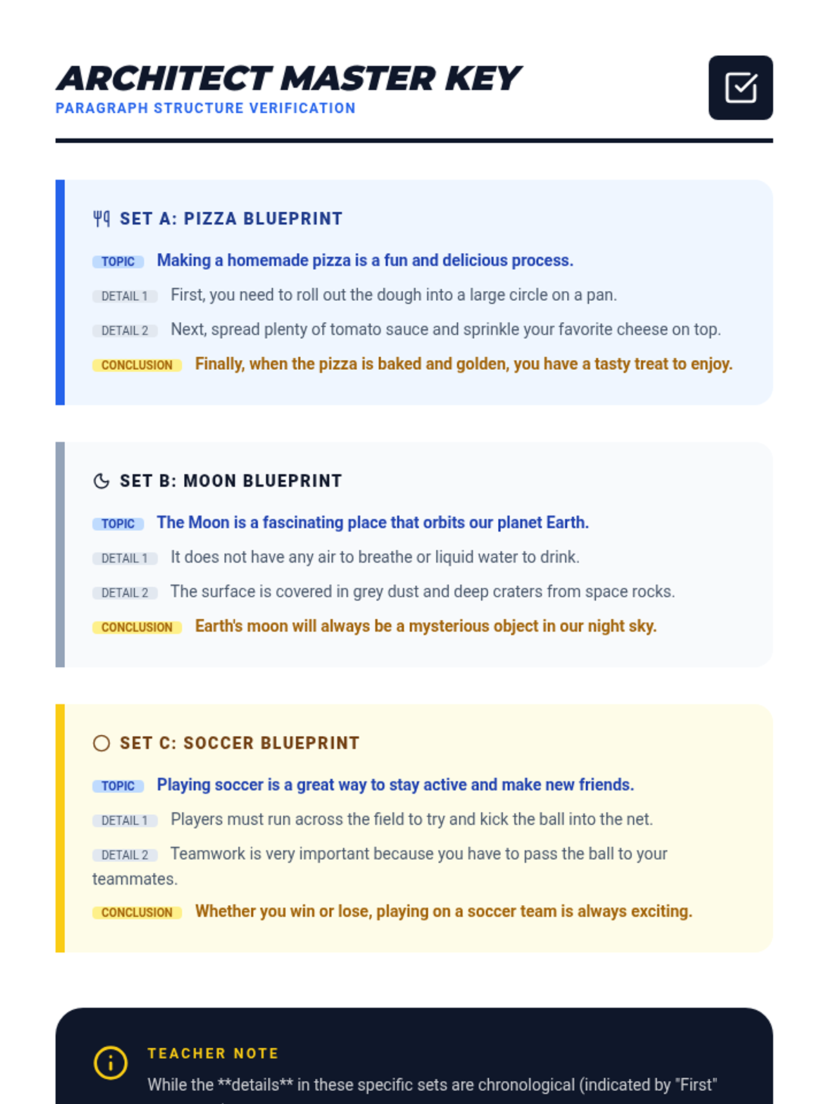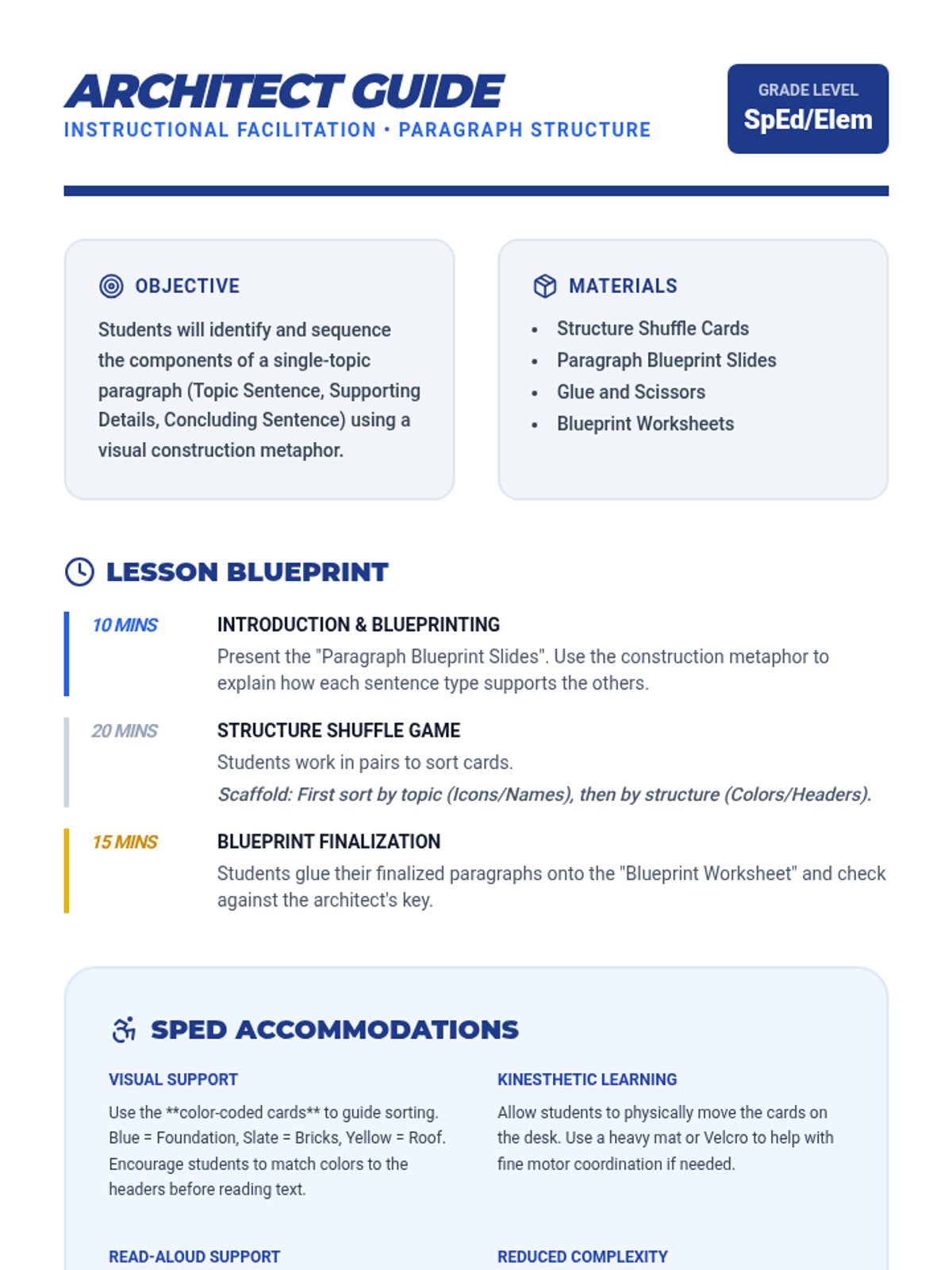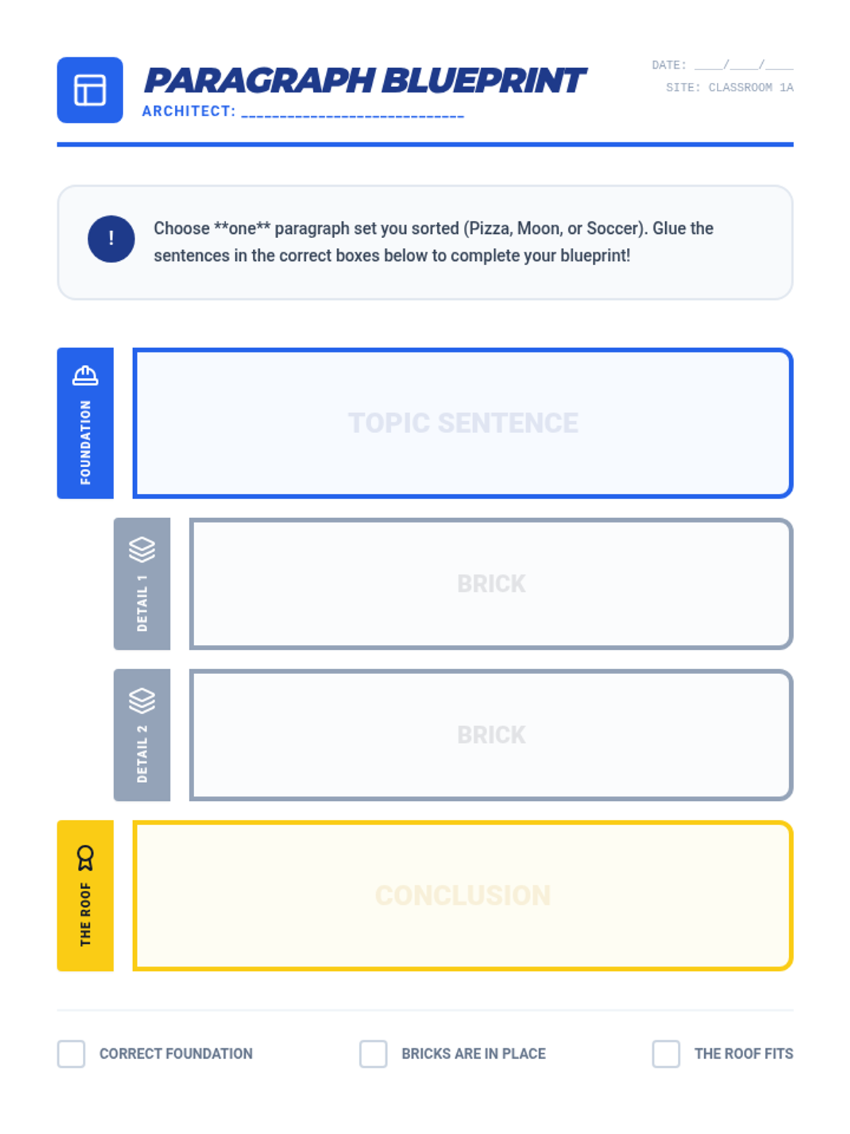 A hands-on lesson where students learn paragraph structure through a card-matching game, using a construction theme to visualize building a solid piece of writing.