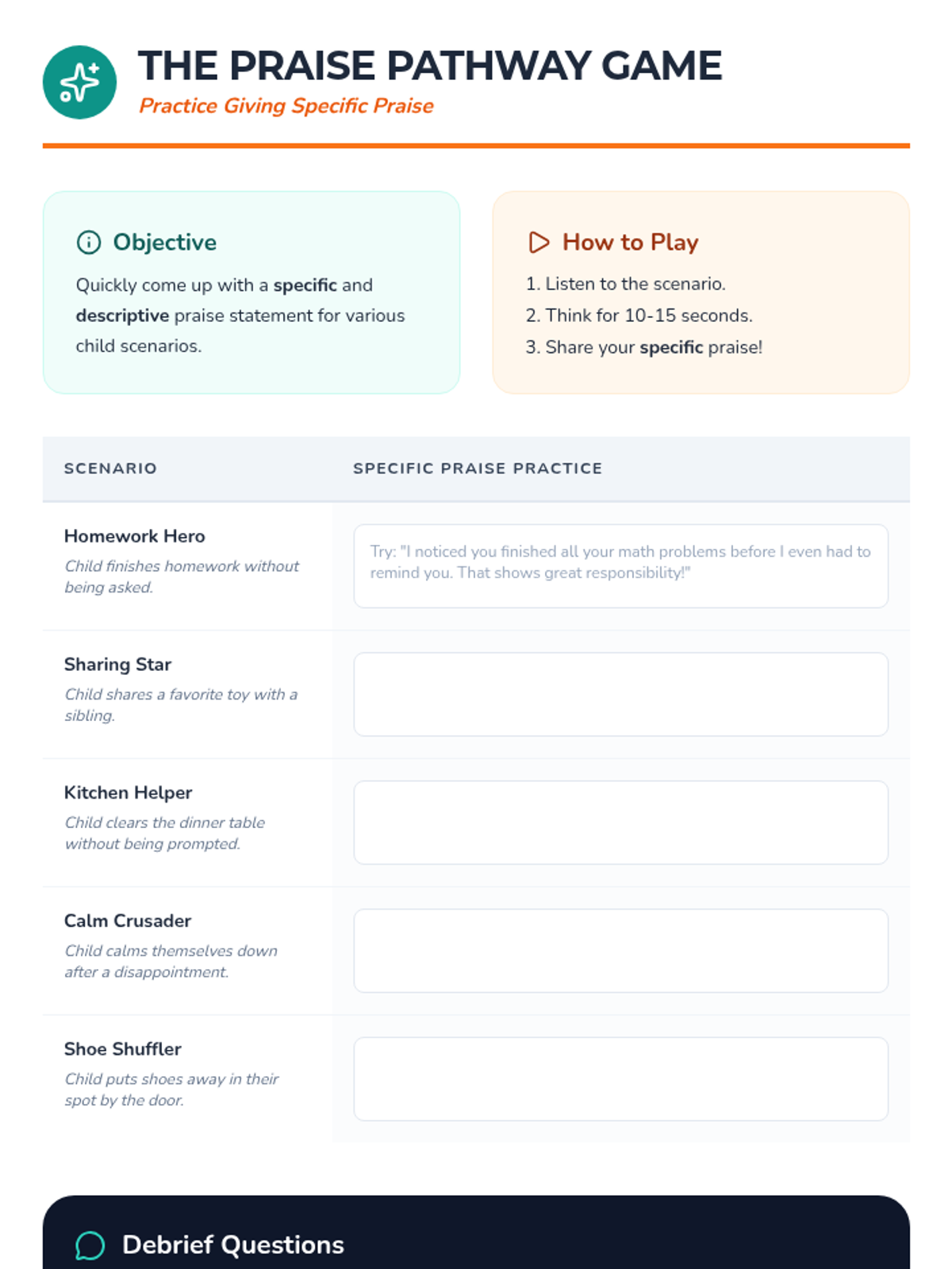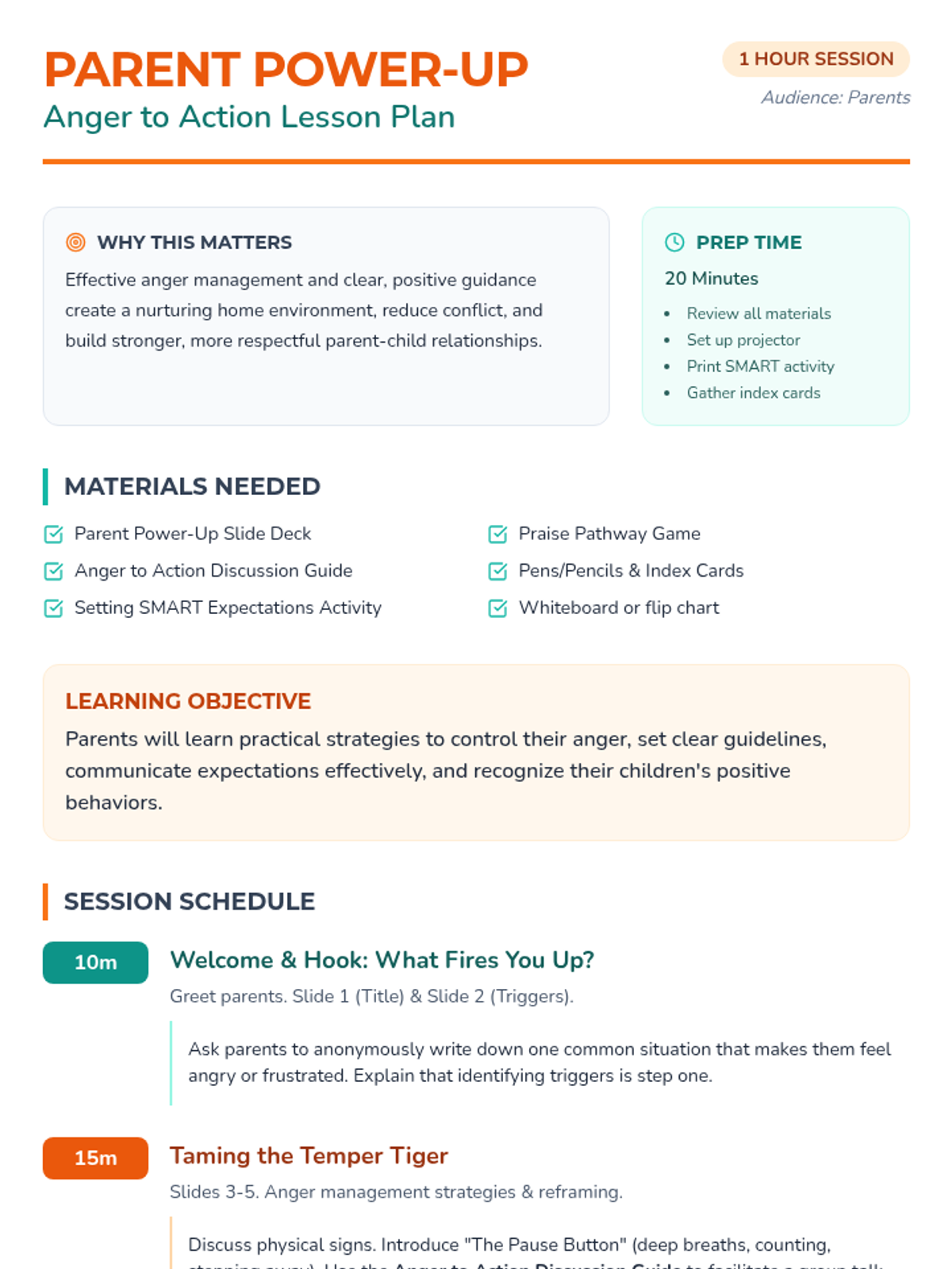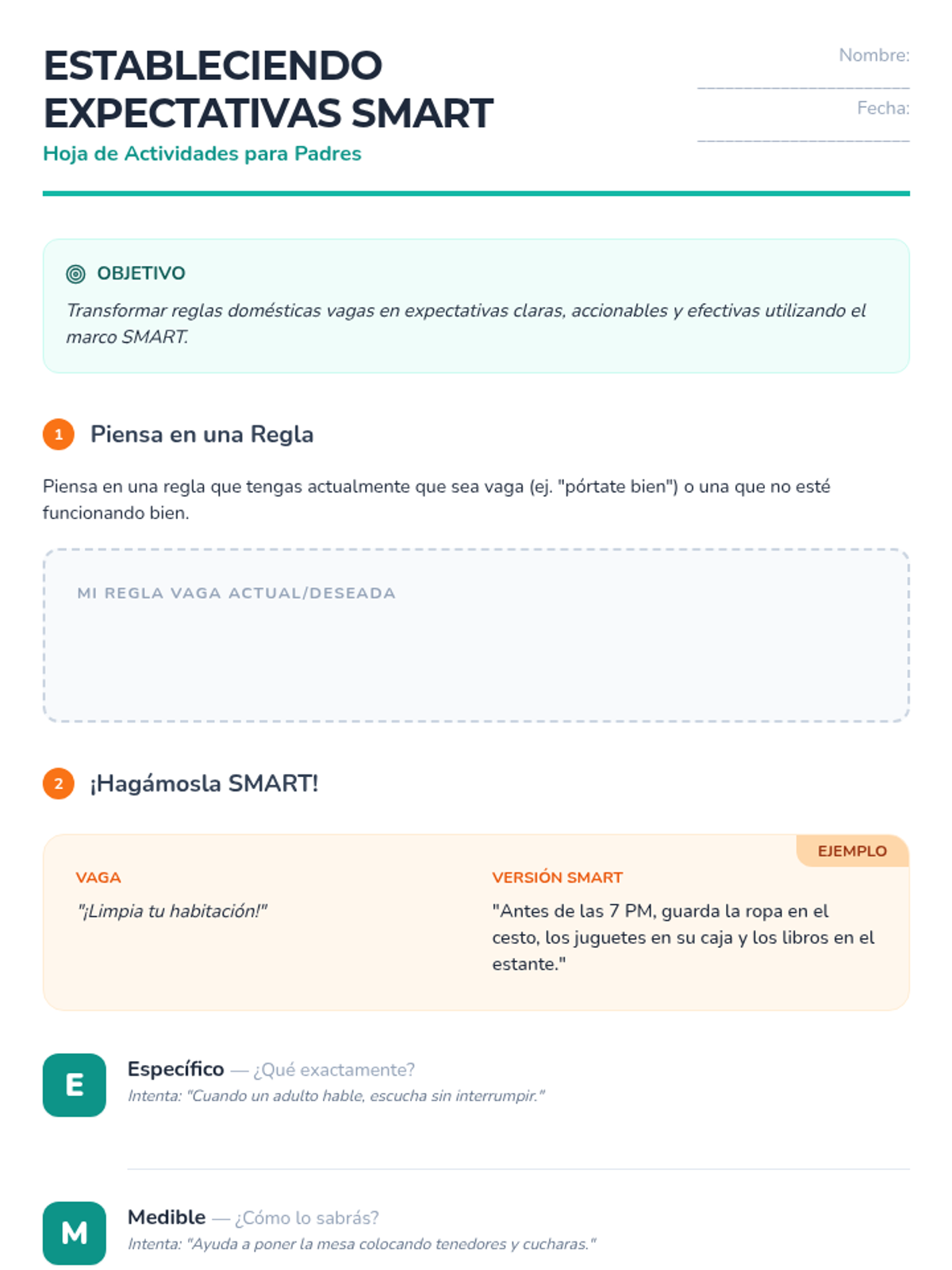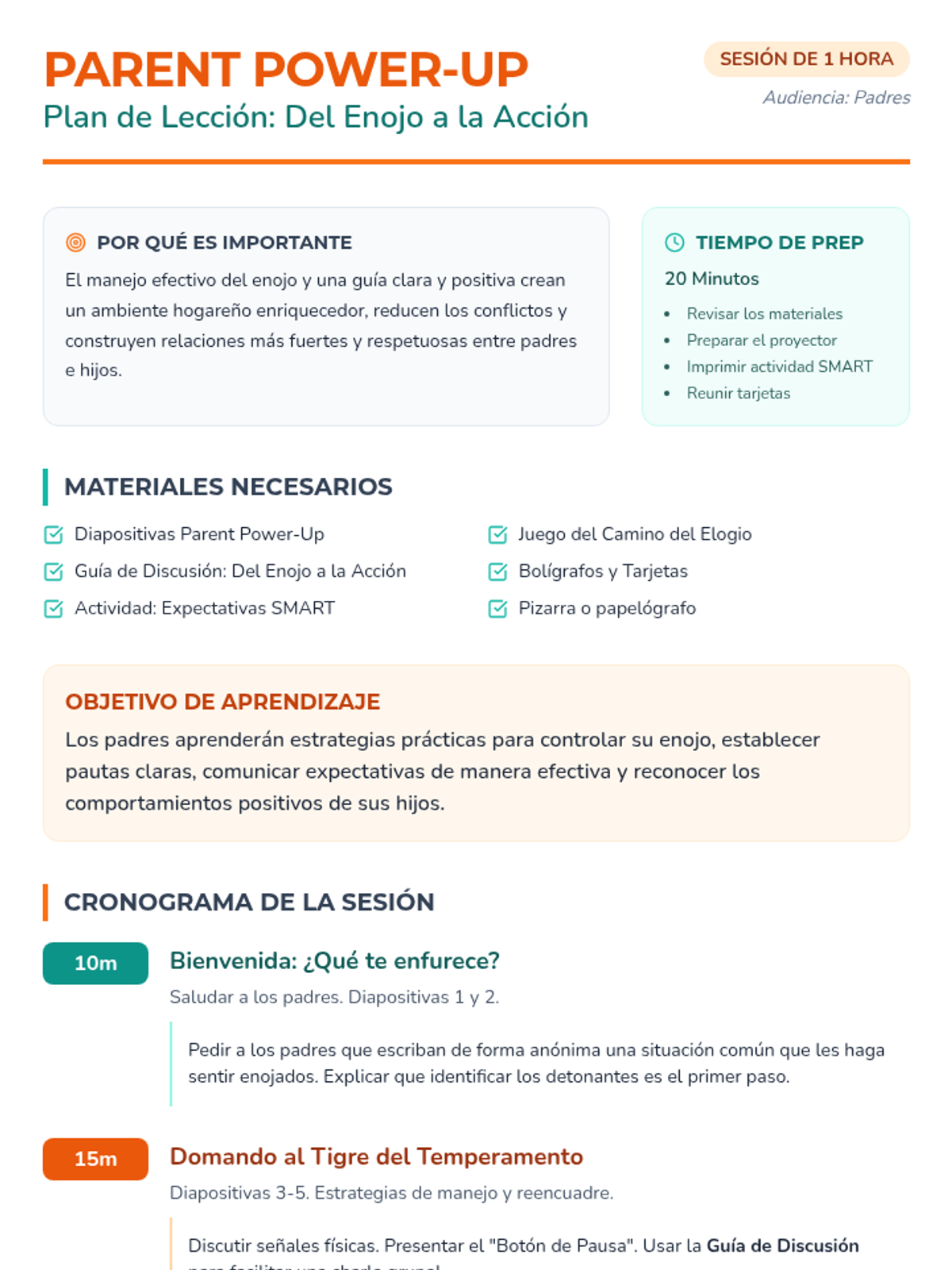 This one-hour session empowers parents with practical strategies for anger management, setting clear SMART expectations, and utilizing specific praise to foster a positive home environment. Provided in both English and Spanish.