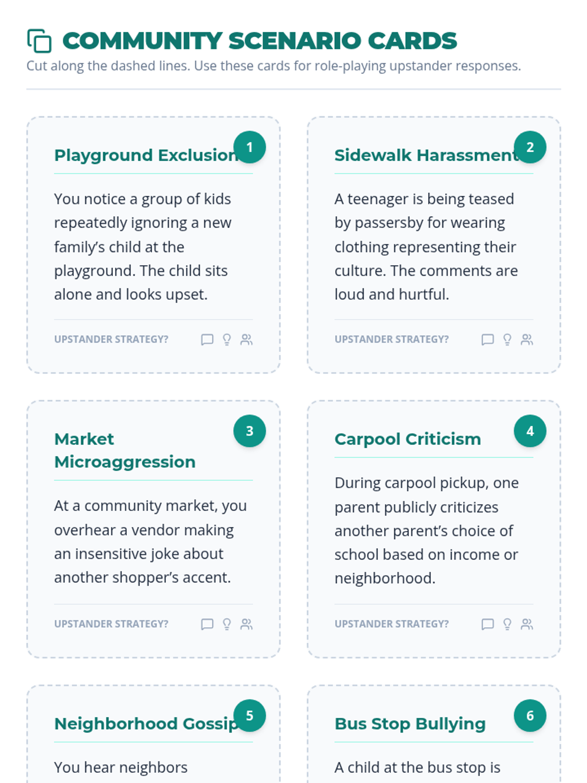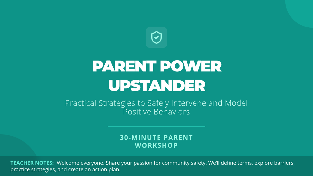 A 30-minute Tier 1 workshop for parents focused on learning and practicing bystander intervention strategies to foster safer, more inclusive communities.