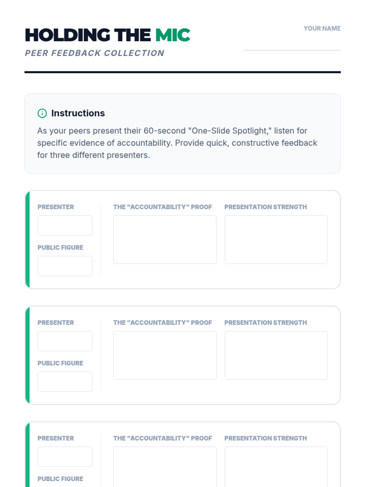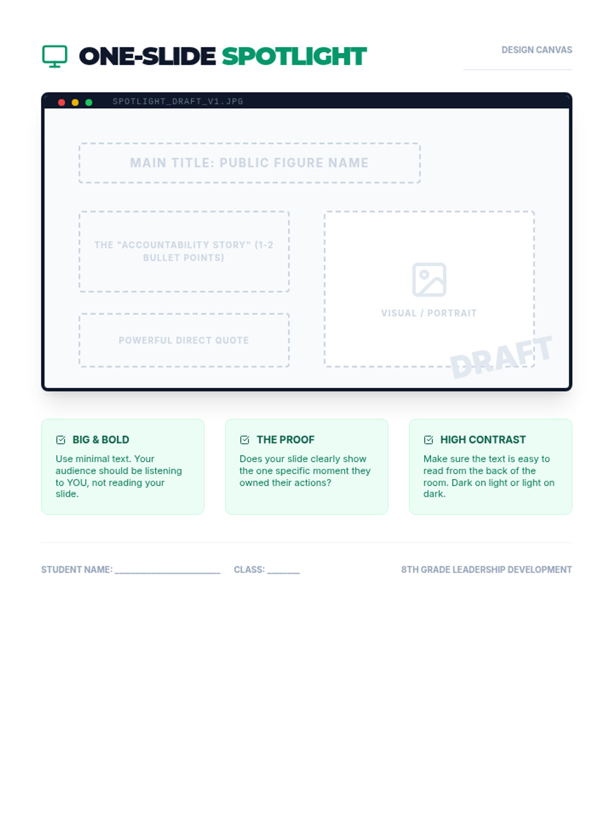 An 8th-grade lesson where students research and present on public figures who exemplify accountability, focusing on real-world leadership and personal integrity.