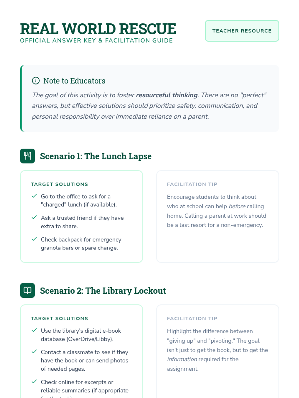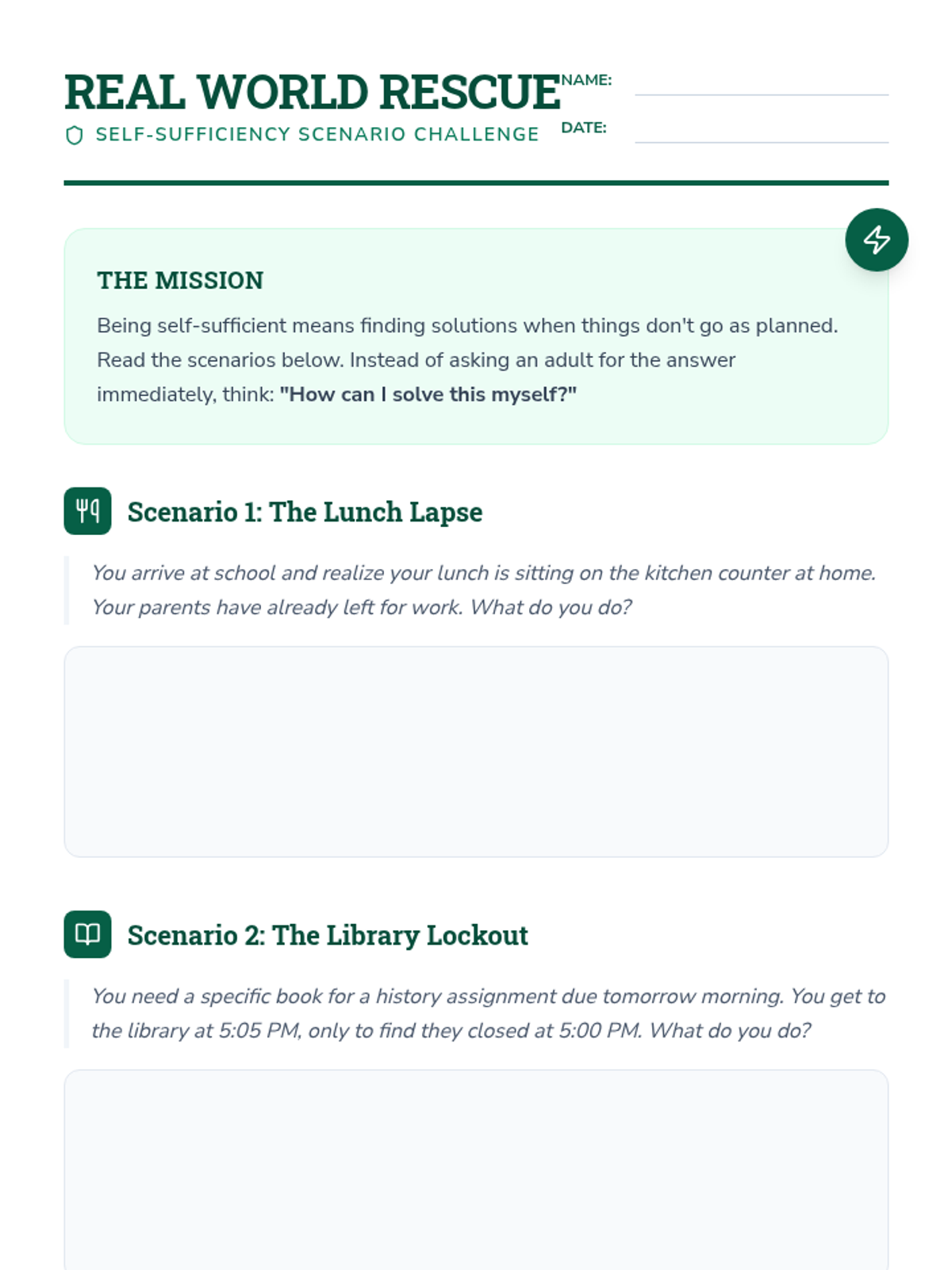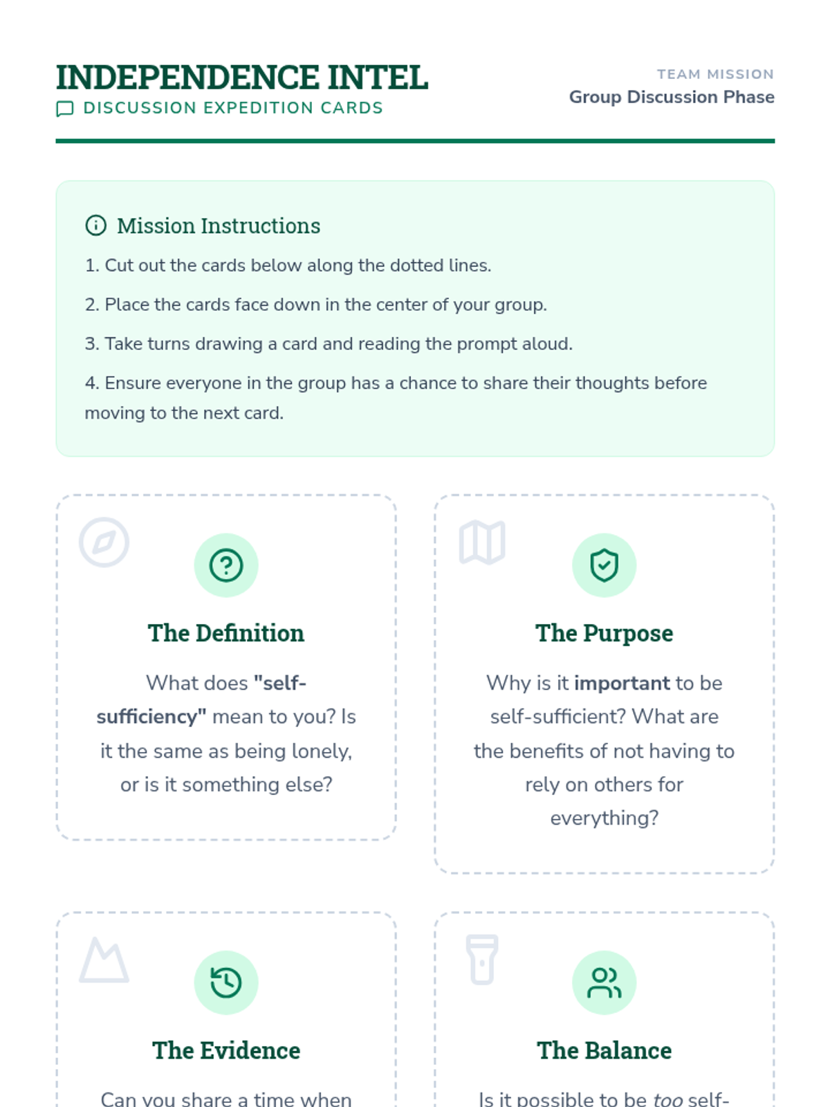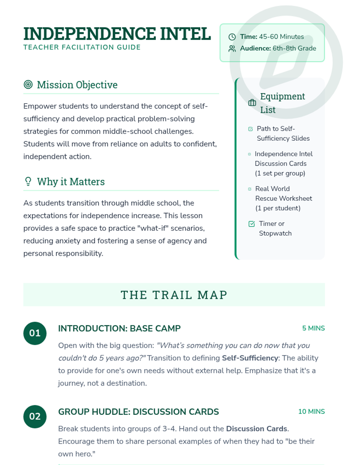 A lesson focused on empowering 6th-8th graders to develop independence and problem-solving skills through real-world scenarios and group discussions.
