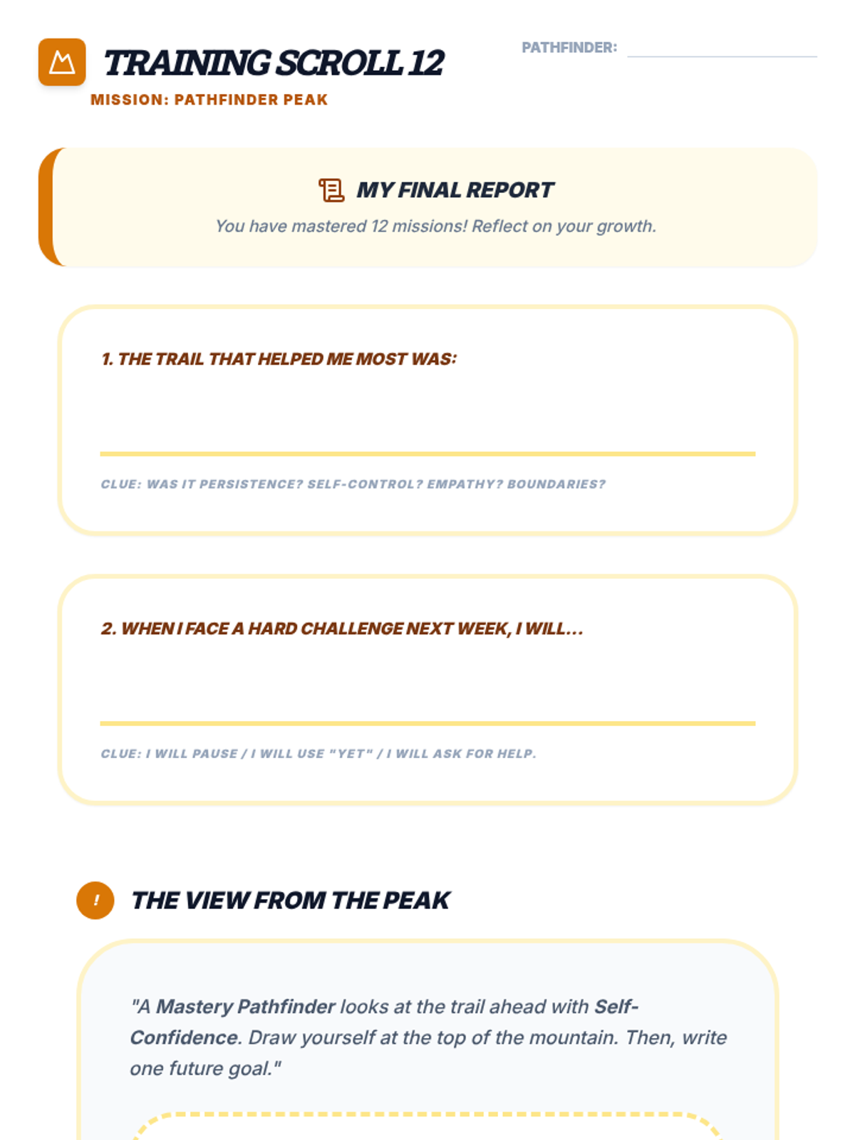 Course synthesis and graduation. Reflecting on the journey from impulsive to intentional Pathfinder.
