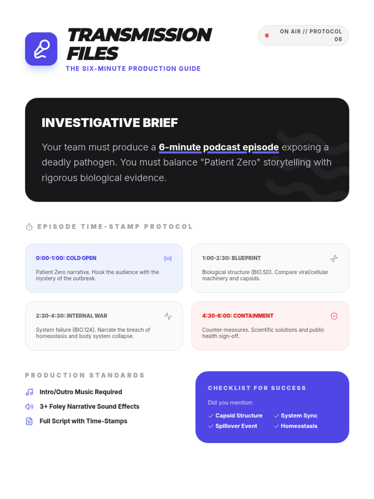 A creative summative assessment where students investigate an emerging disease, analyzing its structural biology and its impact on human body system homeostasis.