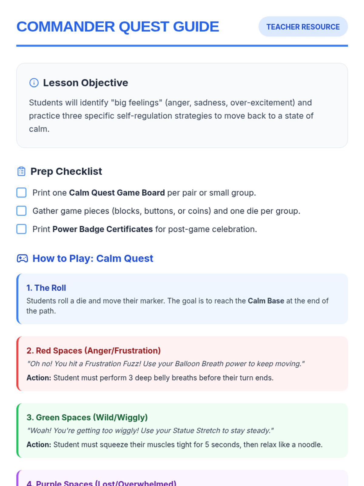 A sports-themed lesson designed for students who prefer games over direct emotional discussion. This lesson uses soccer and strategy game metaphors to explore emotional triggers, action-consequence links, and coping mechanisms.